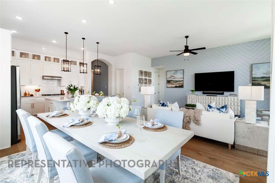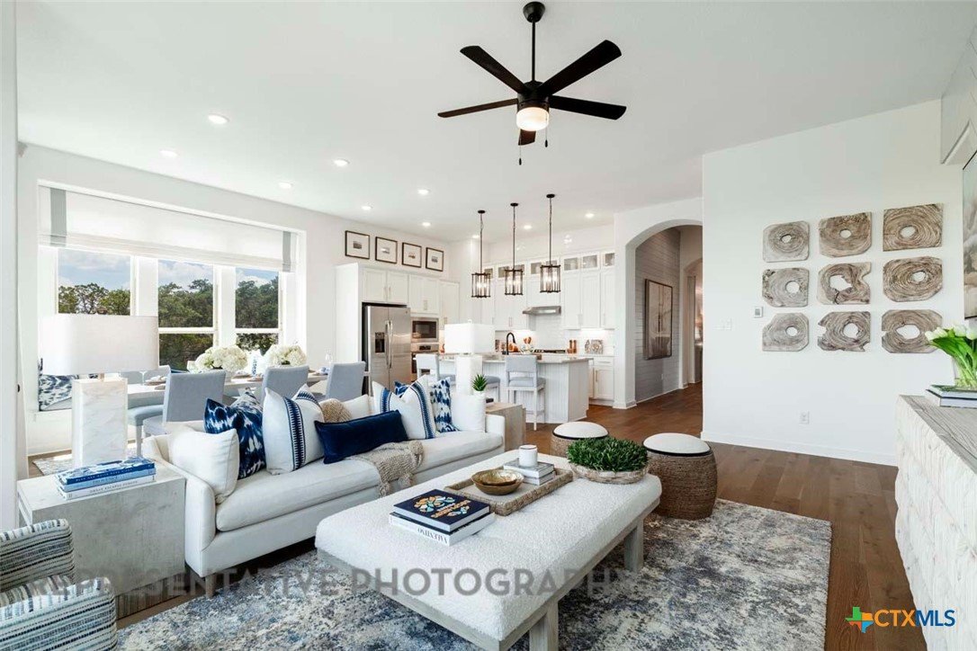 Experience refined living at 840 Jackson River Loop, an exceptional Highland Home located in the desirable 6 Creeks community in Kyle, TX. Blending elevated design with everyday functionality, this beautifully crafted new home offers a bright, open layout and premium features throughout. Step inside to an inviting living space filled with natural light, highlighted by soaring ceilings, oversized windows, and thoughtfully selected designer finishes. The gourmet kitchen is a true centerpiece, complete with a large island, abundant cabinetry, and seamless connection to the dining and family rooms, creating the perfect environment for both entertaining and daily life. The primary suite provides a luxurious retreat featuring a spa-inspired bathroom and an expansive walk-in closet. Additional bedrooms and flexible living spaces are generously sized, making this home ideal. With Highland Homes renowned construction quality and attention to detail, every room feels intentionally designed and exceptionally comfortable. Enjoy outdoor living on the covered patio overlooking a private backyard, perfect for relaxing evenings or weekend gatherings. Located in the sought-after 6 Creeks master-planned community, this home offers access to scenic trails, resort-style amenities, excellent Hays ISD schools, and the convenience of being just minutes from shopping, dining, and South Austin. 840 Jackson River Loop delivers outstanding craftsmanship, thoughtful design, and a lifestyle that truly stands apart. Don’t miss the opportunity to make this stunning Highland Home your own.