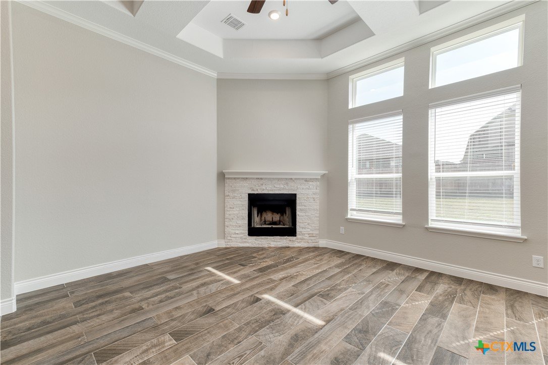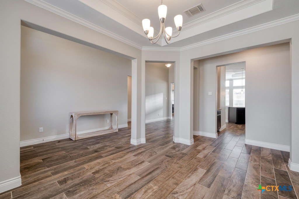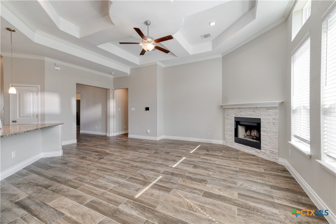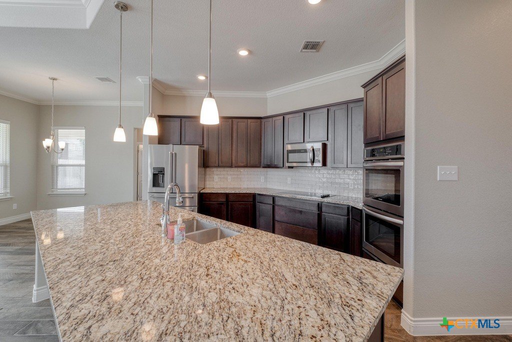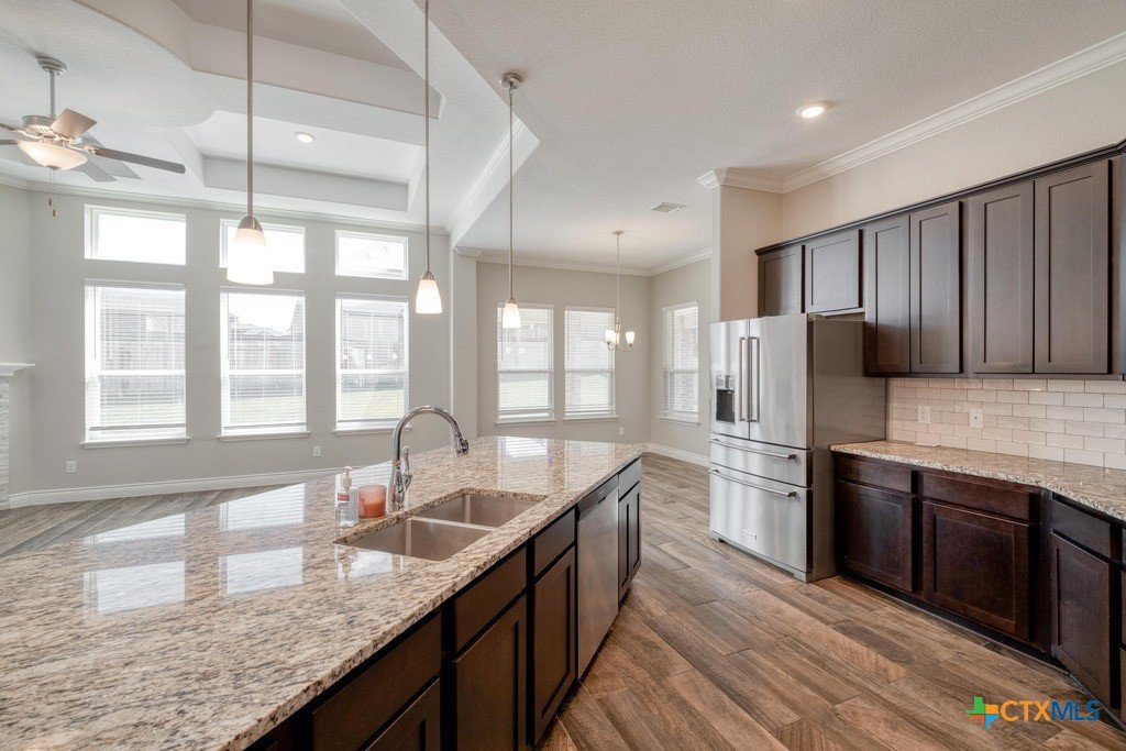 Beautiful one-level home offering a bright, open layout with high ceilings and elegant wood-look tile flooring throughout. The inviting foyer leads into a spacious living room and a large island kitchen, perfect for gatherings, and featuring modern finishes, ample cabinet space, and room for bar seating. Enjoy a comfortable primary suite with great natural light and a well-appointed ensuite bath. Step outside to a generous backyard with a covered patio, ideal for relaxing or entertaining year-round. Conveniently located near schools, parks, and shopping,