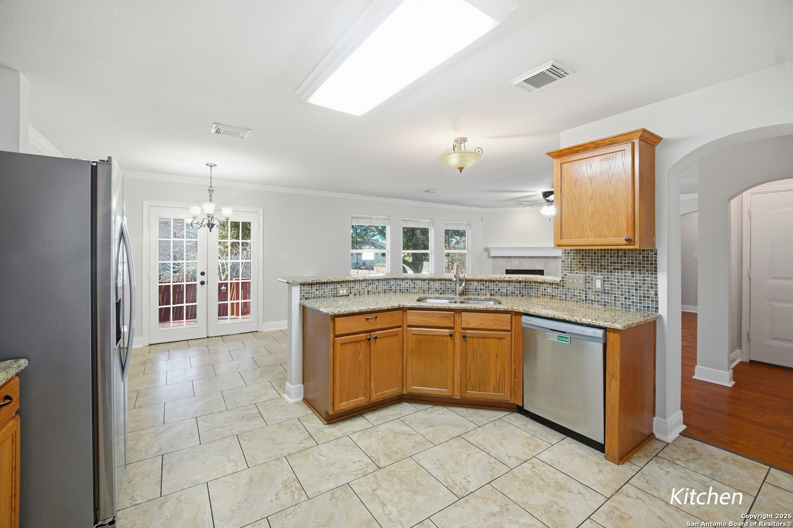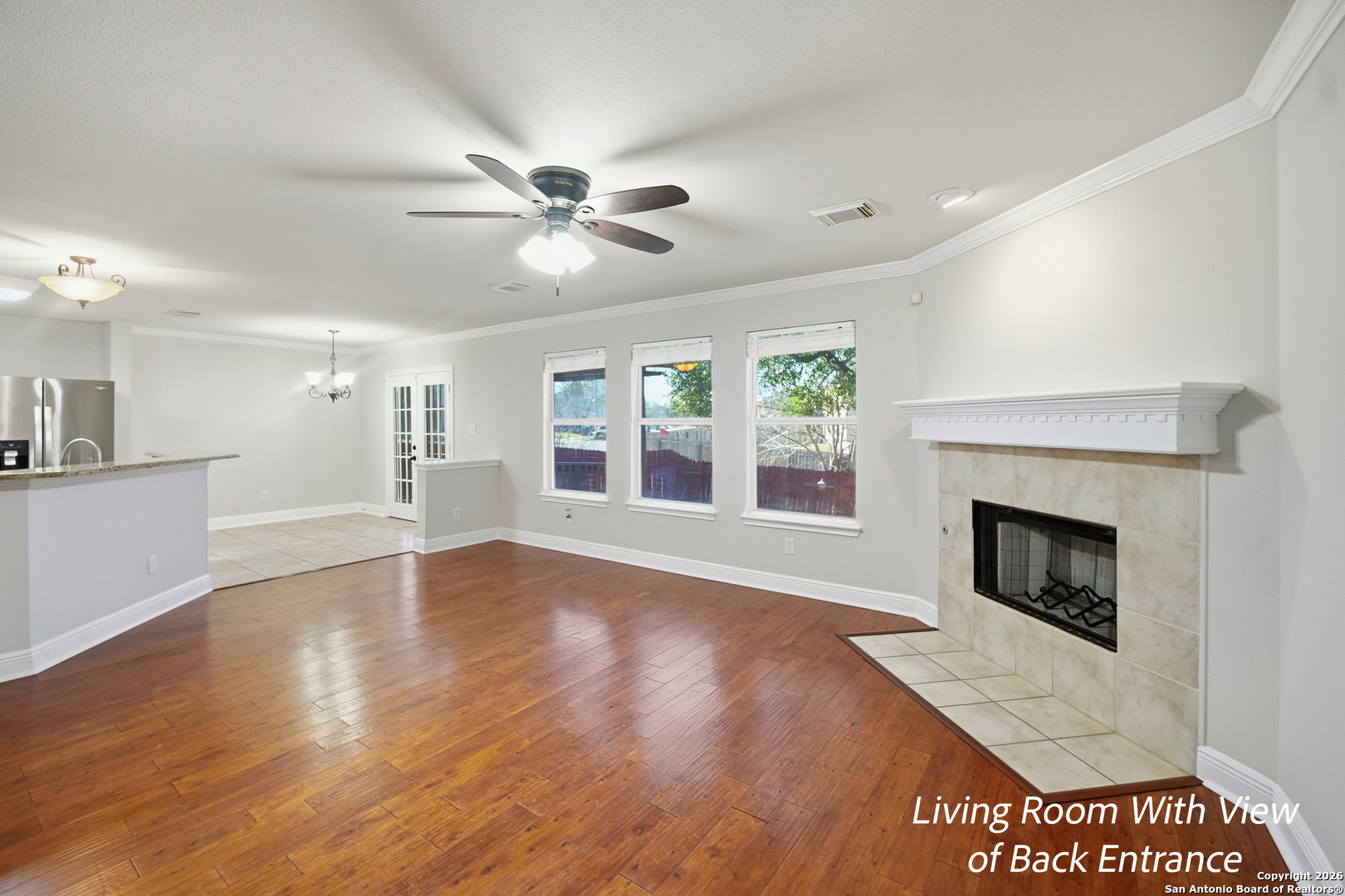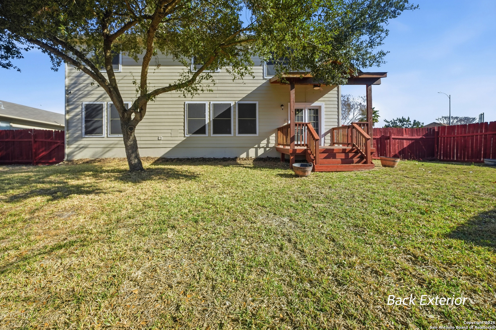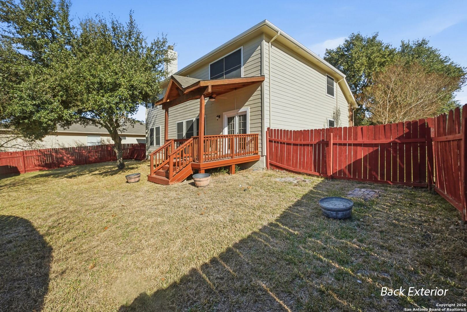 Move right in! This spacious two-story, 4-bedroom, 3-bath home is completely turn-key ready and has been meticulously maintained. Enjoy peace of mind with a newer roof (only a few years old) and a recently serviced AC system (Jan 2026). The home shines with fresh interior and exterior paint, updated baseboards, gleaming wood floors, and ceramic tile throughout. The eat-in kitchen boasts granite countertops and an island, flowing into multiple living areas, including a dedicated family room and a cozy fireplace. All appliances convey, including stove, microwave, and refrigerator. Situated on a desirable corner lot with mature trees, the property offers a large, private backyard with a deck-perfect for relaxing or entertaining. Conveniently located minutes from Joint Base Randolph AFB, 1604 N, I-35 N, I-10, and shopping centers. Schedule your showing today!