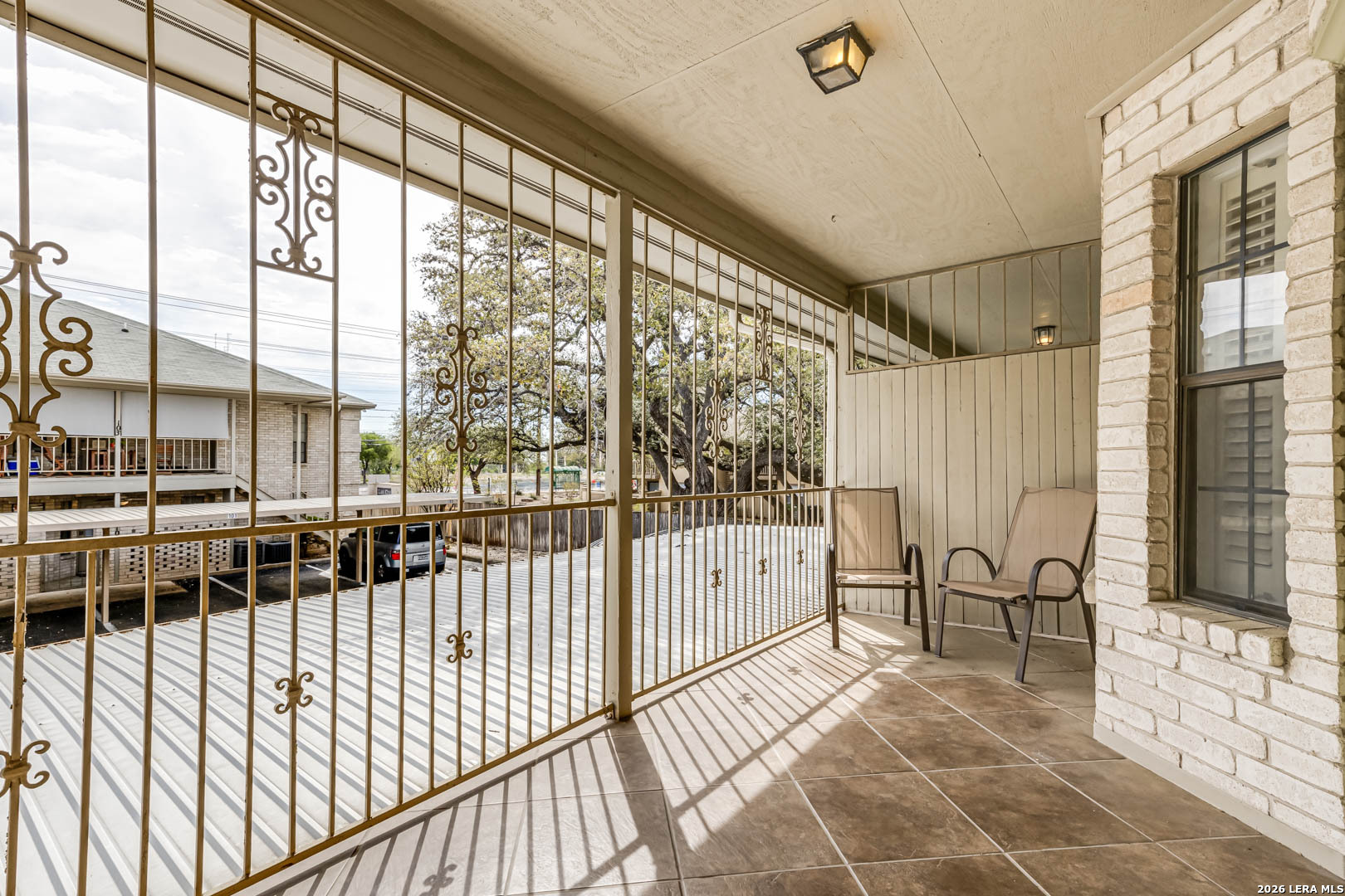 Prime Medical Center location! Well maintained condo with wood floors and ceramic tile floors. Living room has fireplace and wet bar. Primary bedroom has walk in closet. Primary bathroom has separate shower and tub. Crown molding and plantation shutters. Interior paint April 2026. Stove, microwave, dishwasher, water heater, and stackable washer and dryer all replaced in 2022. HVAC replaced in 2021. Lots of storage. Covered balcony has walk in storage closet. Refrigerator and stackable washer and dryer can stay. One carport parking spot. No Seller Disclosure Notice required.