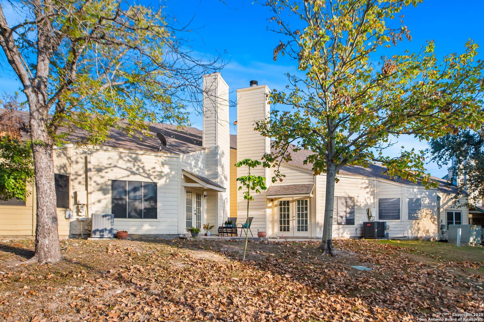 Beautifully updated and move-in ready, this single-story 2-bed 2-bath townhome combines modern upgrades with a highly desirable central location. Tucked inside a quiet, gated community with mature trees and open green spaces, this home delivers comfort, privacy, and style throughout. Step inside to soaring high ceilings and abundant natural light. Both bedrooms feature private en-suite bathrooms, making the floorplan perfect for homeowners who value convenience, guests, or a roommate setup. Recent renovations elevate the entire property, including: new flooring throughout, fresh light & modern interior paint, upgraded lighting & ceiling fans, granite countertops in both the kitchen & bathrooms, and additional improvements throughout the home. Enjoy morning coffee or evening relaxation on the patios overlooking the green space, framed by beautiful shade trees and offering a peaceful view of the tennis court. A two-car garage plus an extended driveway provide generous parking, a rare benefit in a townhome setting. Location sets this home apart-minutes from USAA and the Medical Center and with quick access to 1604, 410, I-10, and Wurzbach Parkway. Whether commuting, dining out, or running errands, everything you need is nearby, making this an unmatched opportunity for convenience and ease of living. Future potential awaits as well, attic space has been partially prepared for finish-out and could become a fantastic bonus room, office, or even a third bedroom.