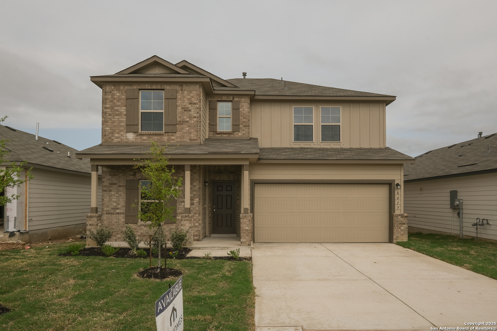 ***READY NOW*** Welcome to this charming 2-story home located at 8417 Roadrunner Passage, San Antonio, TX. This beautiful new construction home is crafted by M/I Homes, offering a blend of modern design and spacious living perfect for families. With 4 bedrooms, 2 full bathrooms, and a game room, this home provides ample space for comfortable living for you and your loved ones. The home boasts an open floorplan that seamlessly connects the kitchen, dining, and living areas, creating a welcoming environment for gatherings and relaxation. The kitchen is a focal point of this home, featuring sleek countertops, modern appliances, and plenty of cabinet space for storage. Whether you're a cooking enthusiast or simply enjoy preparing meals, this kitchen is sure to meet your needs. Step outside to the covered patio area where you can unwind with a cup of coffee in the morning or enjoy a barbecue with family and friends in the evenings. The outdoor space offers a private retreat where you can enjoy the fresh air and sunshine. This home includes a 2-car garage, ensuring convenience for homeowners with vehicles. The 2,416 square foot size provides generous living space for everyone to move around comfortably. Located in a vibrant community in San Antonio, this home offers proximity to amenities, schools, and recreational facilities. Enjoy the convenience of nearby shopping centers, restaurants, and parks, making it easy to meet your daily needs and enjoy leisure activities.
