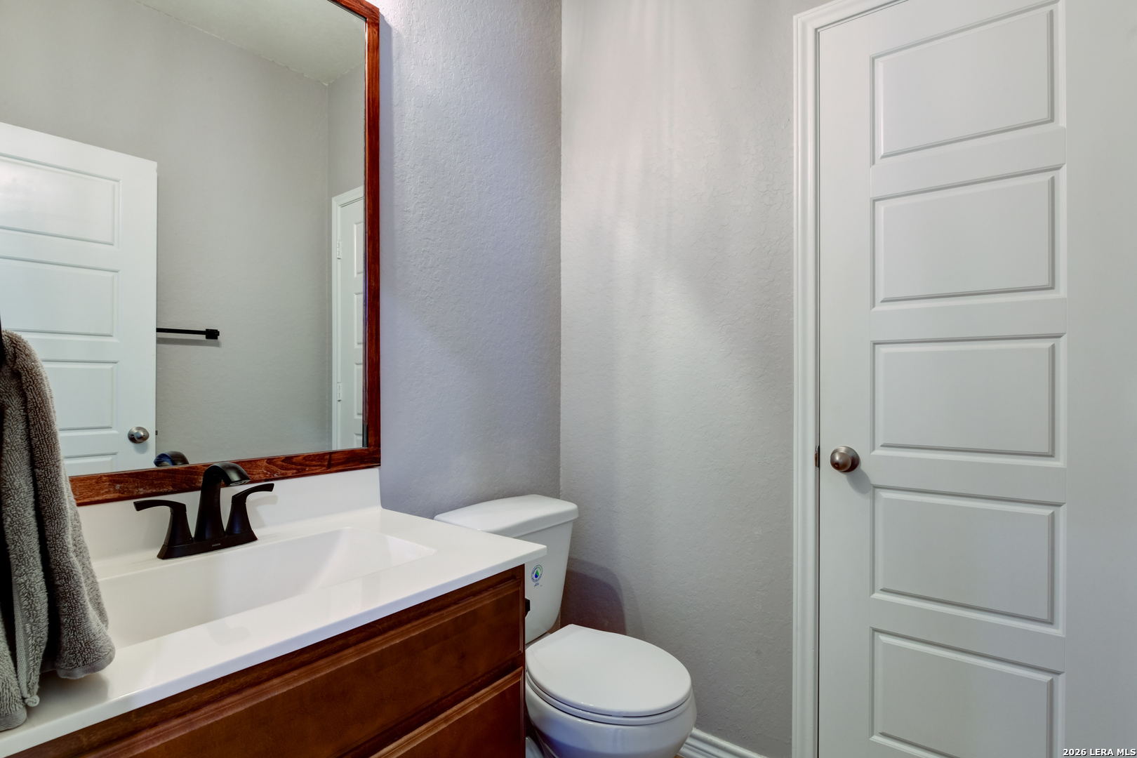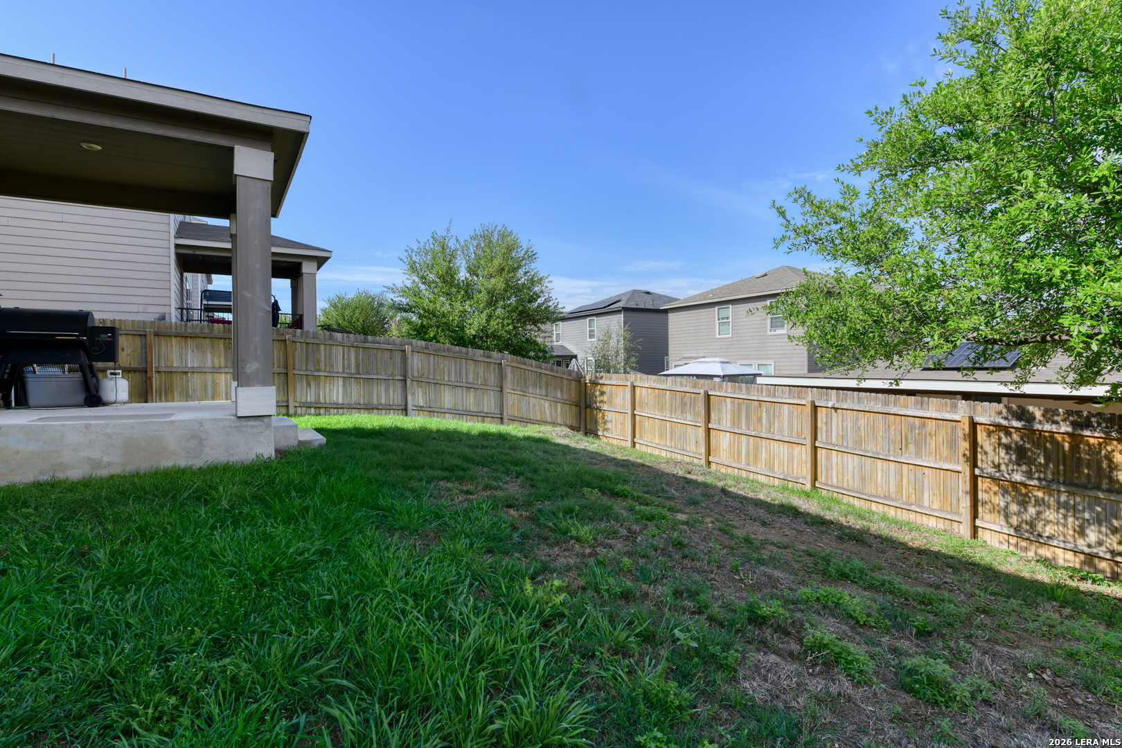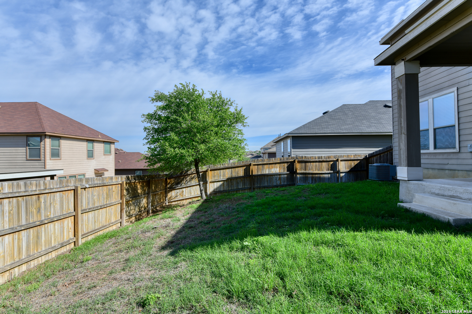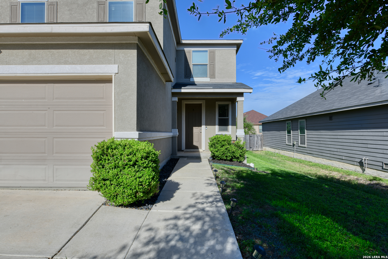 2-story stucco home in Carmona Hills offering 3 bedrooms, 2.5 baths, and an open-concept layout with abundant natural light. Dedicated office/study at the front of the home. Vinyl plank flooring extends throughout the main floor into the spacious living room, dining area, and well-appointed kitchen featuring granite countertops, black appliances, abundant cabinetry, walk-in pantry, window over sink, and peninsula breakfast bar. Private primary suite includes a large walk-in closet and en-suite bath with double vanity and 42-inch garden tub/shower combination. Spacious secondary bedrooms share a full bath. Covered patio overlooks the private backyard with plenty of space for entertaining. Additional highlights include a two-car garage, pre-plumbed for water softener, and sprinkler system. Convenient location near Lackland Air Force Base, shopping, dining, and entertainment.