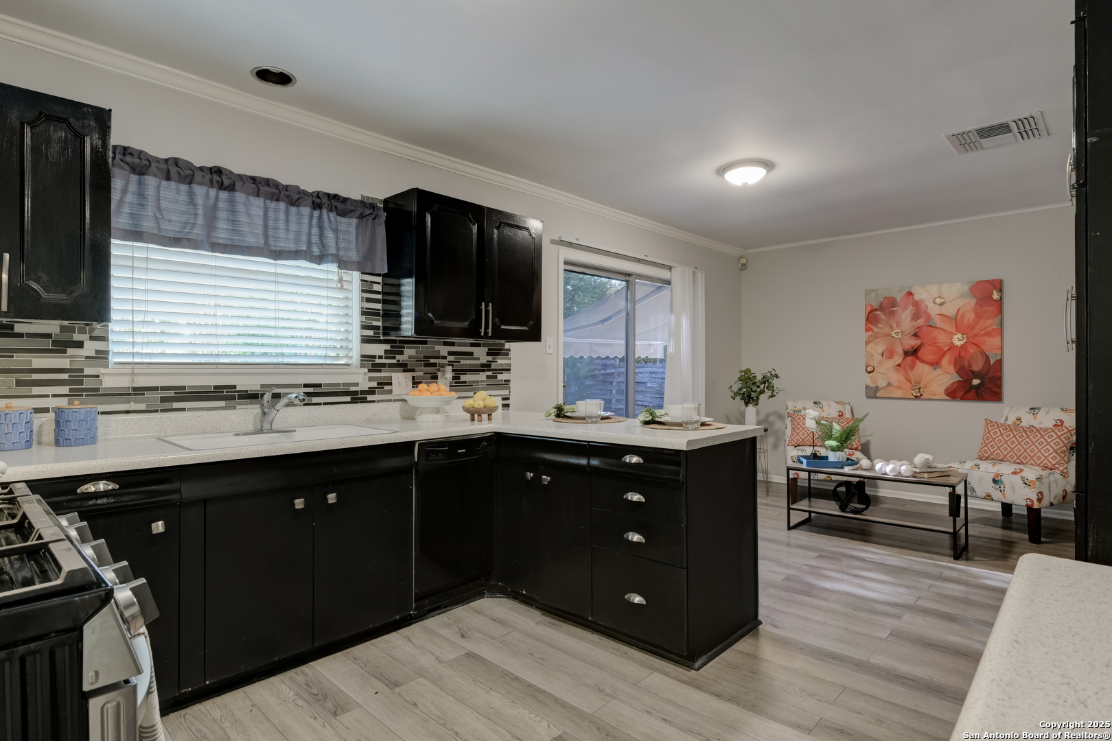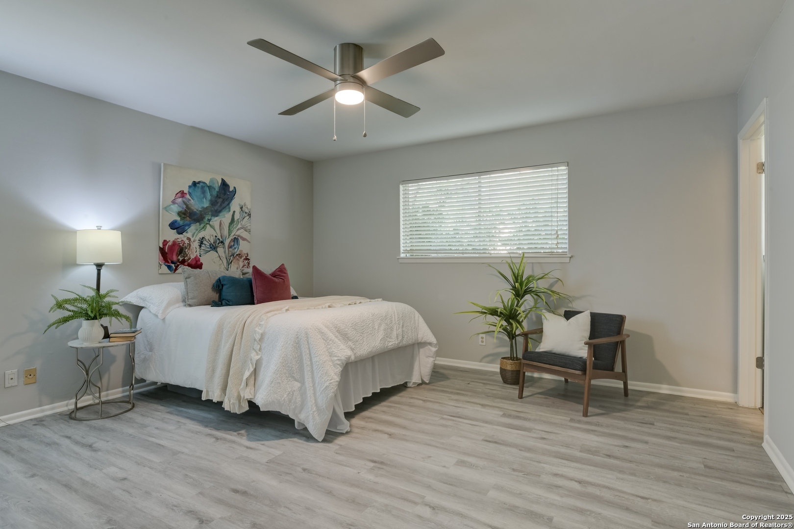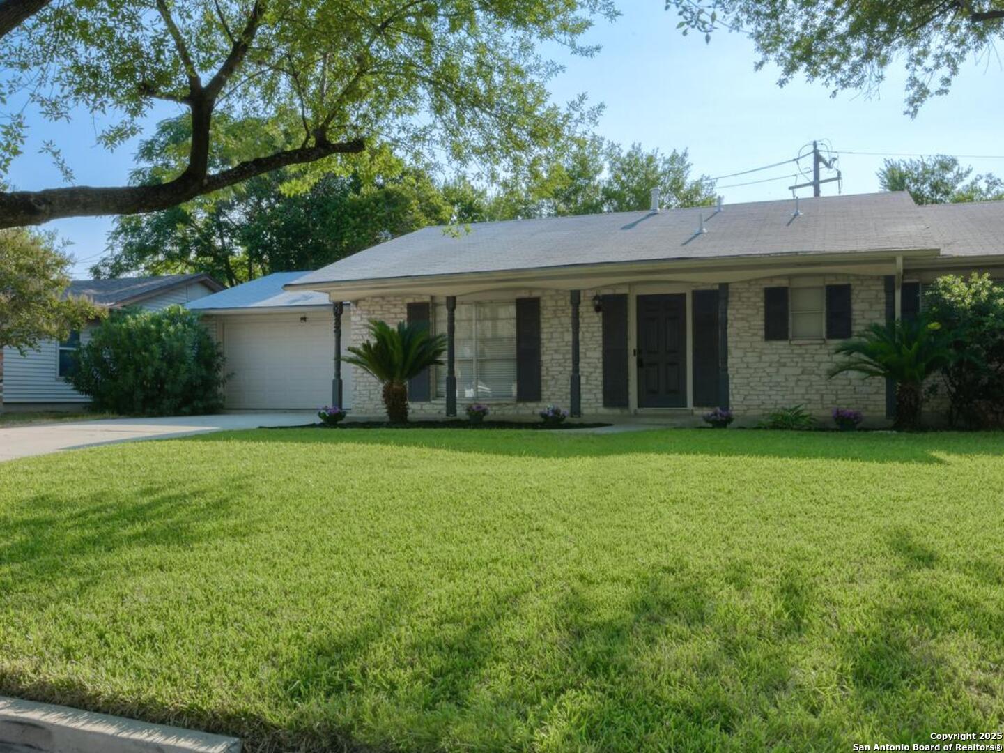 BIG PRICE ADJUSTMENT: GREAT HOME: GREAT TIME TO BUY! DON'T WAIT! Car Lovers Garage! Oversized Garage with Back door and window sets this home apart. Nice natural light for your Vehicles,workshop, Storage and Work Out space This charming 3-bedroom, 2-bath 2 car garage home sits on a spacious lot with beautiful curb appeal, a backyard built for BBQs, and plenty of room for kids or adults to retreat, play soccer, or simply relax on the thick, lush grass which has full Sprinkler System in front and back yards. Inside, you'll find fresh paint throughout, updated counters and sinks, a gas oven and stove for the home chef, easy-care laminate flooring, and a great garage for all car enthusiasts! "The home offers a great flow for everyday living and entertaining-whether you're enjoying the cozy living spaces indoors or gathering outdoors around one of the three backyard fire pits and large patio. Security system, and a solid roof offer peace of mind-all in highly sought-after NEISD. Conveniently located with quick access to Loop 410, IH-35, and IH-10, near the Medical Center, minutes to St. Mary's Hall School, and close to the San Antonio International Airport. Built in 1965, this home blends classic character with modern updates-perfect as a starter home, rental, or long-term investment. Don't wait-this one won't last long! Prime location near schools, loop access & Medical Center Great resturants and shopping.