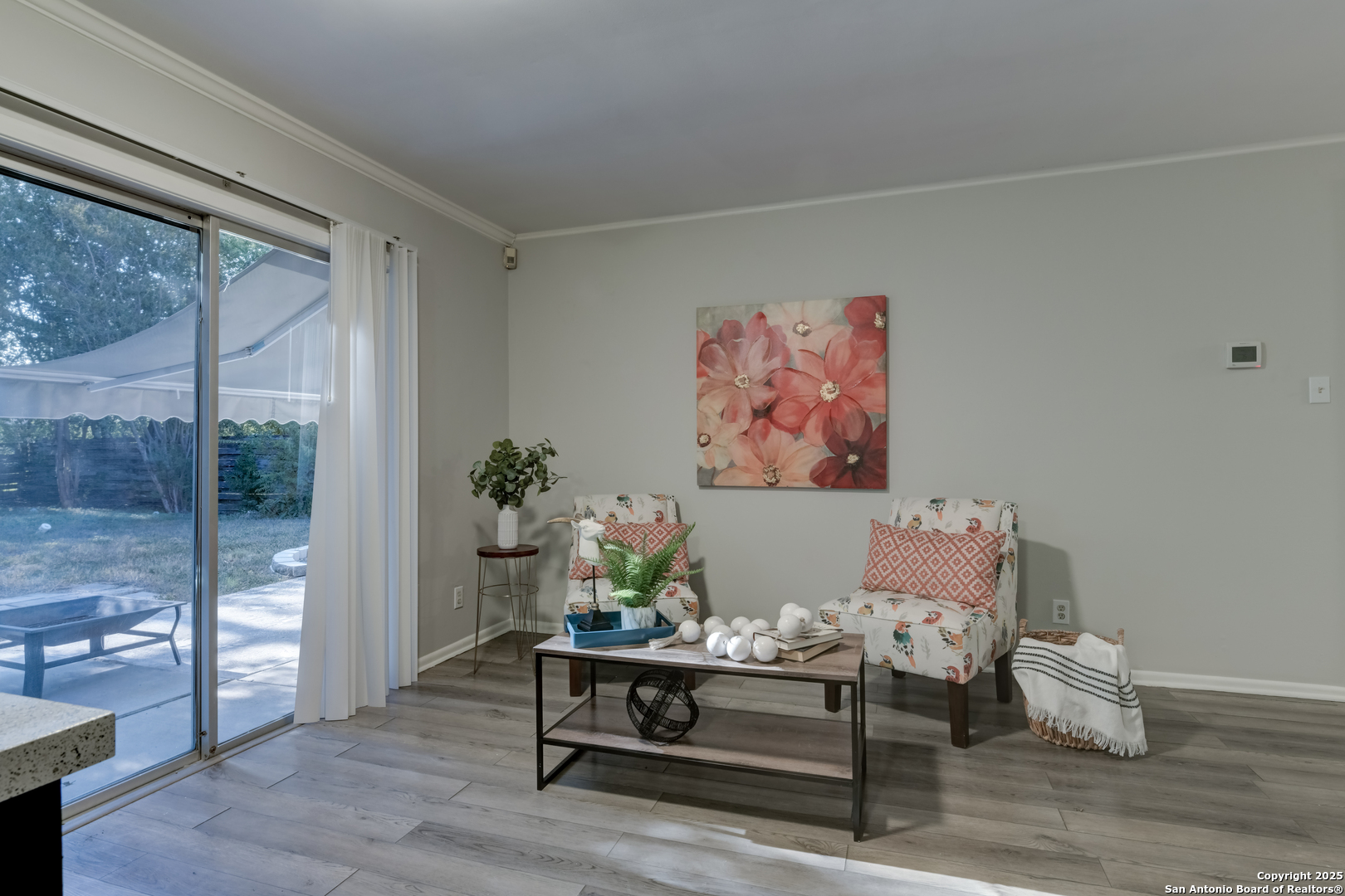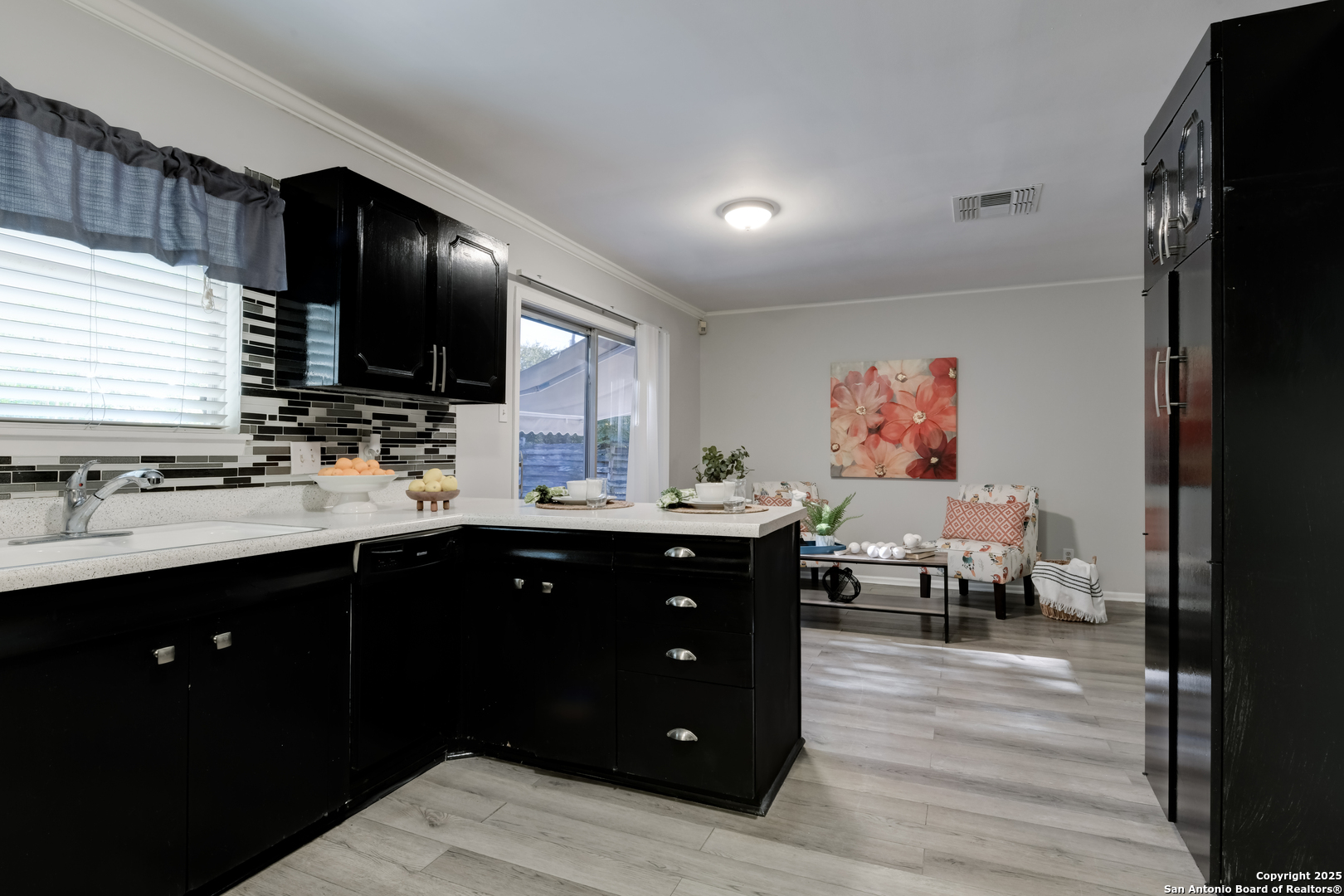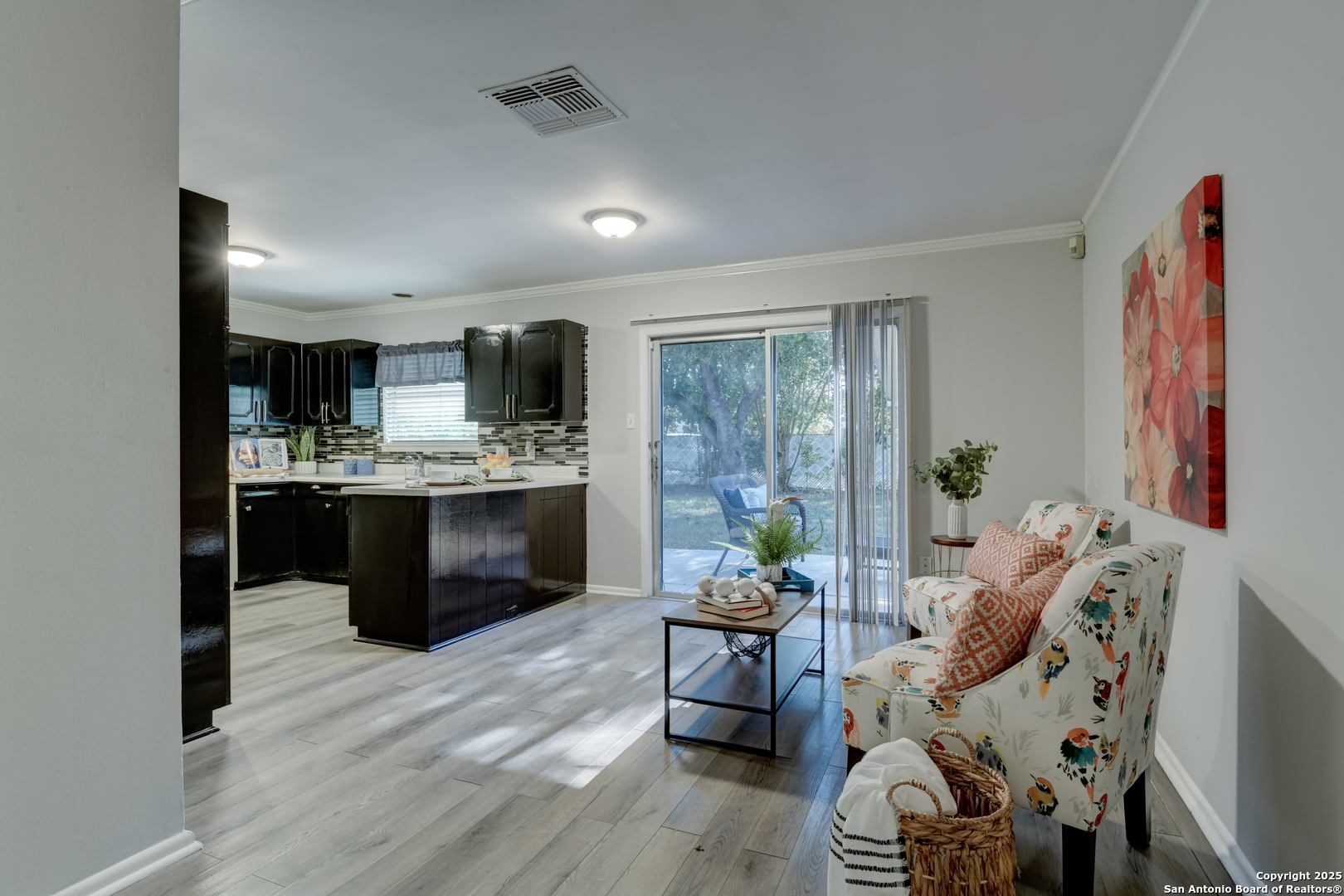 BIG PRICE ADJUSTMENT: GREAT HOME: GREAT TIME TO BUY! DON'T WAIT! Car Lovers Garage! Oversized Garage with Back door and window sets this home apart. Nice natural light for your Vehicles,workshop, Storage and Work Out space This charming 3-bedroom, 2-bath 2 car garage home sits on a spacious lot with beautiful curb appeal, a backyard built for BBQs, and plenty of room for kids or adults to retreat, play soccer, or simply relax on the thick, lush grass which has full Sprinkler System in front and back yards. Inside, you'll find fresh paint throughout, updated counters and sinks, a gas oven and stove for the home chef, easy-care laminate flooring, and a great garage for all car enthusiasts! "The home offers a great flow for everyday living and entertaining-whether you're enjoying the cozy living spaces indoors or gathering outdoors around one of the three backyard fire pits and large patio. Security system, and a solid roof offer peace of mind-all in highly sought-after NEISD. Conveniently located with quick access to Loop 410, IH-35, and IH-10, near the Medical Center, minutes to St. Mary's Hall School, and close to the San Antonio International Airport. Built in 1965, this home blends classic character with modern updates-perfect as a starter home, rental, or long-term investment. Don't wait-this one won't last long! Prime location near schools, loop access & Medical Center Great resturants and shopping.