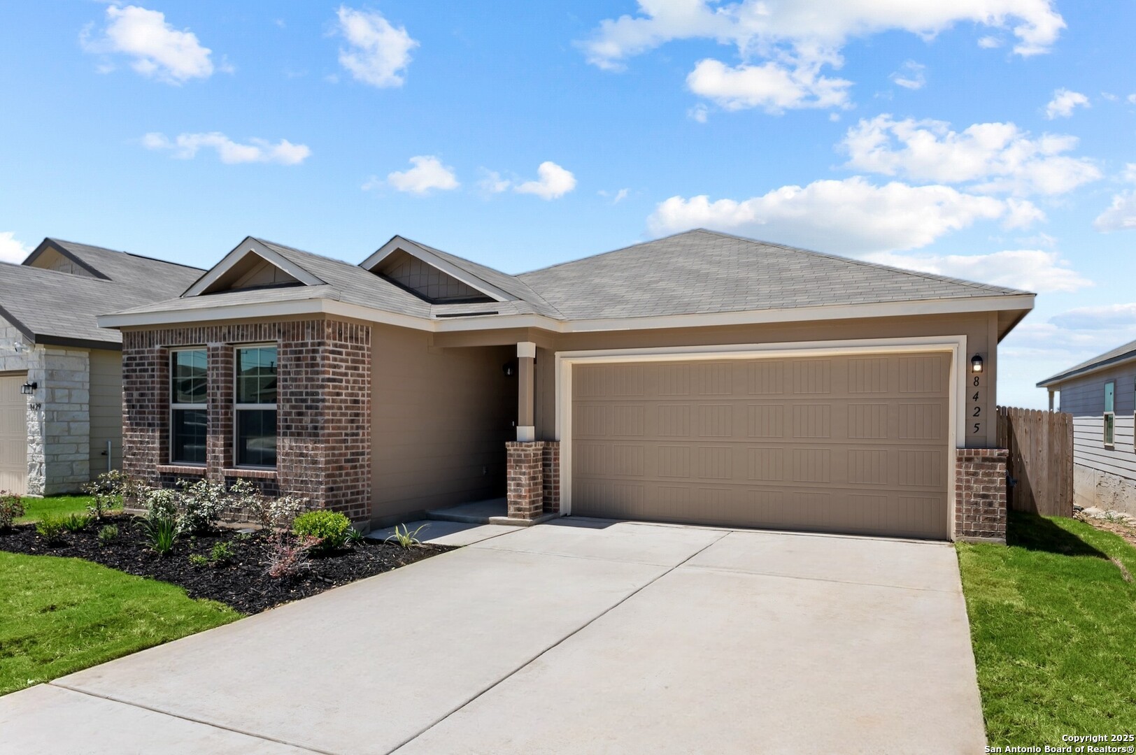 *** READY NOW*** Welcome to this charming 3-bedroom, 2-bathroom home located at 8425 Roadrunner Passage in San Antonio, TX. This home, perfect for a wide range of buyers, offers a cozy and modern living experience in a vibrant community setting. The well-appointed kitchen is a culinary delight featuring sleek countertops, contemporary appliances, and ample storage space for all your cooking needs. Your spacious owner's suite is a peaceful retreat with its private en-suite bathroom and generous closet space, offering a comfortable sanctuary to unwind after a long day. The two additional bedrooms, as well as the flex room, are versatile and can be easily transformed into home offices, guest rooms, or play areas to suit your lifestyle. Outside, a covered patio provides the perfect spot for al fresco dining or relaxing with a morning coffee while enjoying the Texas breeze. The home also includes a 2-car garage, ensuring convenience for residents and guests alike. With a total of 1,642 square feet of living space, this home offers a balance of functionality and style, making it a wonderful place to call home. Its location in San Antonio provides easy access to local amenities, schools, parks, and major highways, promising a convenient and connected lifestyle for its residents. Don't miss the opportunity to make this delightful home your own. Whether you're a first-time homebuyer, a growing family, or anyone in between, this home is sure to captivate you with its modern design, practical layout, and prime location. Schedule a showing today and envision yourself living in this welcoming and inclusive community in San Antonio, TX. Embrace the opportunity to create your own story within its walls and experience the joys of homeownership in a thriving neighborhood. Your dream home awaits!
