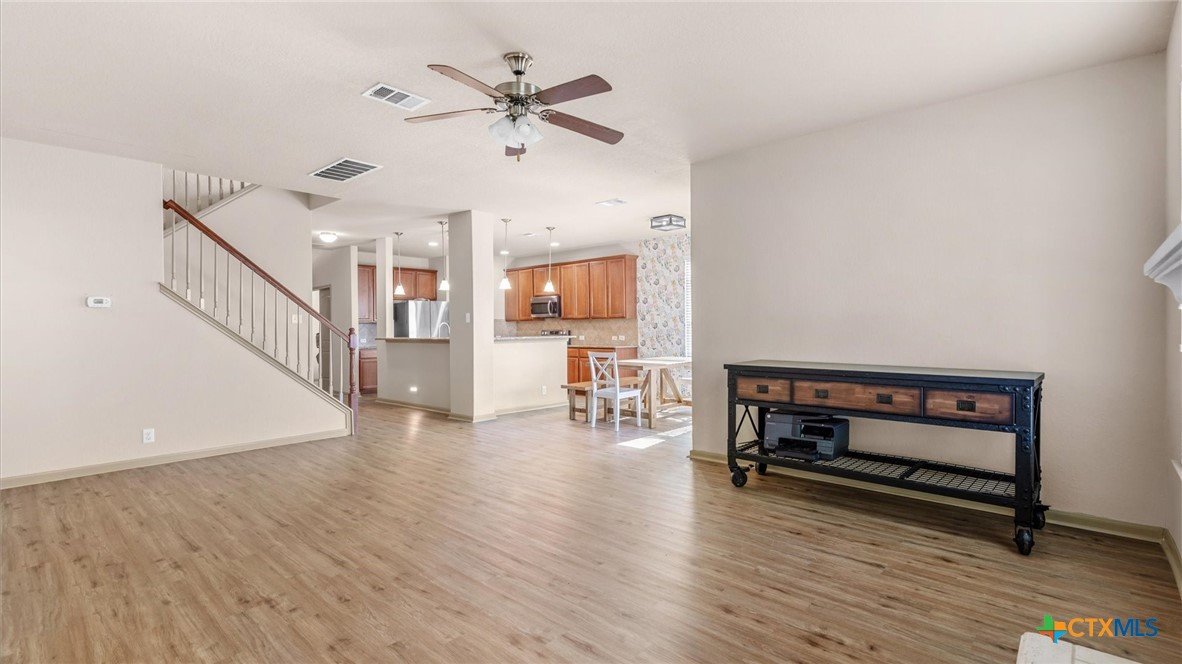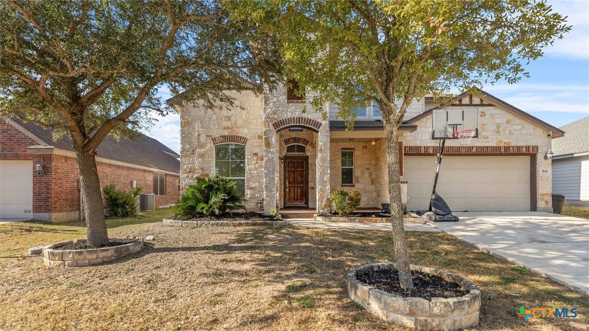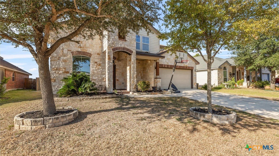 This spacious 4-Bedroom, 3.5-Bath home has been freshly painted inside with a soft neutral color palette and features new flooring downstairs. Front Office for quiet workspace. Open concept living flows nicely into the well-appointed Kitchen offering stainless steel appliances and granite counters that leads you to the Dining and inviting Living room with cozy Fireplace. Primary suite downstairs with 3 additional Bedrooms upstairs along with a Family room and covered Balcony to sick back relax and enjoy the view. Privacy-fenced backyard along with covered patio, plenty of space to enjoy and with no back neighbors. HOA community amenities include Pool and playground. Located in Comal ISD with Clear Spring Elem School within the neighborhood.