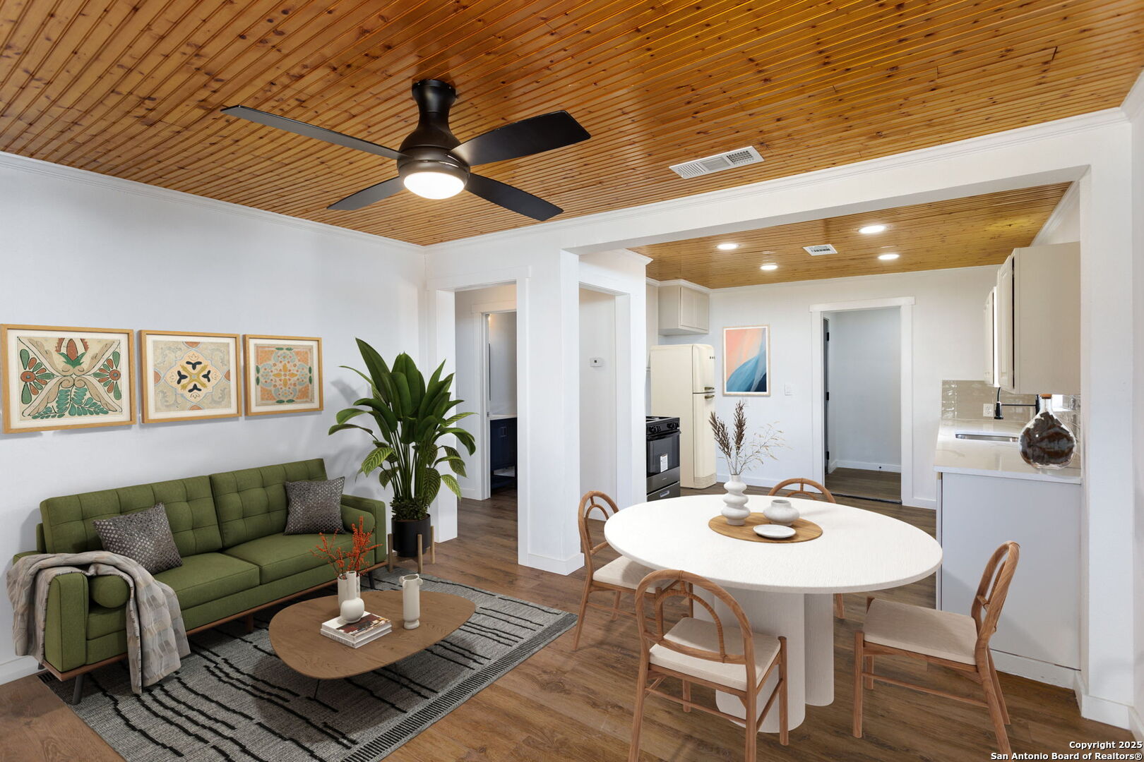 Come see this amazing single-story, 2-bedroom, 1-bath home. This home has an abundance of natural light with beautiful flooring throughout. The kitchen has updated quartz countertops, modern cabinets, and stainless steel appliances. Gorgeous primary and secondary bedroom both are comfortable in size. Finally, look up to admire the unique and attractive wood accent ceiling, adding a warm and rustic charm that sets this home apart from the rest. There is no better way to experience easy-style living in a prime location. Convenient access to great restaurants and fantastic shops.