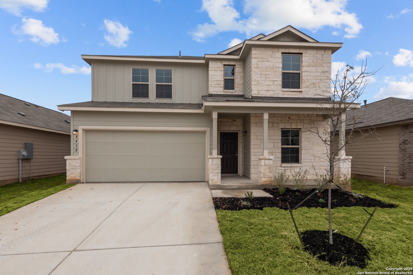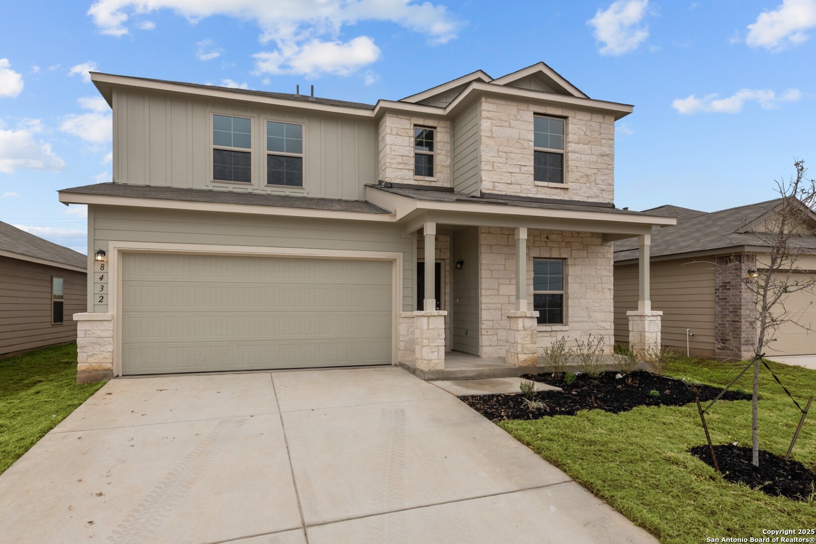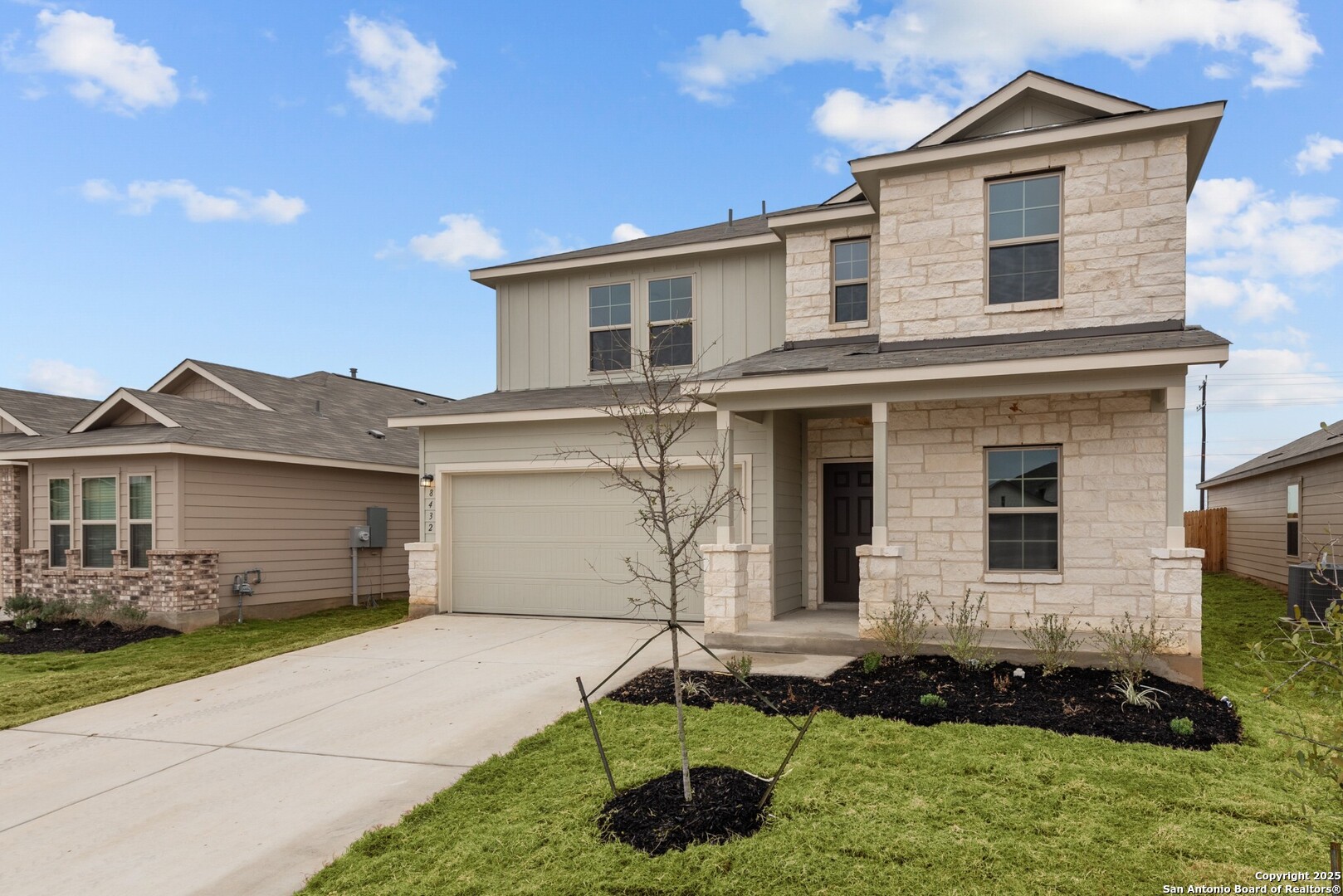 **READY NOW**** Welcome to this stunning new construction home located at 8432 Roadrunner Passage in the inviting city of San Antonio, Texas. This spacious 2-story home, thoughtfully built by M/I Homes, offers a perfect blend of modern design and comfort, making it an ideal place to call home for families of all sizes. As you step inside, you'll be greeted by a bright and inviting open floorplan that seamlessly connects the living, dining, and kitchen areas. The well-appointed kitchen is a chef's dream, featuring sleek cabinets, modern appliances, and ample counter space for preparing meals and gathering with loved ones. Whether you're hosting a dinner party or enjoying a casual meal, this kitchen is sure to inspire your culinary adventures. With 5 bedrooms, 3 full bathrooms, and a game room spread across 2,416 square feet of living space, there's plenty of room for everyone to have their own private retreat. The bedrooms are spacious and offer flexibility for various living arrangements, whether you need a home office, a playroom, or a guest suite. Relax and unwind in the comfort of your owner's suite, complete with a bay window and a luxurious en-suite bathroom and a walk-in closet that provides plenty of storage space for your belongings. Step outside to the deluxe covered patio, where you can enjoy the fresh air and entertain guests or simply sip your morning coffee in peace. The outdoor space is perfect for summer barbecues, al fresco dining, or just soaking up the Texas sunshine. This home also includes a 2-car garage, providing secure parking and additional storage space for your vehicles, sports equipment, or tools. Located in a desirable neighborhood, this home offers easy access to nearby parks, schools, shopping centers, and major highways, making commuting a breeze. Don't miss the opportunity to make this beautiful house your new home.