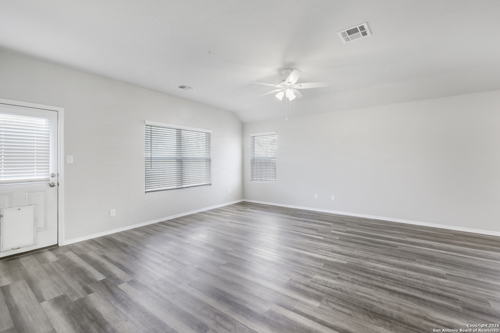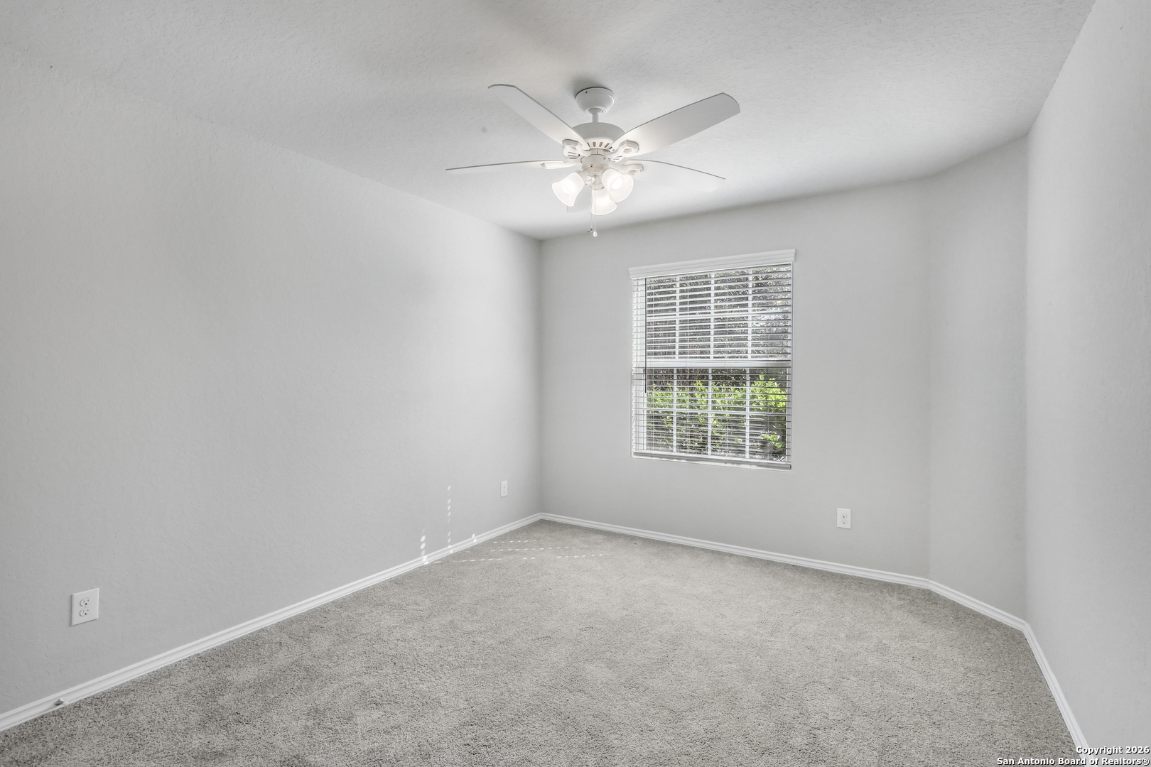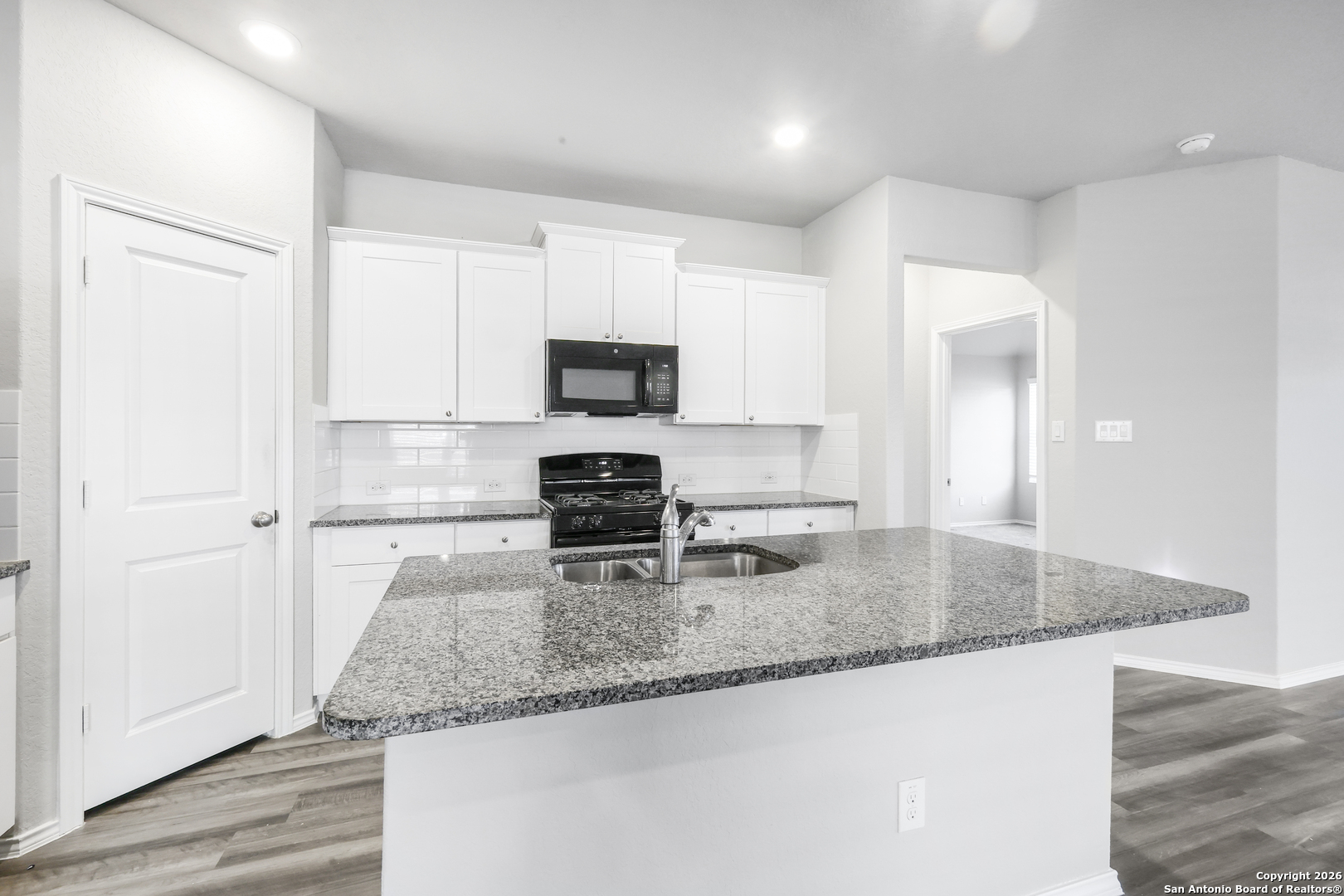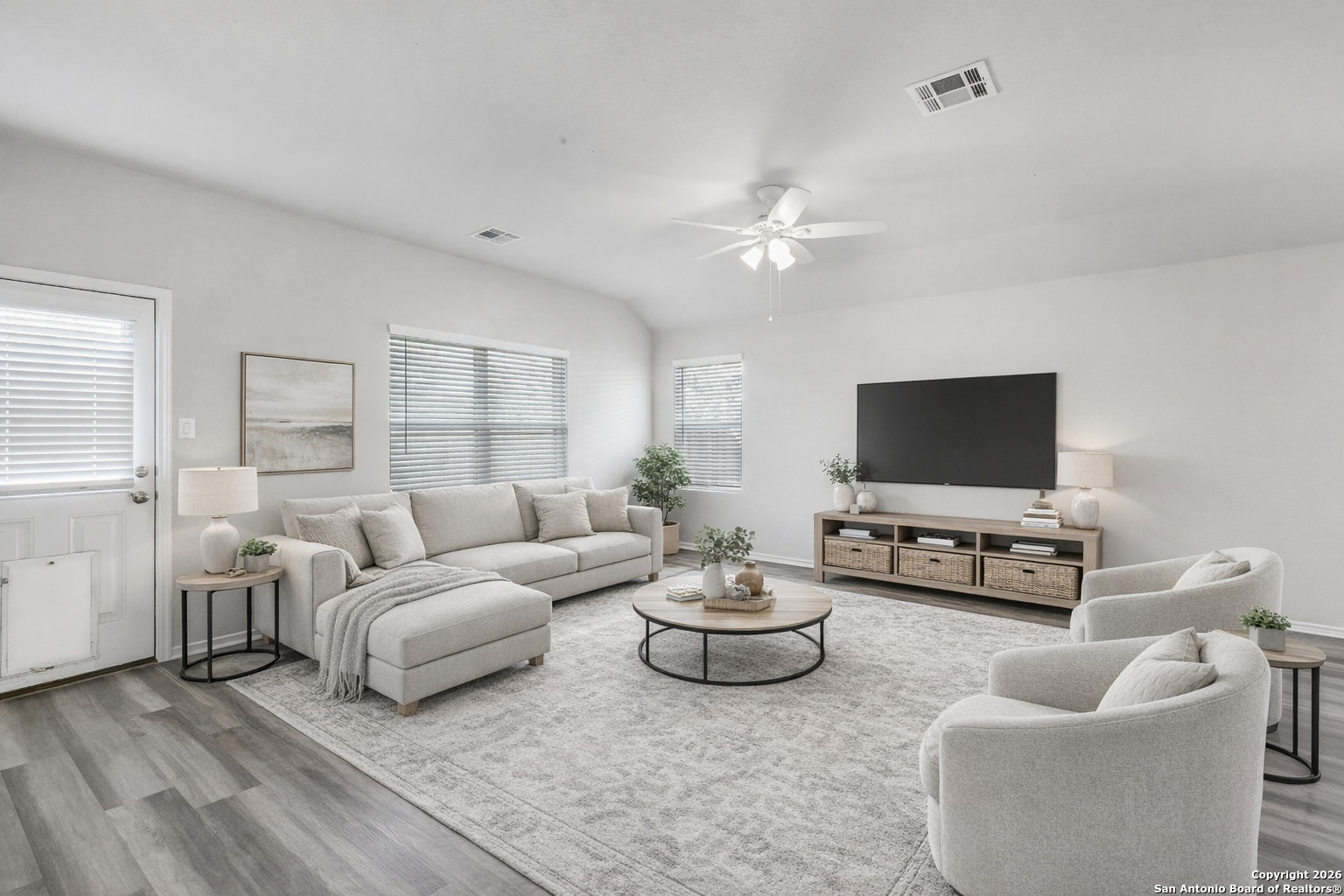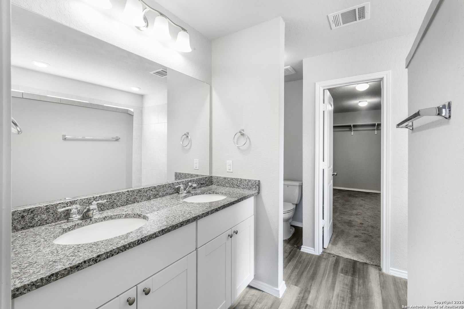 This beautiful three-bedroom, two-bath home is nestled in the desirable Waterwheel community of Northwest San Antonio and offers an ideal blend of comfort, style, and convenience. The single-story layout welcomes you with impressive curb appeal, highlighted by a stone and brick facade, manicured landscaping, and a spacious driveway leading to a two-car garage. Inside, a bright and airy open-concept design unfolds with luxury vinyl plank flooring throughout the main living areas and abundant natural light that enhances the inviting atmosphere. The stylish kitchen features granite countertops, ample cabinetry, and generous storage, seamlessly connecting to both the dining area and an adjacent breakfast nook that provide flexible spaces for everyday meals or special gatherings. The oversized living room offers plenty of space to relax and entertain while maintaining a natural flow into the kitchen and dining areas for effortless connection. The private primary suite serves as a peaceful retreat with large windows, a walk-in closet, and a double-vanity ensuite bath. Outdoors, the home has a new roof which was replaced in July 2025 and the fully fenced backyard is perfectly suited for quiet mornings or evening get-togethers, featuring a covered patio, lush green lawn and the added privacy of a cul-de-sac lot. Additional features include Ring doorbell, smart thermostat and a whole home wifi extender, a dedicated laundry room, recessed lighting, ceiling fans throughout, and a neutral color palette ready for personal touches. Zoned to Northside ISD and conveniently located near shopping, dining, parks, and major highways, this home offers a wonderful opportunity to enjoy Northwest San Antonio living at its best!