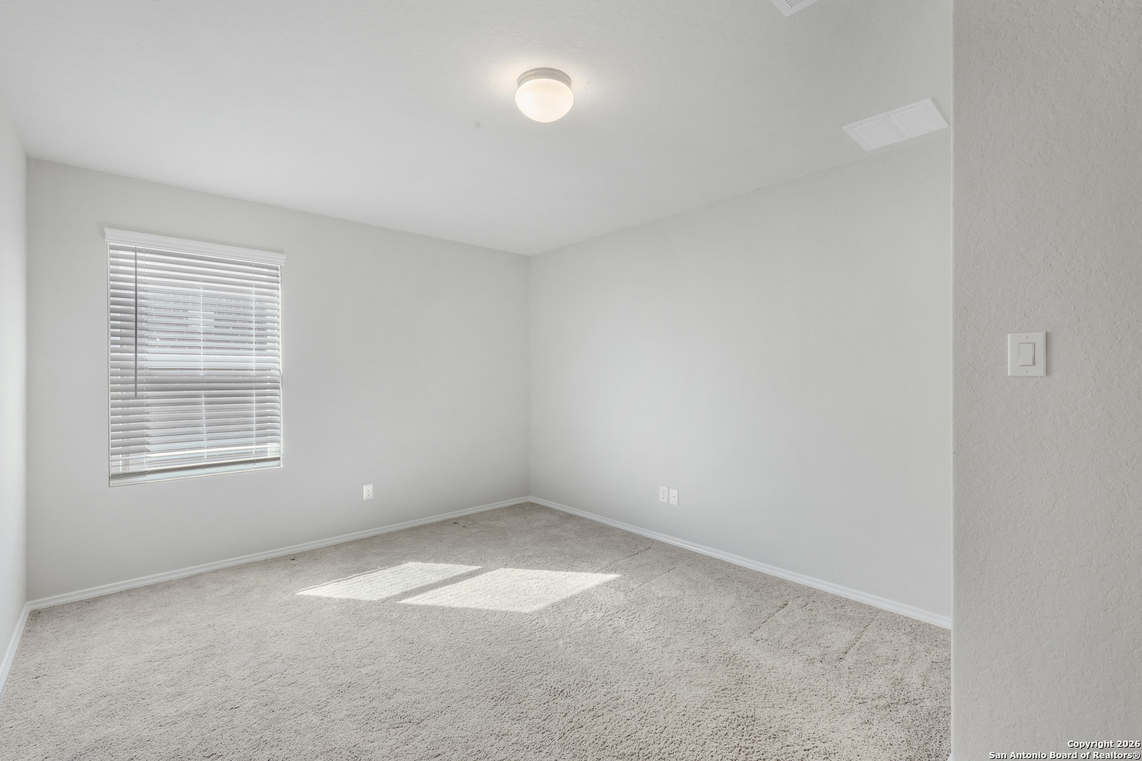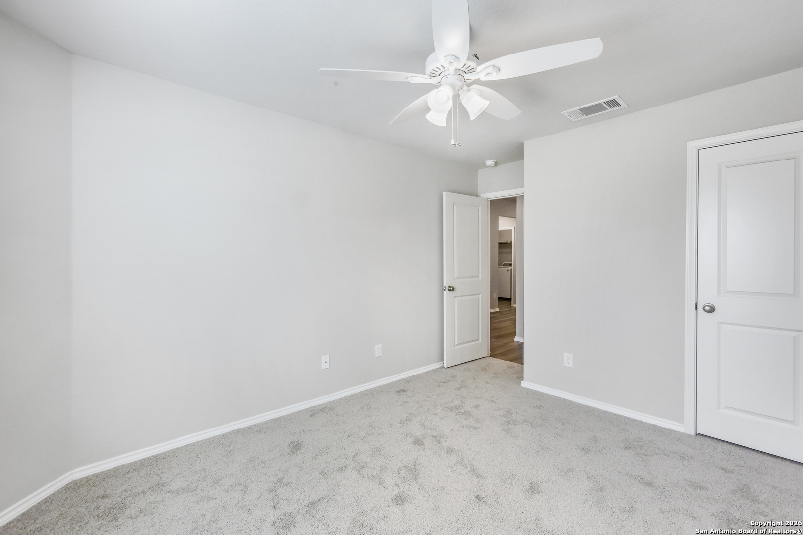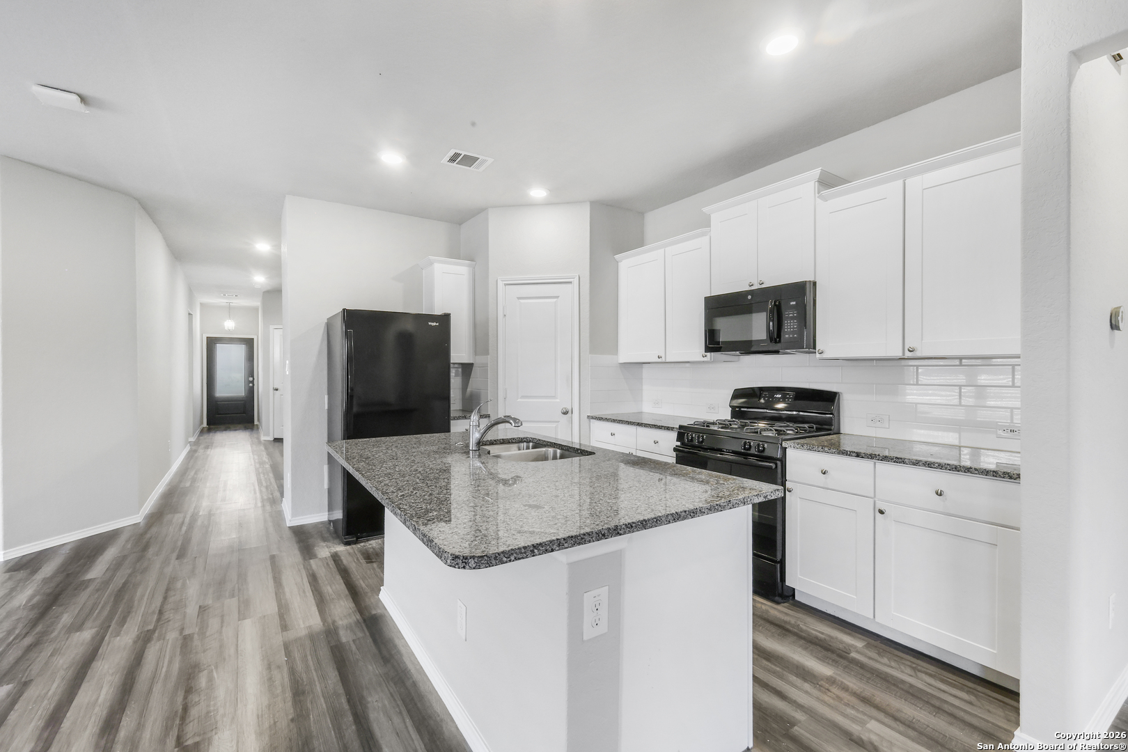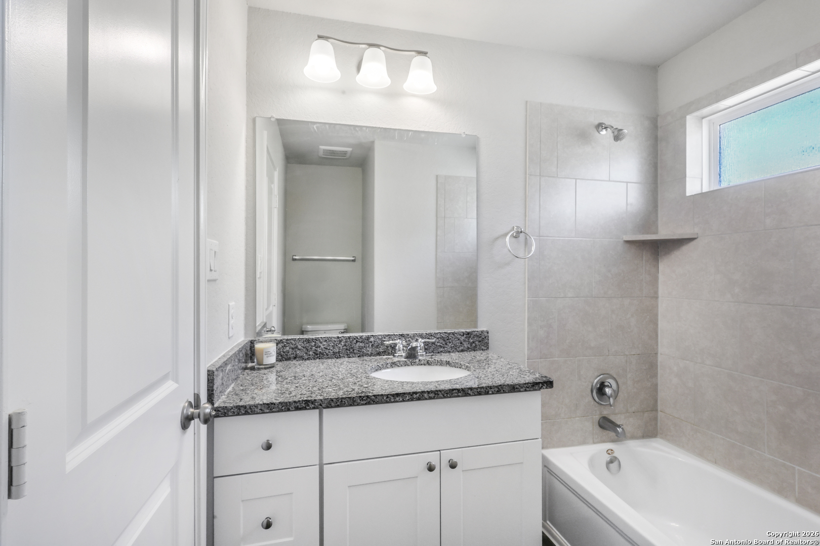 This beautiful three-bedroom, two-bath home is nestled in the desirable Waterwheel community of Northwest San Antonio and offers an ideal blend of comfort, style, and convenience. The single-story layout welcomes you with impressive curb appeal, highlighted by a stone and brick facade, manicured landscaping, and a spacious driveway leading to a two-car garage. Inside, a bright and airy open-concept design unfolds with luxury vinyl plank flooring throughout the main living areas and abundant natural light that enhances the inviting atmosphere. The stylish kitchen features granite countertops, ample cabinetry, and generous storage, seamlessly connecting to both the dining area and an adjacent breakfast nook that provide flexible spaces for everyday meals or special gatherings. The oversized living room offers plenty of space to relax and entertain while maintaining a natural flow into the kitchen and dining areas for effortless connection. The private primary suite serves as a peaceful retreat with large windows, a walk-in closet, and a double-vanity ensuite bath. Outdoors, the home has a new roof which was replaced in July 2025 and the fully fenced backyard is perfectly suited for quiet mornings or evening get-togethers, featuring a covered patio, lush green lawn and the added privacy of a cul-de-sac lot. Additional features include Ring doorbell, smart thermostat and a whole home wifi extender, a dedicated laundry room, recessed lighting, ceiling fans throughout, and a neutral color palette ready for personal touches. Zoned to Northside ISD and conveniently located near shopping, dining, parks, and major highways, this home offers a wonderful opportunity to enjoy Northwest San Antonio living at its best!