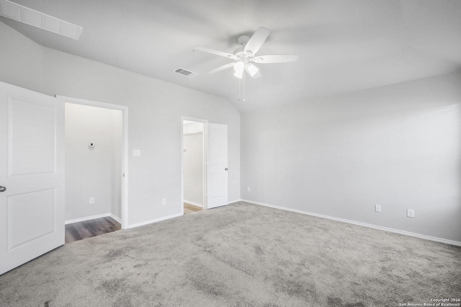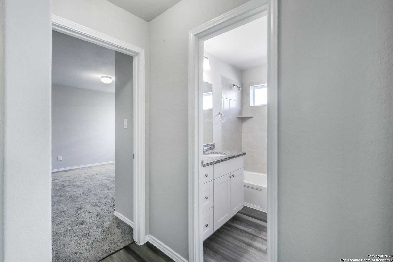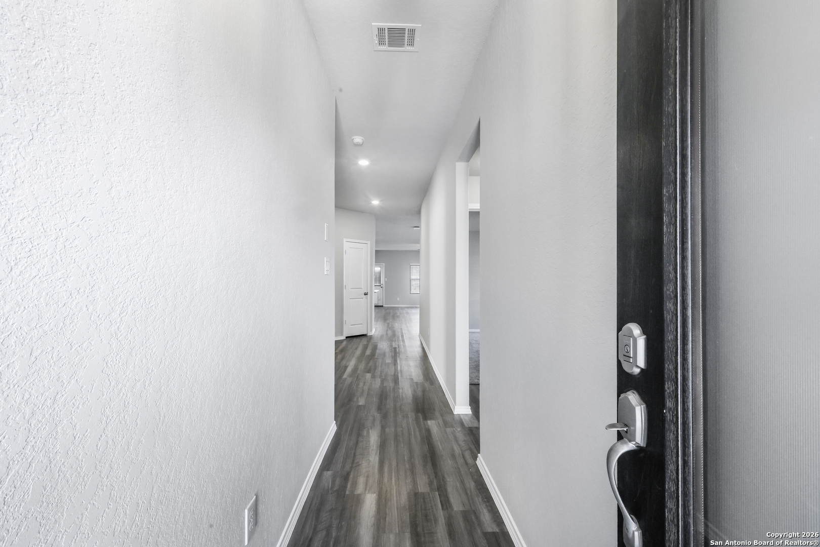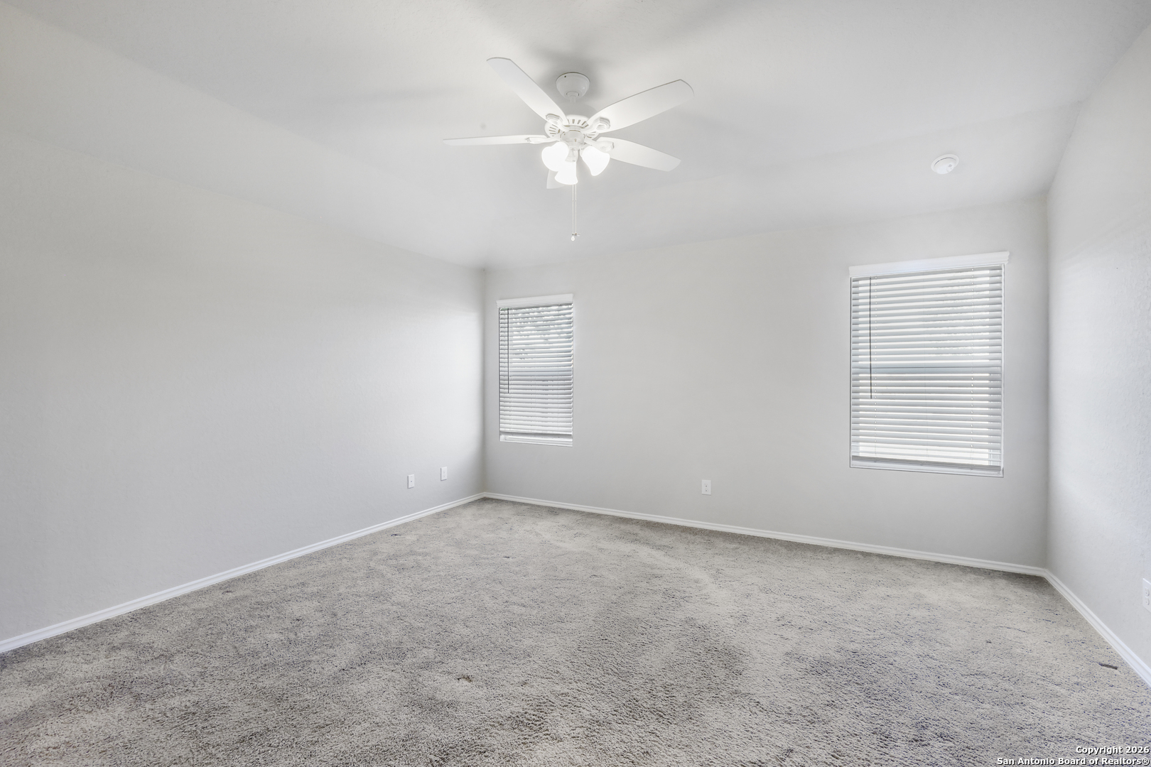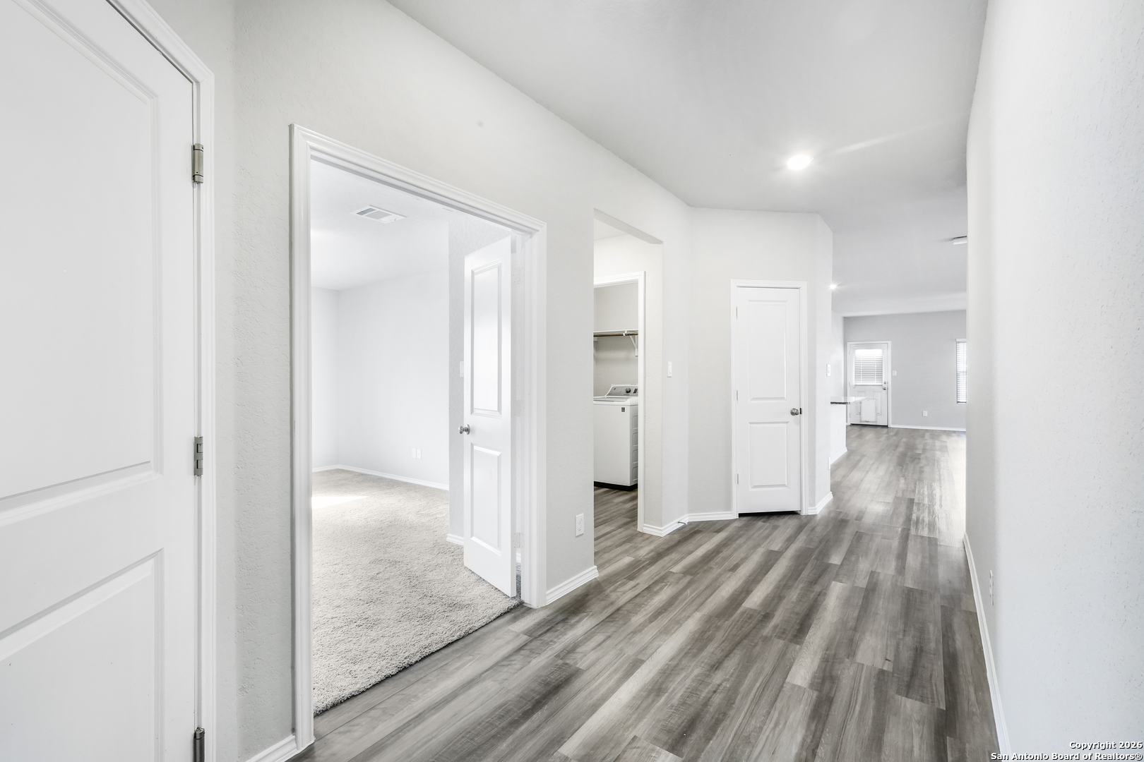 This beautiful three-bedroom, two-bath home is nestled in the desirable Waterwheel community of Northwest San Antonio and offers an ideal blend of comfort, style, and convenience. The single-story layout welcomes you with impressive curb appeal, highlighted by a stone and brick facade, manicured landscaping, and a spacious driveway leading to a two-car garage. Inside, a bright and airy open-concept design unfolds with luxury vinyl plank flooring throughout the main living areas and abundant natural light that enhances the inviting atmosphere. The stylish kitchen features granite countertops, ample cabinetry, and generous storage, seamlessly connecting to both the dining area and an adjacent breakfast nook that provide flexible spaces for everyday meals or special gatherings. The oversized living room offers plenty of space to relax and entertain while maintaining a natural flow into the kitchen and dining areas for effortless connection. The private primary suite serves as a peaceful retreat with large windows, a walk-in closet, and a double-vanity ensuite bath. Outdoors, the home has a new roof which was replaced in July 2025 and the fully fenced backyard is perfectly suited for quiet mornings or evening get-togethers, featuring a covered patio, lush green lawn and the added privacy of a cul-de-sac lot. Additional features include Ring doorbell, smart thermostat and a whole home wifi extender, a dedicated laundry room, recessed lighting, ceiling fans throughout, and a neutral color palette ready for personal touches. Zoned to Northside ISD and conveniently located near shopping, dining, parks, and major highways, this home offers a wonderful opportunity to enjoy Northwest San Antonio living at its best!
