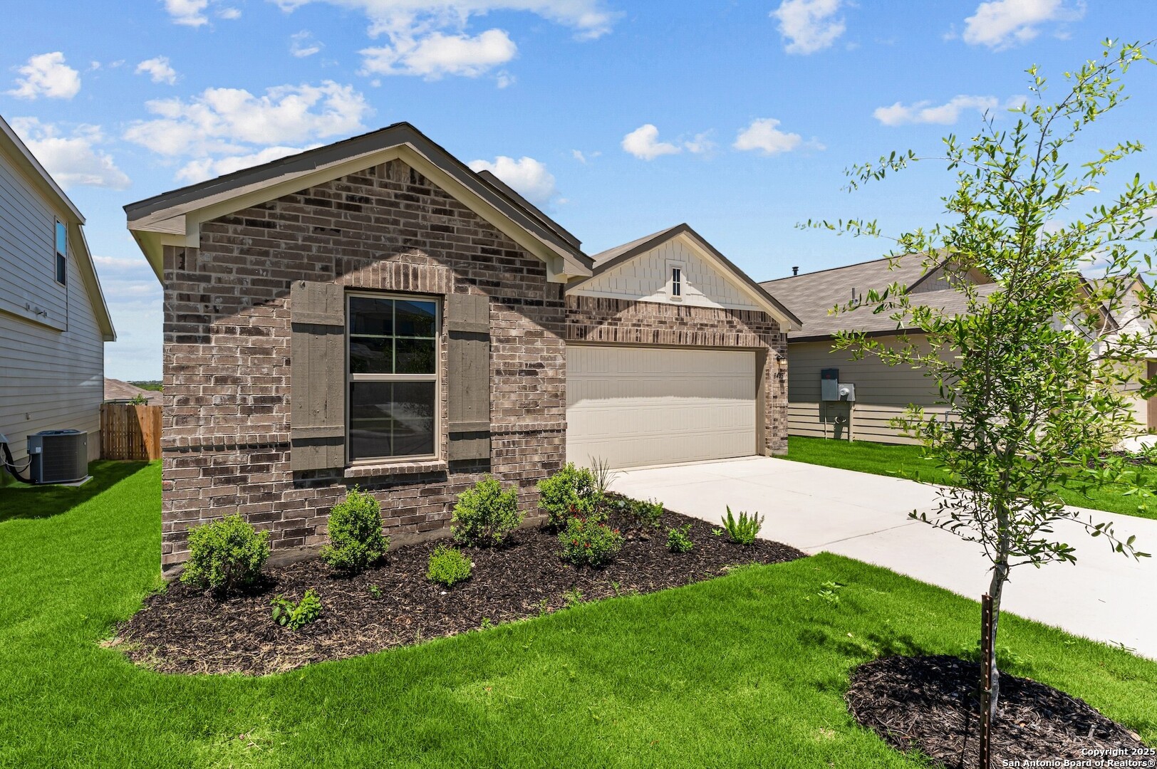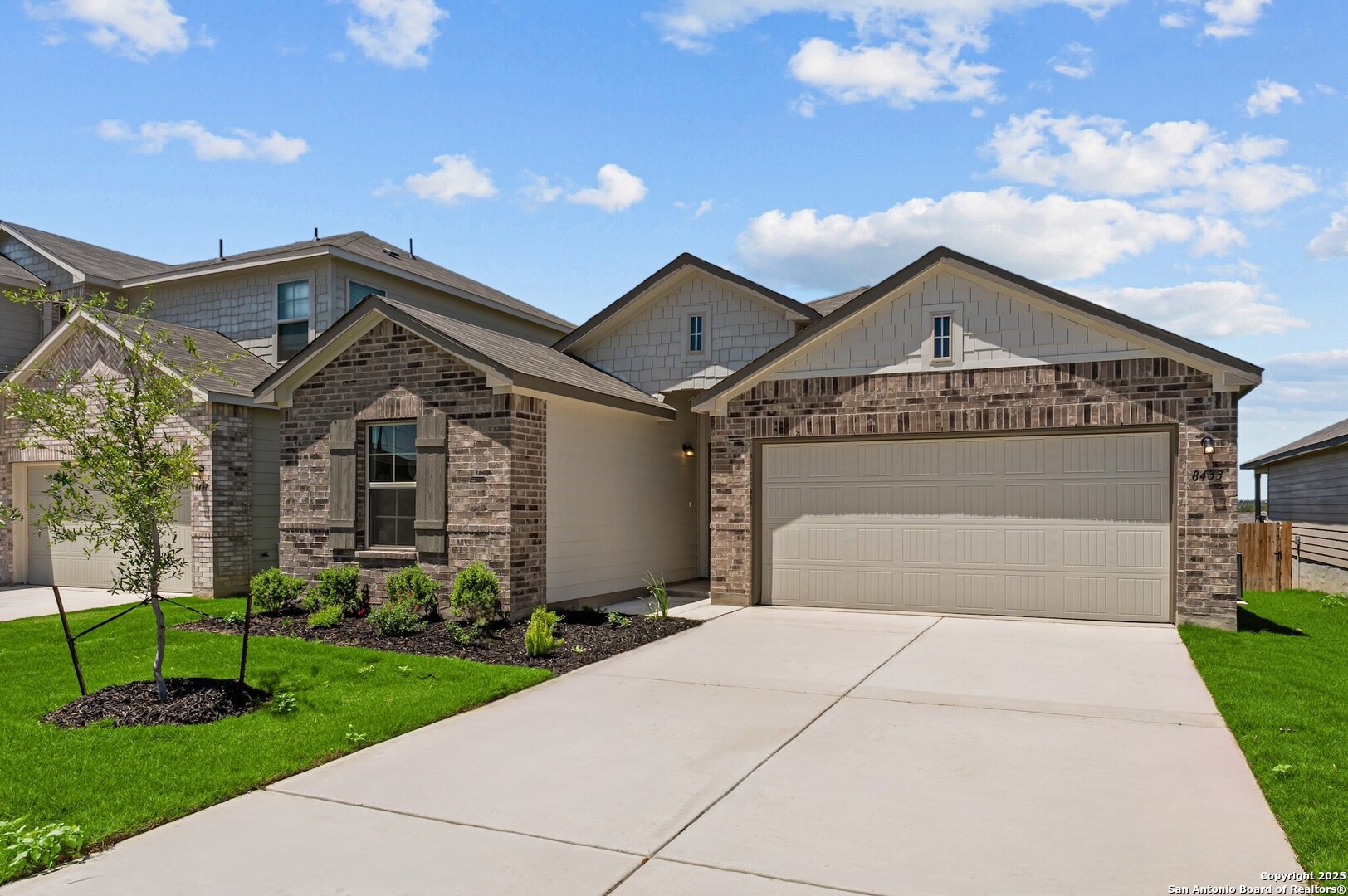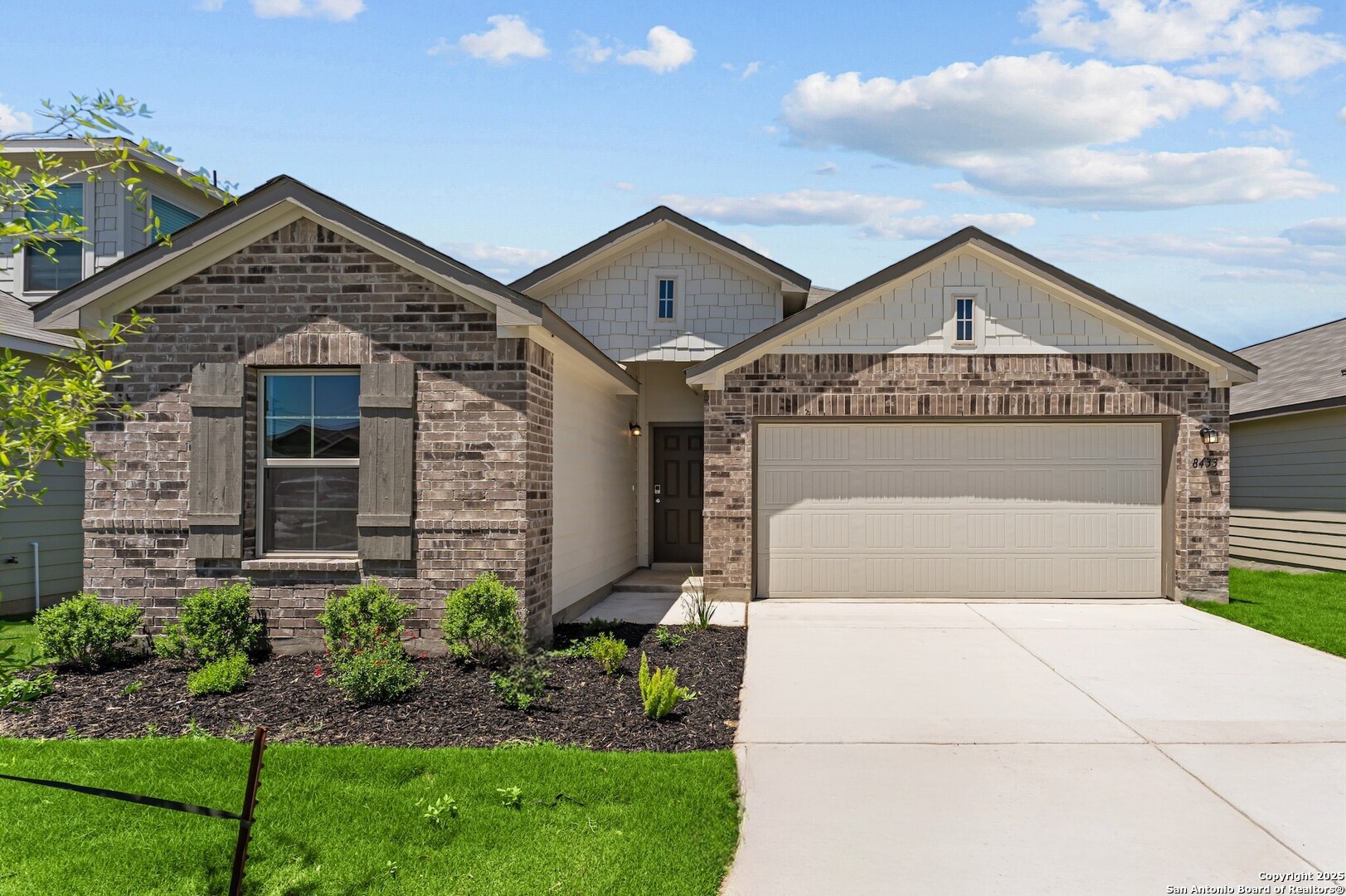 ** READY NOW ** Welcome to 8433 Roadrunner Passage in San Antonio, TX! This delightful new construction home by M/I Homes offers a perfect blend of comfort and modern living in a friendly community. With 3 cozy bedrooms and 2 well-appointed bathrooms, this 1-story house provides a welcoming space for families and individuals alike. As you enter, you'll be greeted by a spacious open floor plan that seamlessly connects the living area, dining space, and kitchen. The kitchen is a highlight, featuring sleek countertops, ample cabinet storage, and modern appliances, making it an ideal space for culinary enthusiasts and entertaining guests. The owner's bedroom is designed for relaxation, complete with an en-suite bathroom for added privacy and comfort. The additional bedrooms are perfect for family, guests, or creating a home office. Enjoy the outdoor space with a covered patio, perfect for al fresco dining or savoring your morning coffee while taking in the surroundings. Located in a desirable San Antonio neighborhood, you'll benefit from easy access to local amenities, shopping centers, restaurants, and parks. The area is known for its vibrant community and quality schools, making it an excellent choice for families or individuals seeking a welcoming environment.