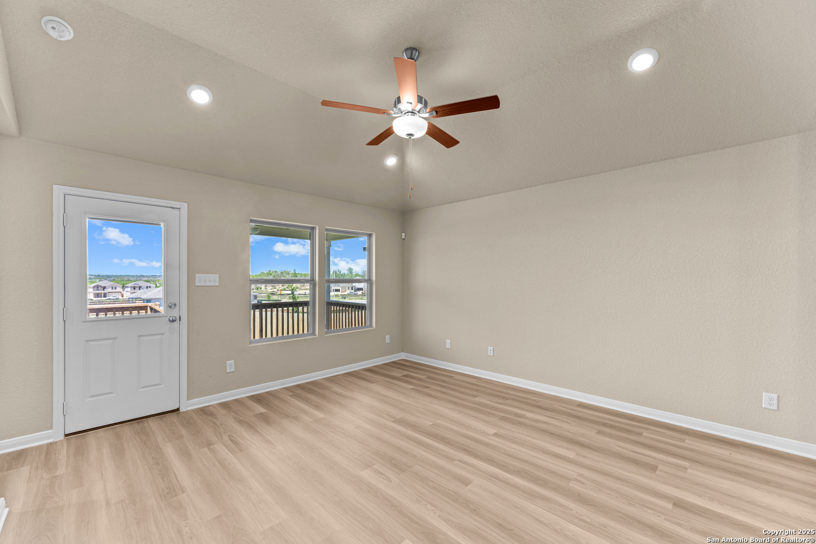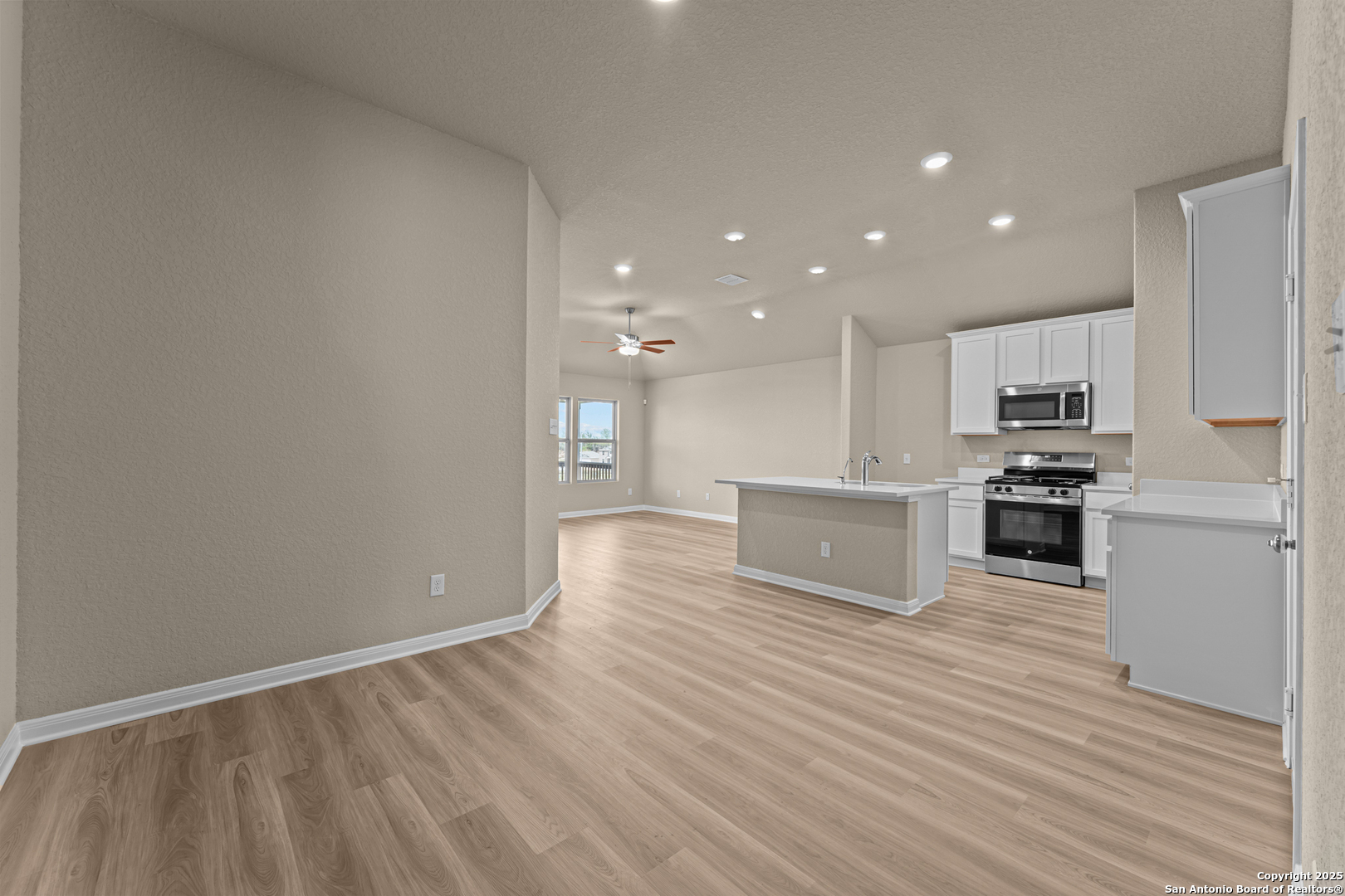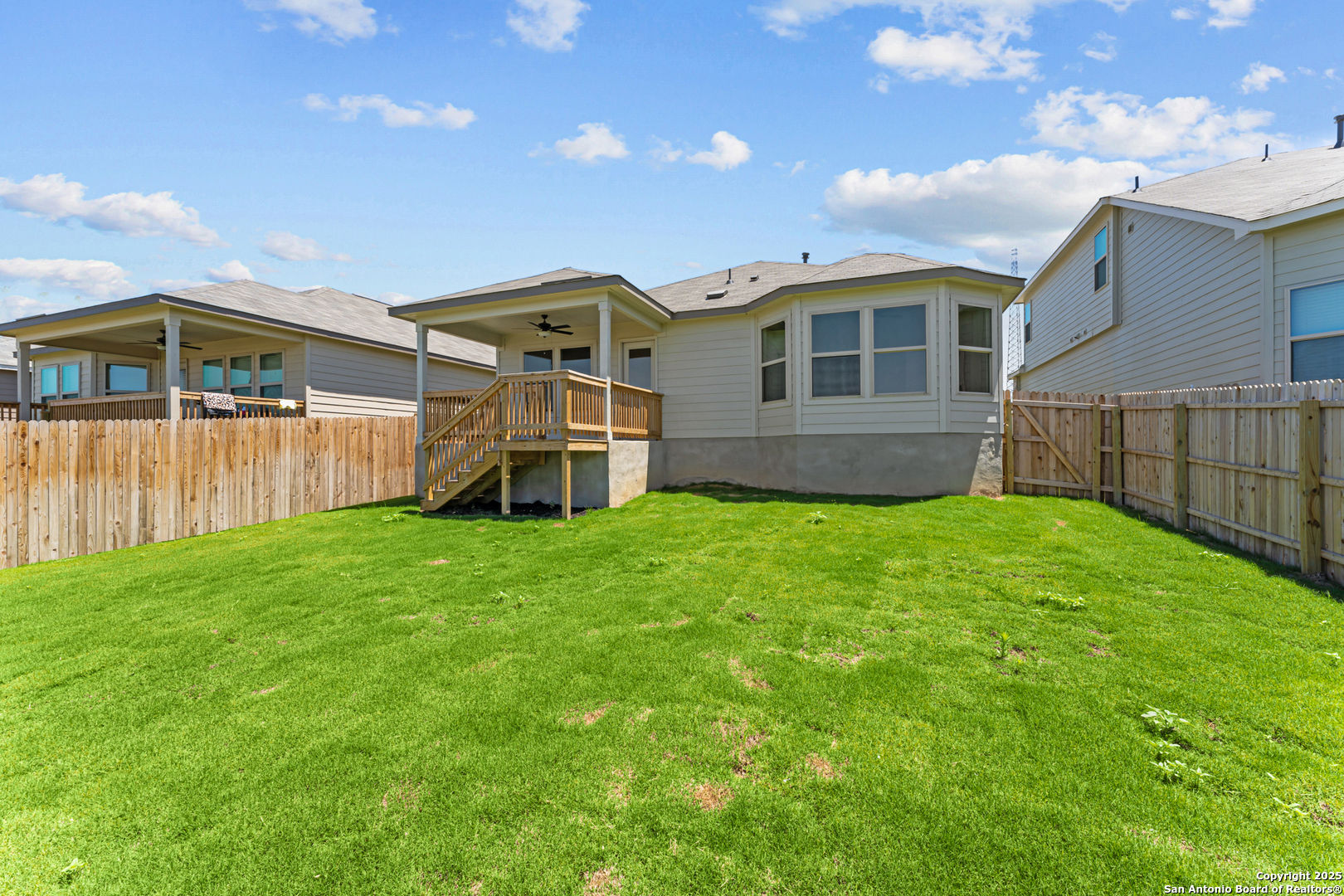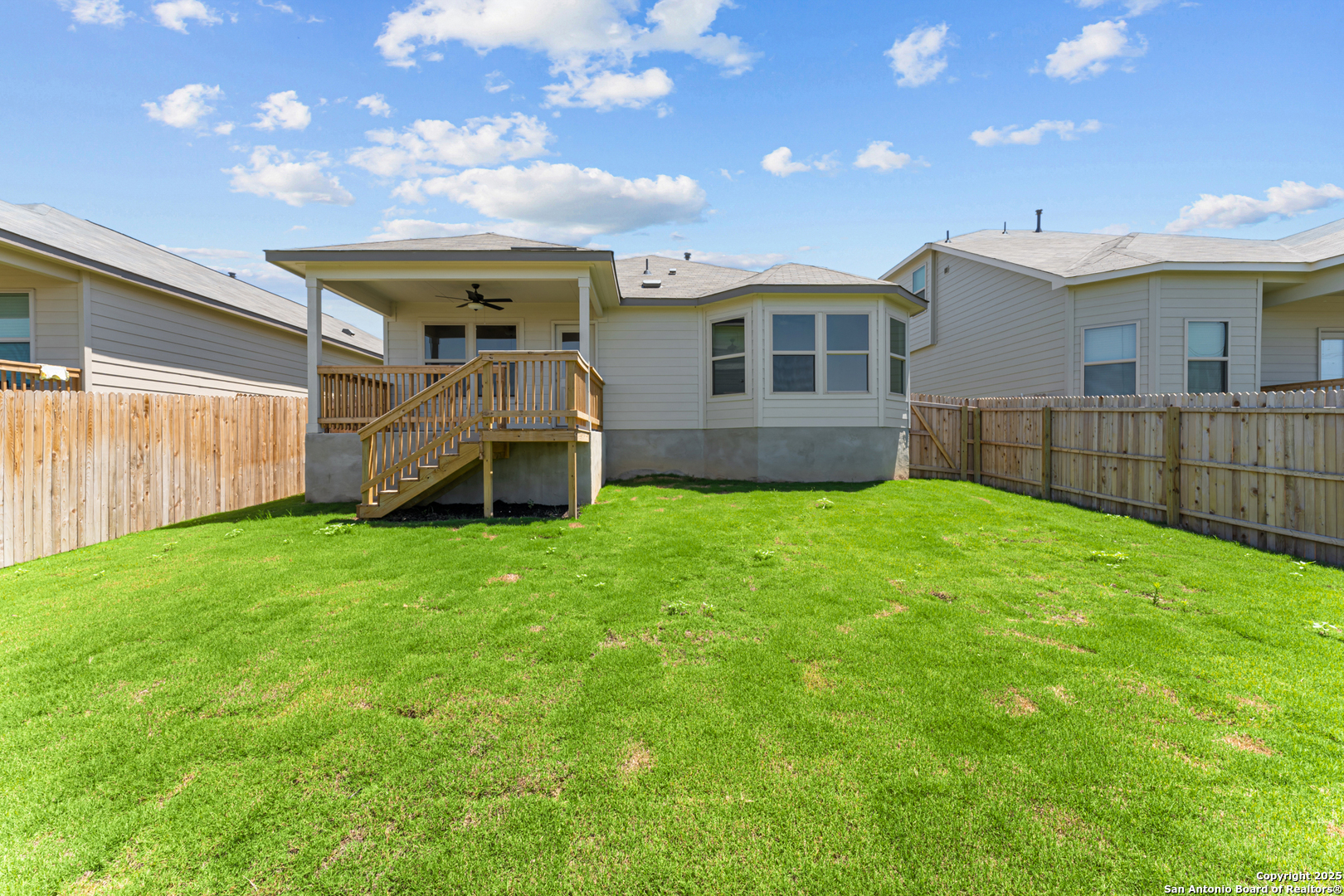 ** READY NOW ** Welcome to 8433 Roadrunner Passage in San Antonio, TX! This delightful new construction home by M/I Homes offers a perfect blend of comfort and modern living in a friendly community. With 3 cozy bedrooms and 2 well-appointed bathrooms, this 1-story house provides a welcoming space for families and individuals alike. As you enter, you'll be greeted by a spacious open floor plan that seamlessly connects the living area, dining space, and kitchen. The kitchen is a highlight, featuring sleek countertops, ample cabinet storage, and modern appliances, making it an ideal space for culinary enthusiasts and entertaining guests. The owner's bedroom is designed for relaxation, complete with an en-suite bathroom for added privacy and comfort. The additional bedrooms are perfect for family, guests, or creating a home office. Enjoy the outdoor space with a covered patio, perfect for al fresco dining or savoring your morning coffee while taking in the surroundings. Located in a desirable San Antonio neighborhood, you'll benefit from easy access to local amenities, shopping centers, restaurants, and parks. The area is known for its vibrant community and quality schools, making it an excellent choice for families or individuals seeking a welcoming environment.