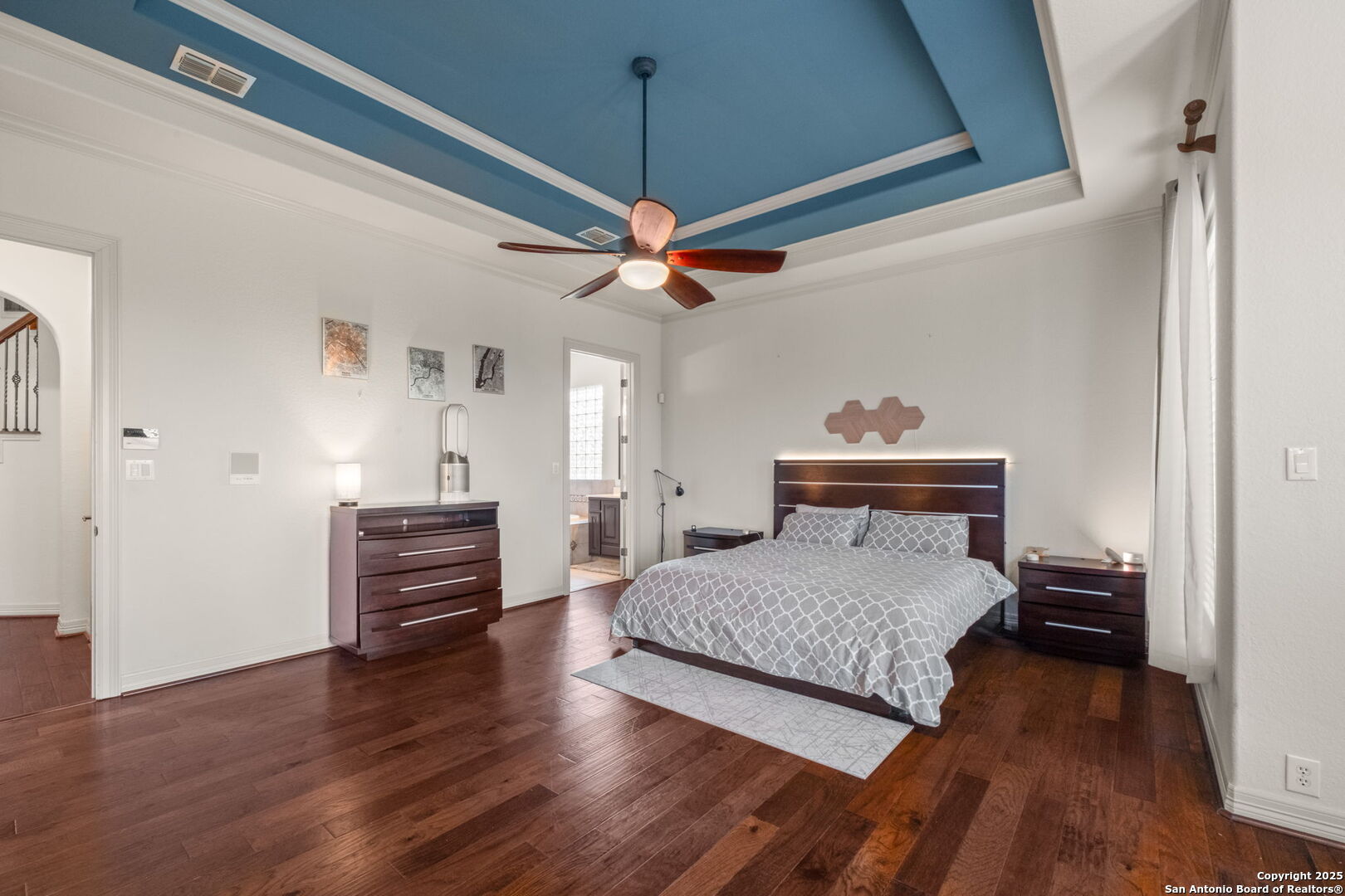 Located in the prestigious gated community of Bent Tree, this elegant 4-bedroom, 3 full and 2 half-bath home offers over 4,000 sq ft of refined living space. Highlights include a grand two-story foyer, multiple living areas, a formal dining room, and a private study with French doors. The gourmet kitchen features granite countertops, custom cabinetry, premium stainless appliances, a gas cooktop, and a large island with bar seating, opening to a spacious living room with a stone fireplace and greenbelt views. The downstairs primary suite offers a peaceful retreat with a sitting area, spa-like bath, and custom walk-in closet. A multi-level deck overlooks beautifully landscaped grounds, and additional features include a 3-car garage, dual-zoned HVAC, water softener, security and intercom systems, and a full-yard sprinkler system. Do not miss out on this beauty, schedule your showing today!