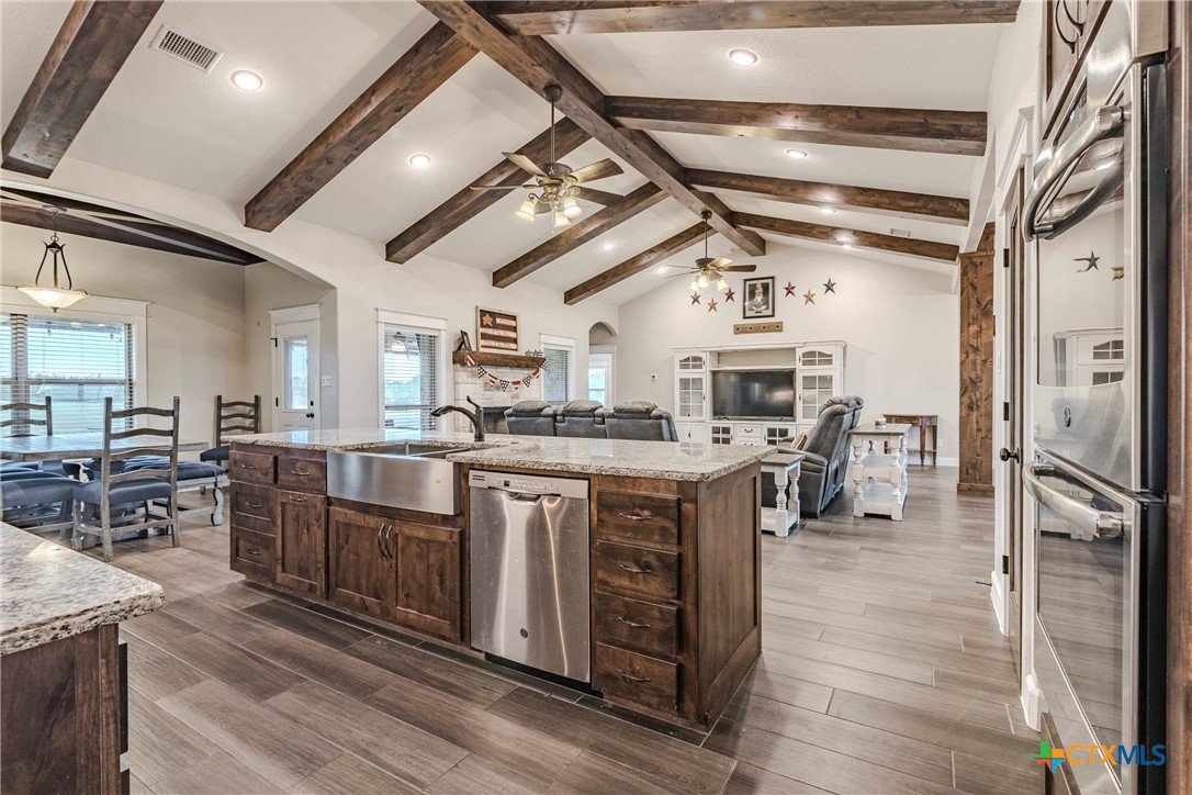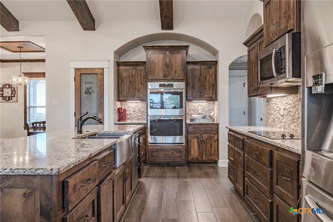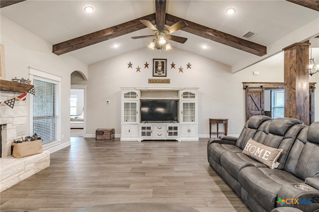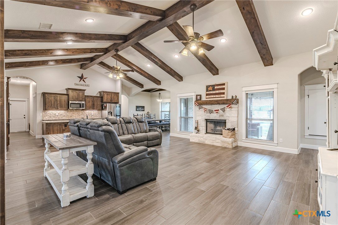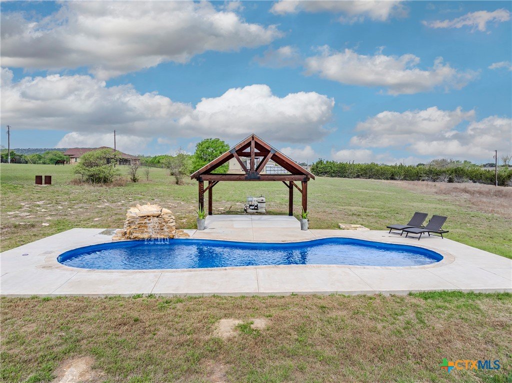 Welcome to your dream home situated on 5 sprawling acres! This stunning custom built home offers 3,011 sqft of beautifully appointed living space, featuring a split open floor plan that maximizes comfort and style. With 4 spacious bedrooms, 3 modern bathroom, and a dedicated office/flex room, this home is designed for both everyday living and sophisticated entertaining. Two dining areas add versatility for hosting family meals and formal gatherings. Step into the grand living room, where cathedral ceilings and exquisite custom detail trim set a tone of elegance. The common areas showcase durable ceramic wood-look tile flooring, seamlessly flowing into the gourmet kitchen. Culinary enthusiasts will appreciate the large center island, granite countertops, custom cabinets, built-in double ovens, and an expansive walk-in pantry that makes entertaining a breeze. Retreat to the large primary suite, a private haven featuring a vaulted ceiling, dual vanities, a luxurious walk-in shower, a spacious garden tub, and a generous walk-in closet with custom built-ins. A spacious laundry room with a sink, ample counter space, and cabinets completes the functional layout of this exceptional home. Step outside to discover your personal outdoor oasis! Enjoy a 40x16 saltwater pool complete with a cascading waterfall, or relax in the 16x16 covered cabana - perfect for relaxing and entertaining. A 40x25 storage building on a concrete slab provides additional space for tools, hobbies, or seasonal storage. I can't forget the 3 car garage that offers ample parking and storage. Don't miss this one-of-a-kind property that offers country living with luxury finishes and modern conveniences. Schedule your tour today!