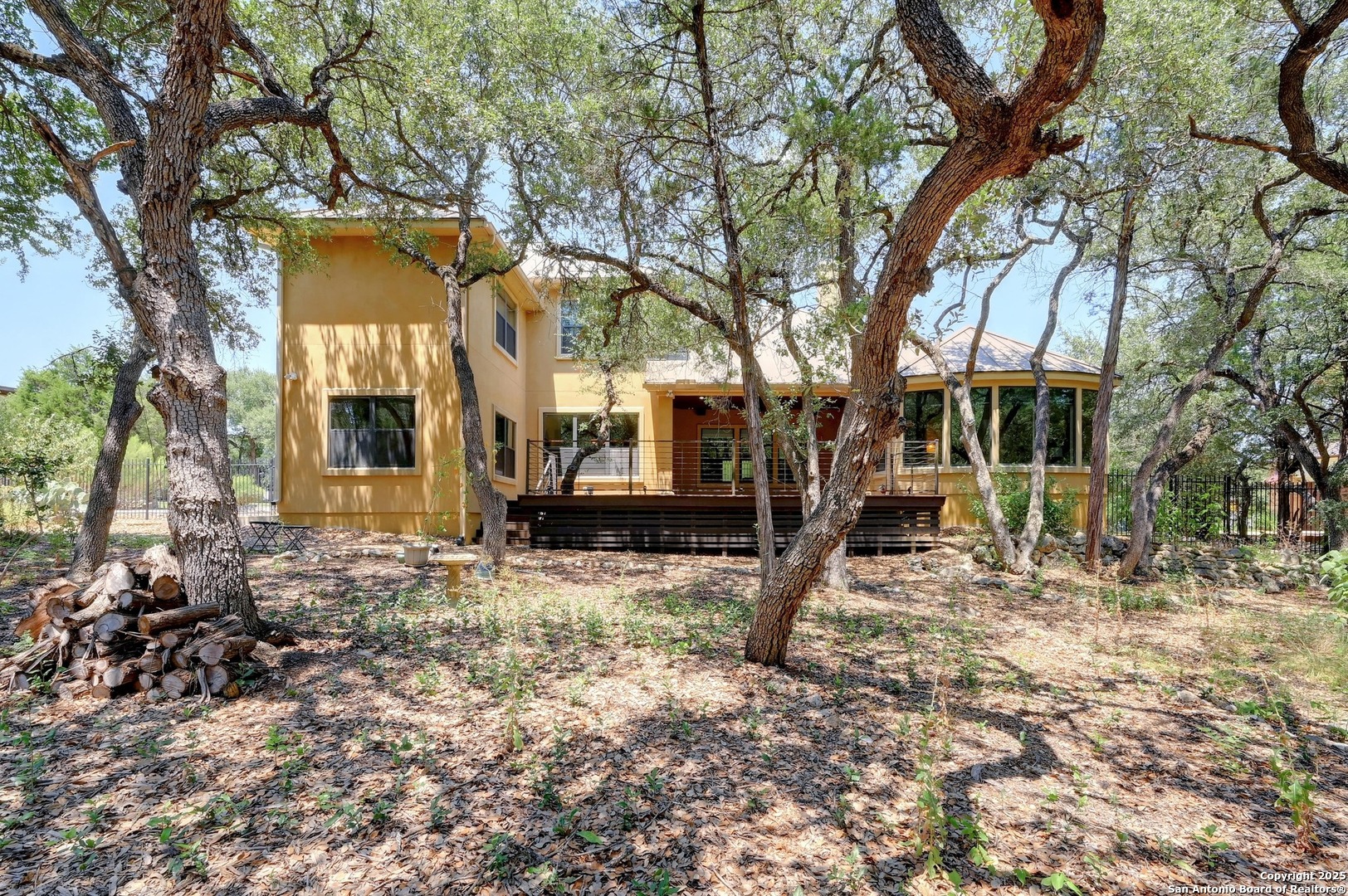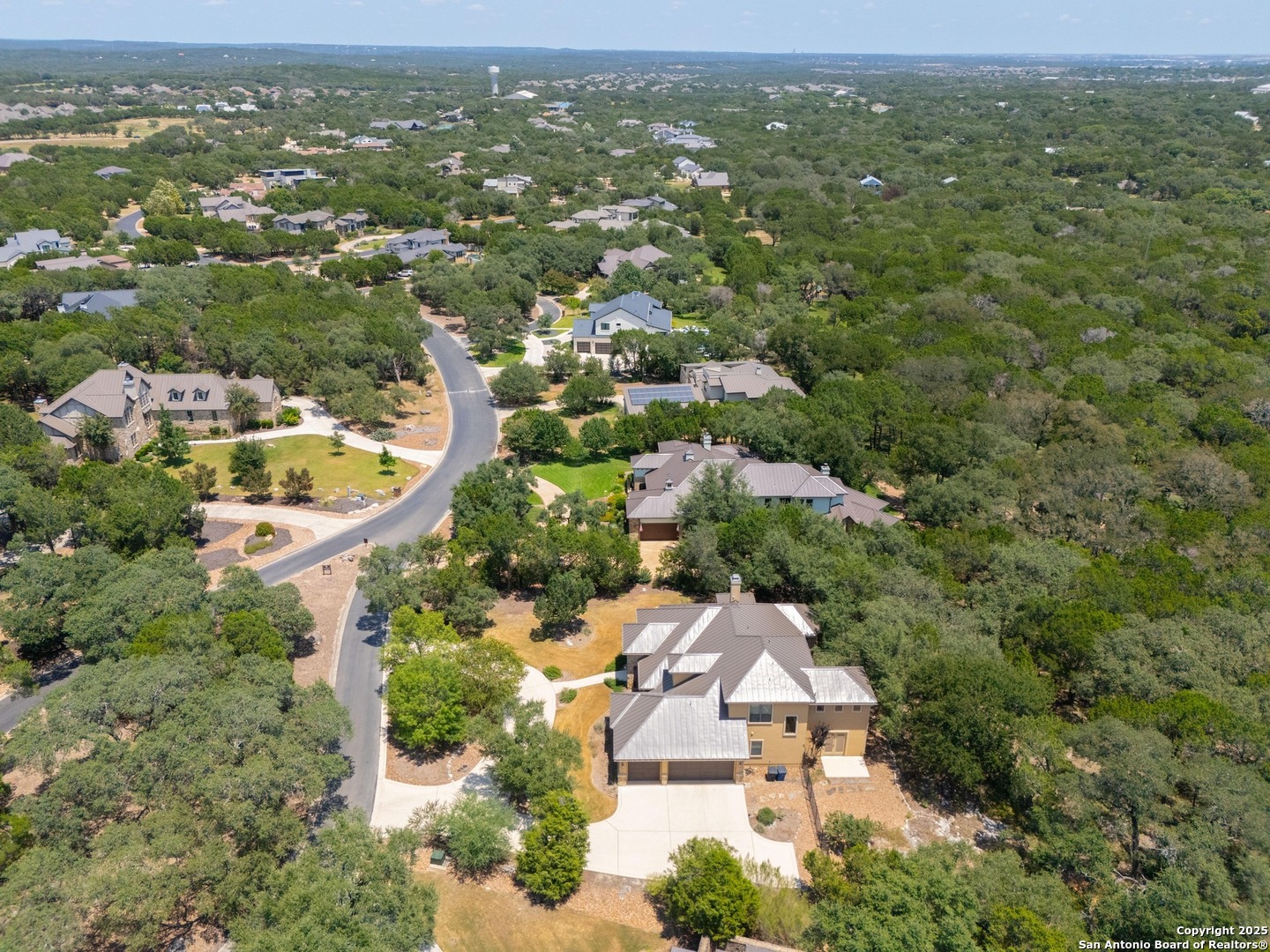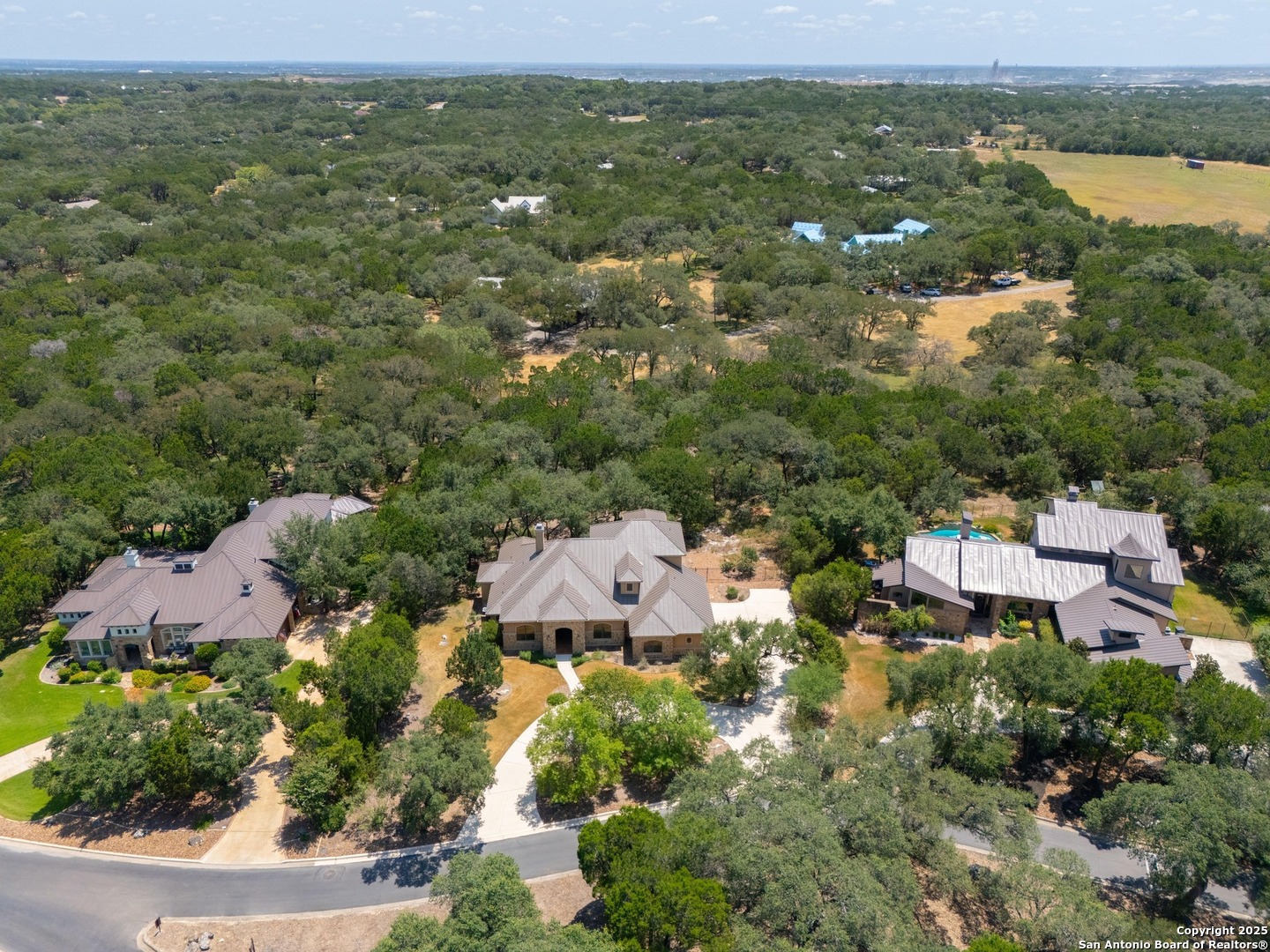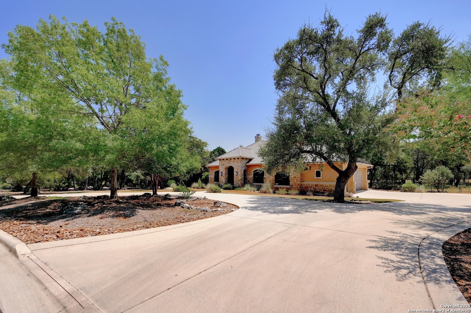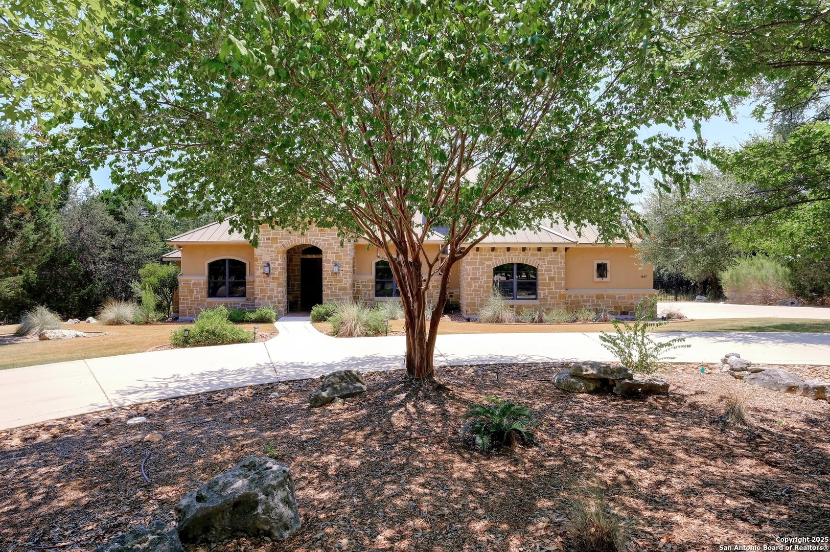 Nestled on a full acre of private, tree-studded land in a premier Hill Country community, this exceptional custom home offers the perfect balance of upscale comfort, scenic beauty, and proximity to some of Central Texas' most sought-after destinations-including New Braunfels, Canyon Lake, Spring Branch, and Bulverde. Step inside to discover a thoughtfully designed layout featuring 4 spacious bedrooms, 3.5 baths, a dedicated home office, formal dining room, versatile media room upstairs, and an additional flex space that can serve as a guest suite, second office, or hobby room. A generously sized workshop or fitness room-complete with storage, utility sink, and its own air conditioning-adds even more functionality to this well-appointed home. The heart of the home is a striking great room anchored by vaulted wood-beamed ceilings and a floor-to-ceiling stone fireplace (which is connected to a 500 gallon proprane gas tank which can also be connected to the outdoor patio grill so you never have to worry about an ice storm again) seamlessly flowing into a gourmet kitchen with an oversized center island, vegetable sink, bar seating, and abundant prep and storage space. Whether entertaining guests or enjoying a quiet evening, this open-concept layout offers comfort and elegance at every turn. Retreat to the primary suite and wake up to tranquil views of the surrounding natural landscape-a private oasis that feels like a luxury getaway. The ensuite bath and walk-in closet complete the space with spa-like ease. And talk about the serenity of the backyard! Fully fenced and surrounded by mature trees enjoy the sounds and scenery of nature. Located within a prestigious John Newcombe Country Club tennis resort and club community, recreational amenities and social opportunities are always within your reach. Yet, with an acre of space and Hill Country views surrounding you, peace and privacy remain the essence of everyday living. This is more than a home-it's a lifestyle. Embrace Hill Country living without compromise. Schedule your private showing today.