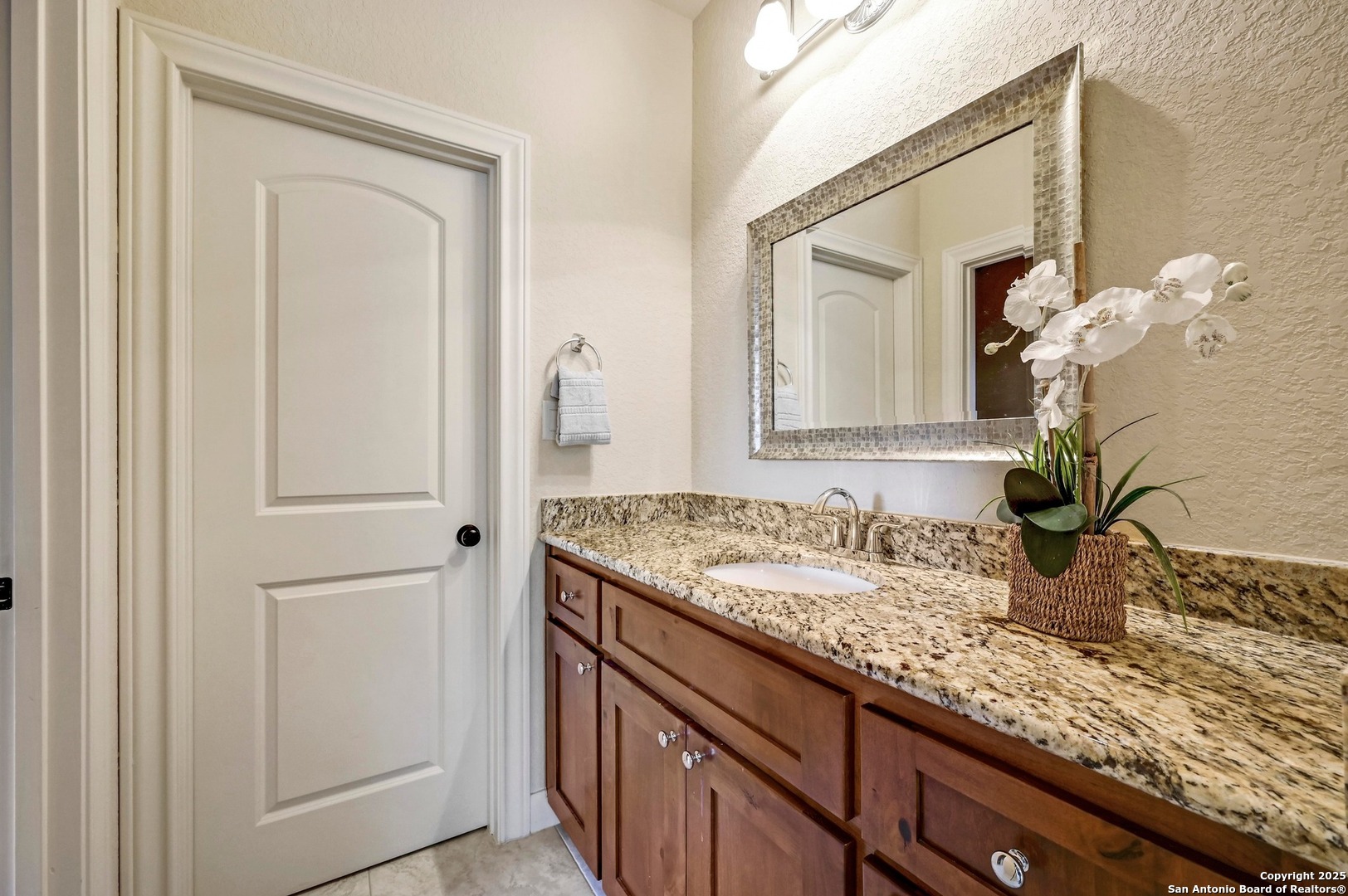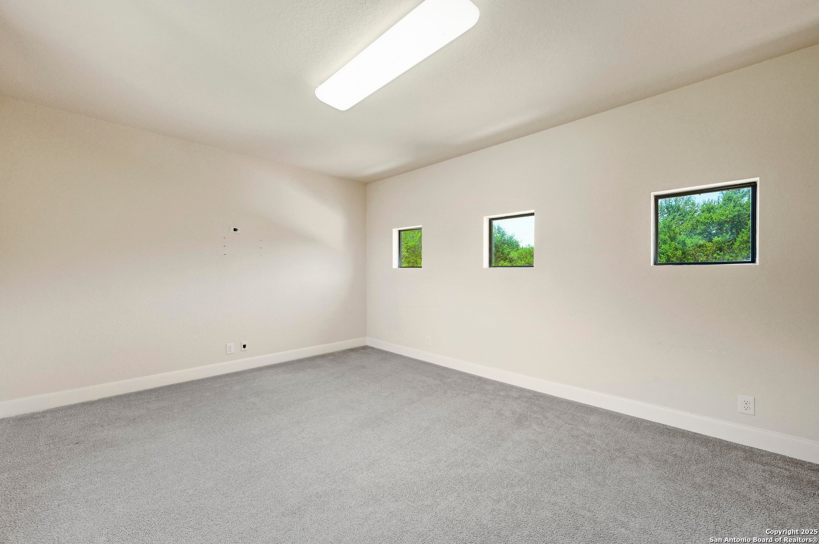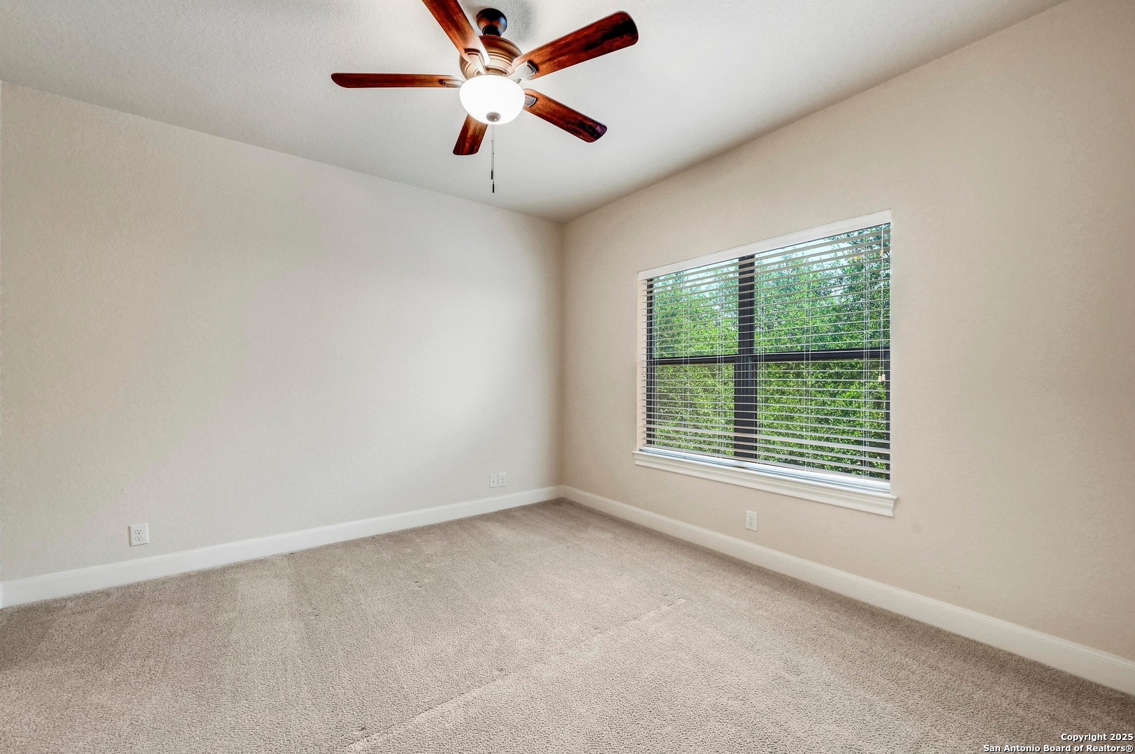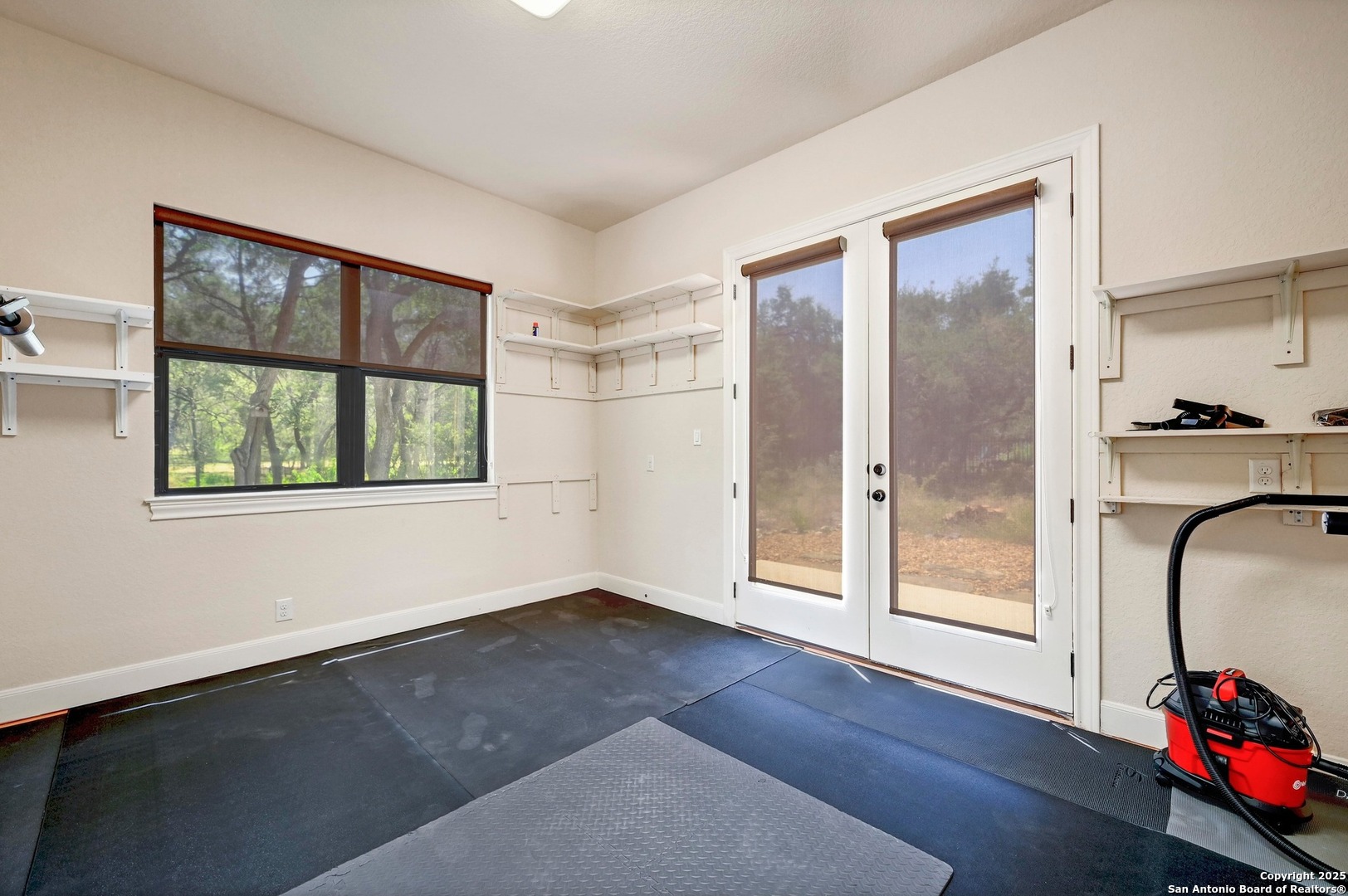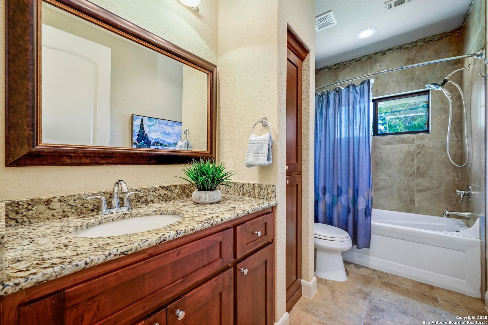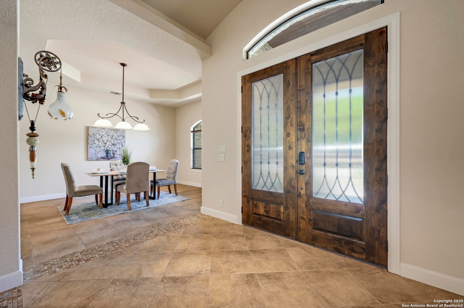 Nestled on a full acre of private, tree-studded land in a premier Hill Country community, this exceptional custom home offers the perfect balance of upscale comfort, scenic beauty, and proximity to some of Central Texas' most sought-after destinations-including New Braunfels, Canyon Lake, Spring Branch, and Bulverde. Step inside to discover a thoughtfully designed layout featuring 4 spacious bedrooms, 3.5 baths, a dedicated home office, formal dining room, versatile media room upstairs, and an additional flex space that can serve as a guest suite, second office, or hobby room. A generously sized workshop or fitness room-complete with storage, utility sink, and its own air conditioning-adds even more functionality to this well-appointed home. The heart of the home is a striking great room anchored by vaulted wood-beamed ceilings and a floor-to-ceiling stone fireplace (which is connected to a 500 gallon proprane gas tank which can also be connected to the outdoor patio grill so you never have to worry about an ice storm again) seamlessly flowing into a gourmet kitchen with an oversized center island, vegetable sink, bar seating, and abundant prep and storage space. Whether entertaining guests or enjoying a quiet evening, this open-concept layout offers comfort and elegance at every turn. Retreat to the primary suite and wake up to tranquil views of the surrounding natural landscape-a private oasis that feels like a luxury getaway. The ensuite bath and walk-in closet complete the space with spa-like ease. And talk about the serenity of the backyard! Fully fenced and surrounded by mature trees enjoy the sounds and scenery of nature. Located within a prestigious John Newcombe Country Club tennis resort and club community, recreational amenities and social opportunities are always within your reach. Yet, with an acre of space and Hill Country views surrounding you, peace and privacy remain the essence of everyday living. This is more than a home-it's a lifestyle. Embrace Hill Country living without compromise. Schedule your private showing today.