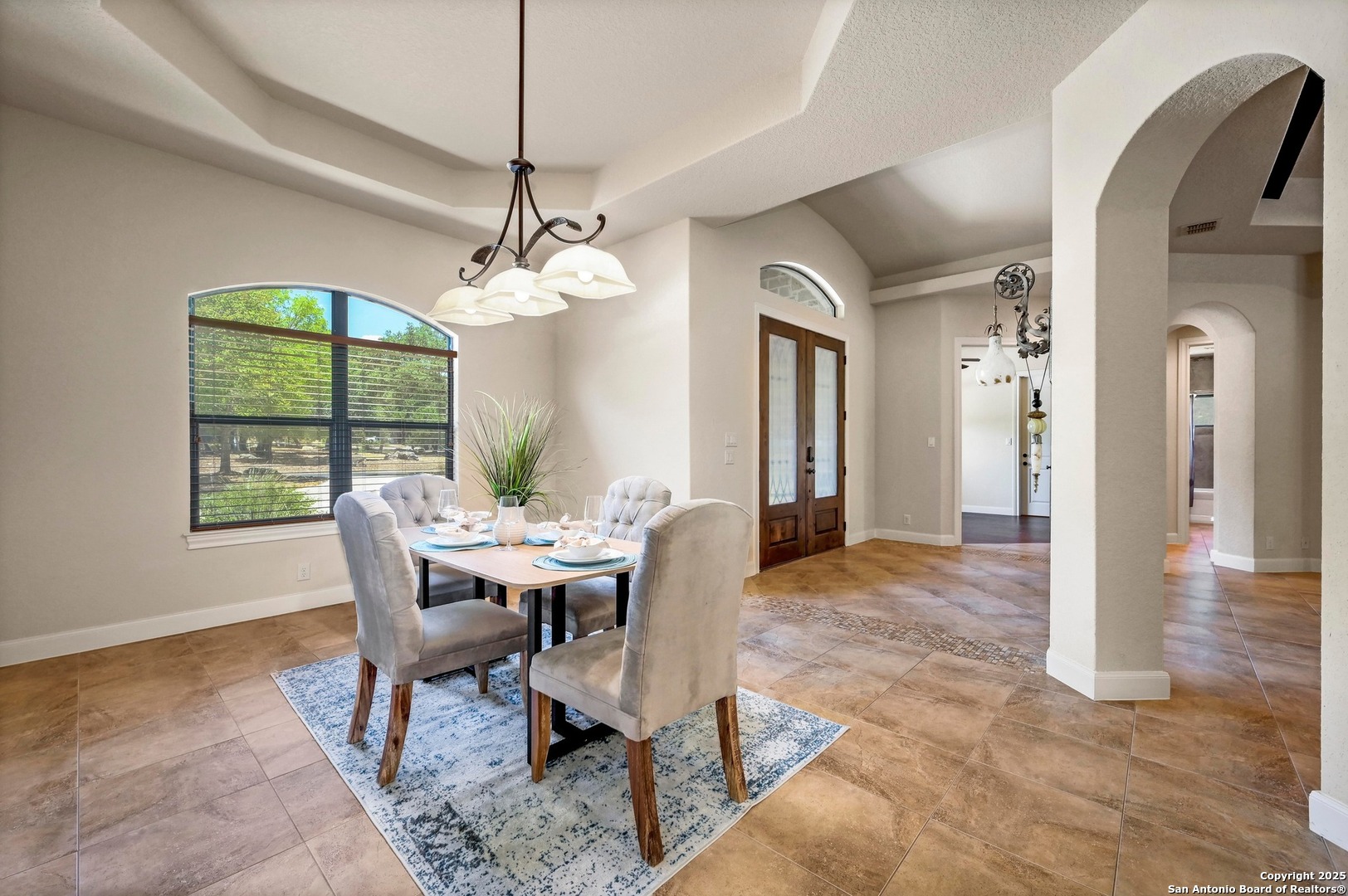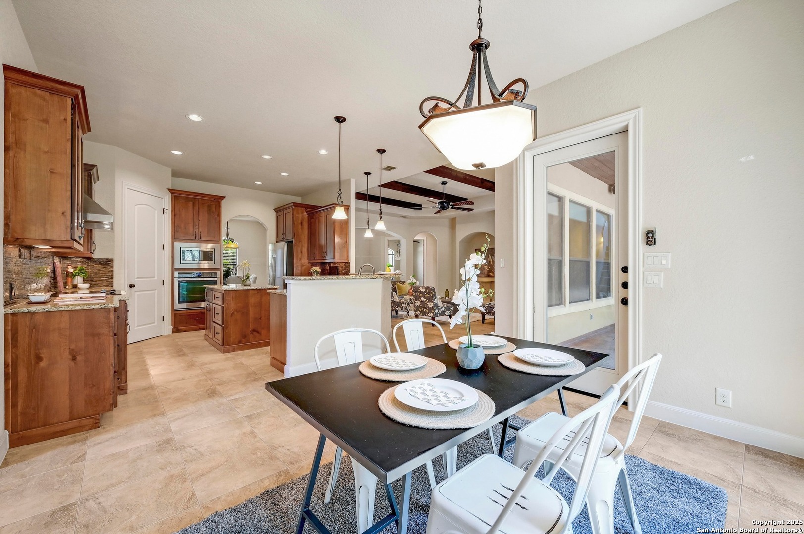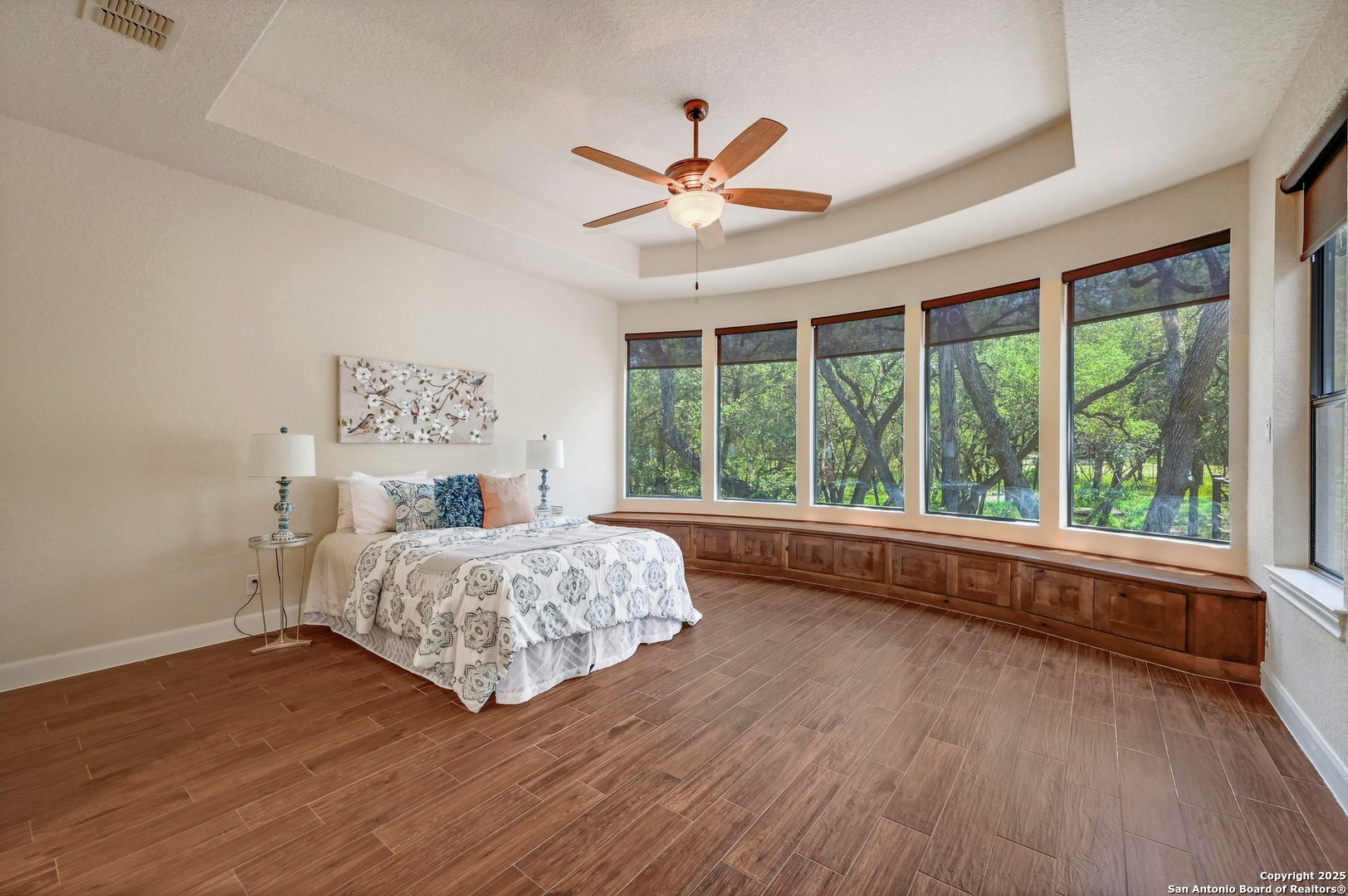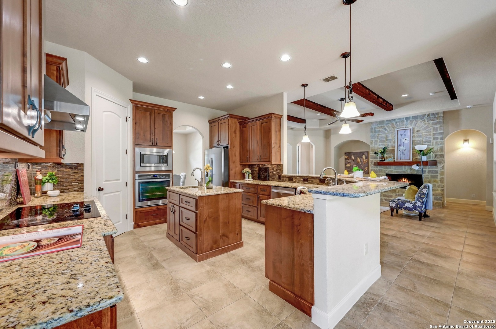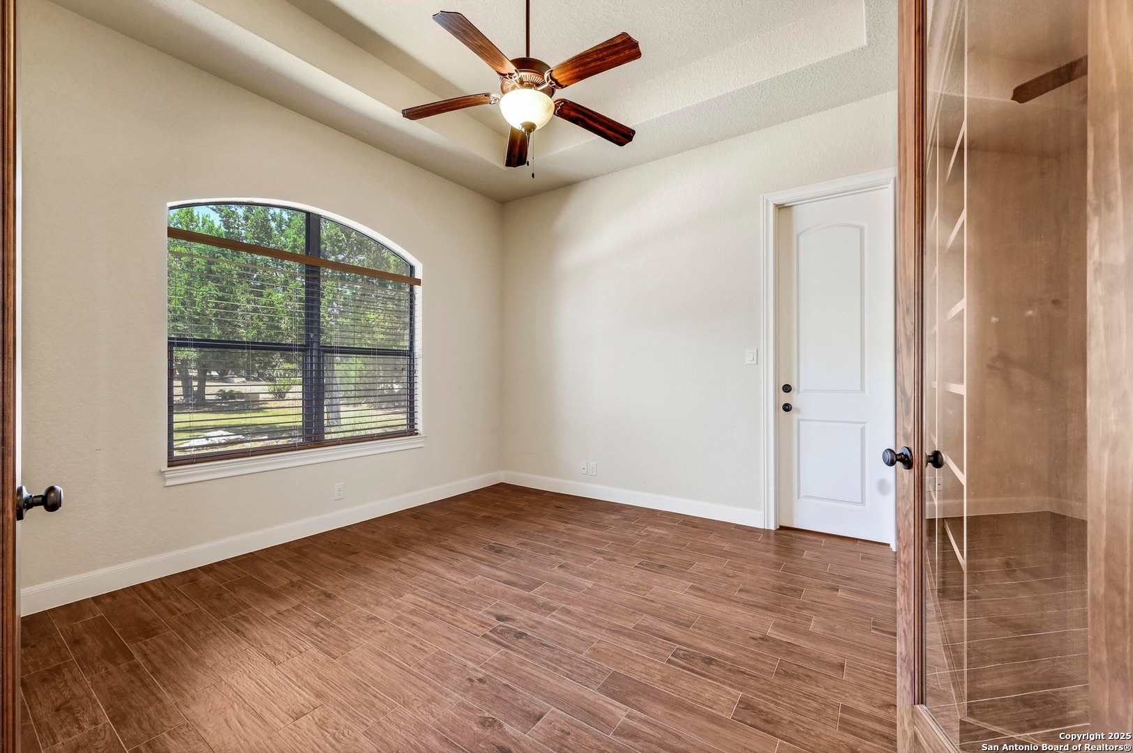 Nestled on a full acre of private, tree-studded land in a premier Hill Country community, this exceptional custom home offers the perfect balance of upscale comfort, scenic beauty, and proximity to some of Central Texas' most sought-after destinations-including New Braunfels, Canyon Lake, Spring Branch, and Bulverde. Step inside to discover a thoughtfully designed layout featuring 4 spacious bedrooms, 3.5 baths, a dedicated home office, formal dining room, versatile media room upstairs, and an additional flex space that can serve as a guest suite, second office, or hobby room. A generously sized workshop or fitness room-complete with storage, utility sink, and its own air conditioning-adds even more functionality to this well-appointed home. The heart of the home is a striking great room anchored by vaulted wood-beamed ceilings and a floor-to-ceiling stone fireplace (which is connected to a 500 gallon proprane gas tank which can also be connected to the outdoor patio grill so you never have to worry about an ice storm again) seamlessly flowing into a gourmet kitchen with an oversized center island, vegetable sink, bar seating, and abundant prep and storage space. Whether entertaining guests or enjoying a quiet evening, this open-concept layout offers comfort and elegance at every turn. Retreat to the primary suite and wake up to tranquil views of the surrounding natural landscape-a private oasis that feels like a luxury getaway. The ensuite bath and walk-in closet complete the space with spa-like ease. And talk about the serenity of the backyard! Fully fenced and surrounded by mature trees enjoy the sounds and scenery of nature. Located within a prestigious John Newcombe Country Club tennis resort and club community, recreational amenities and social opportunities are always within your reach. Yet, with an acre of space and Hill Country views surrounding you, peace and privacy remain the essence of everyday living. This is more than a home-it's a lifestyle. Embrace Hill Country living without compromise. Schedule your private showing today.