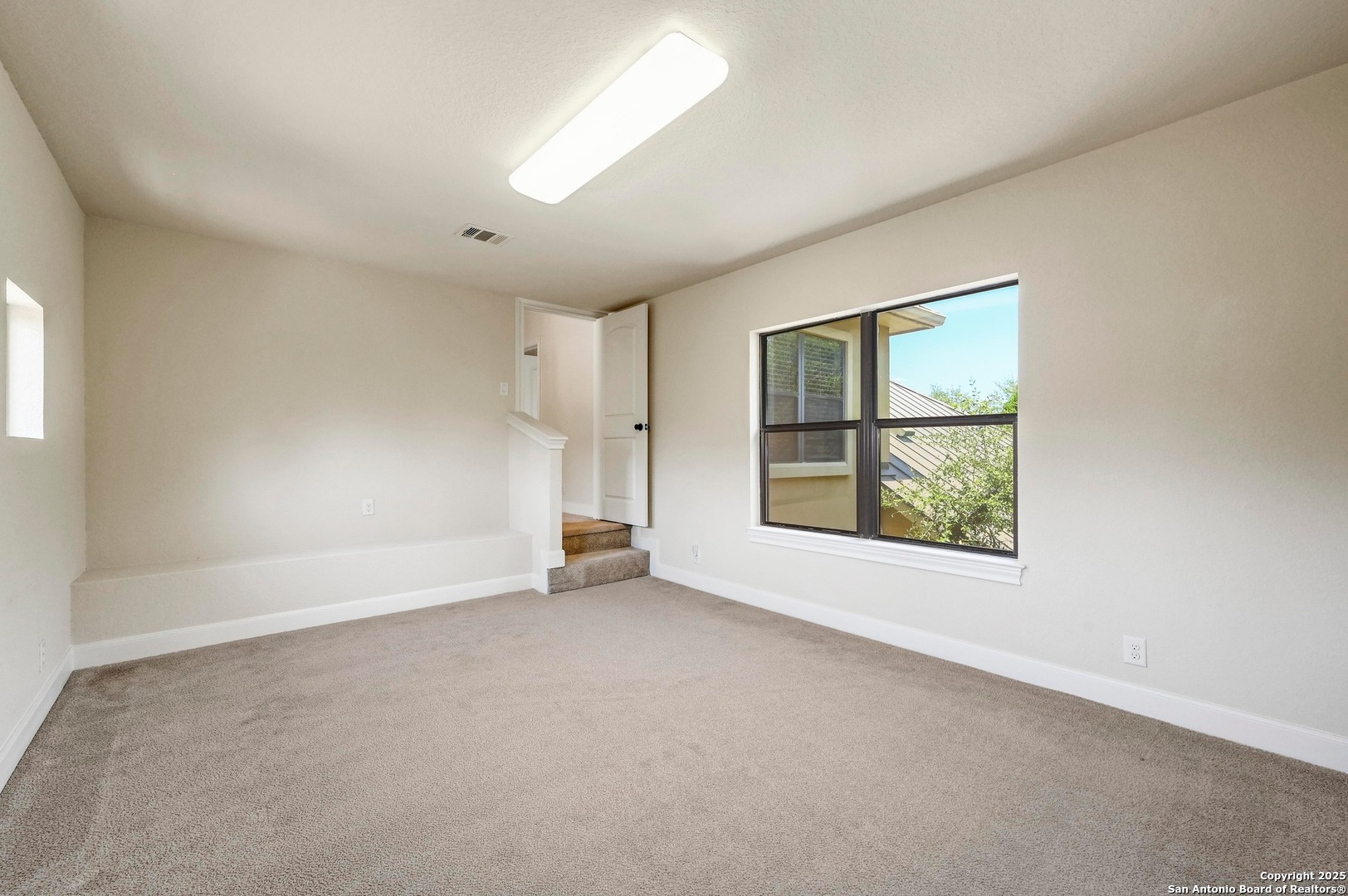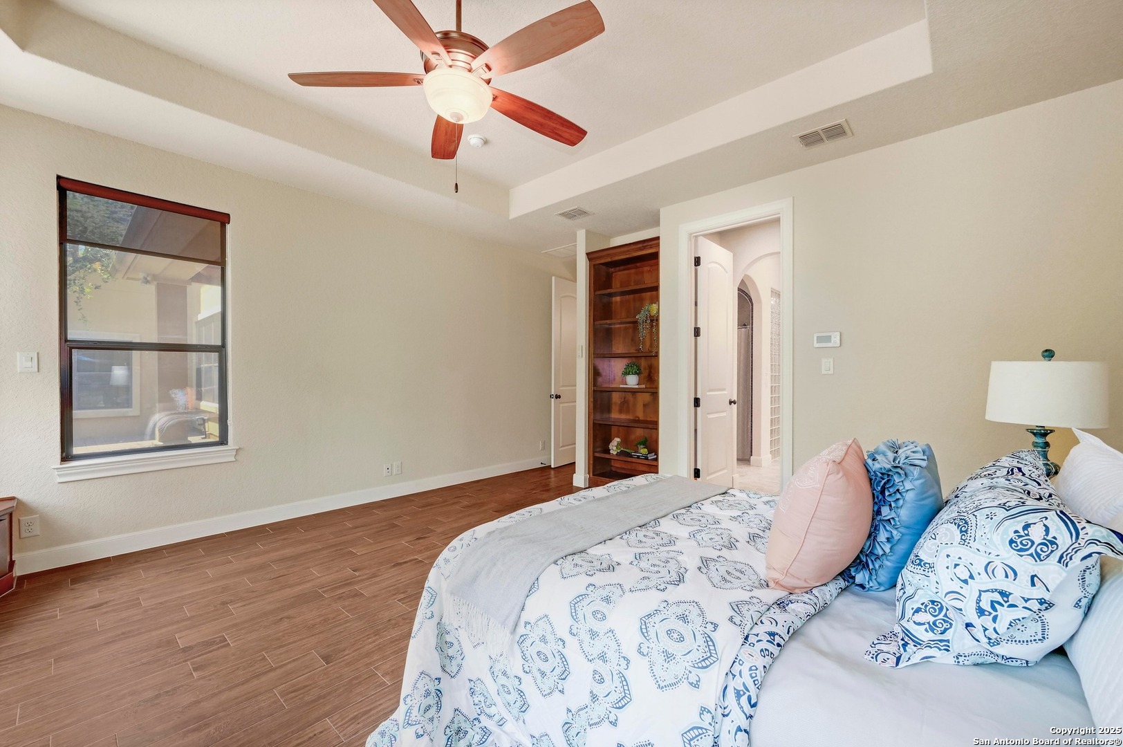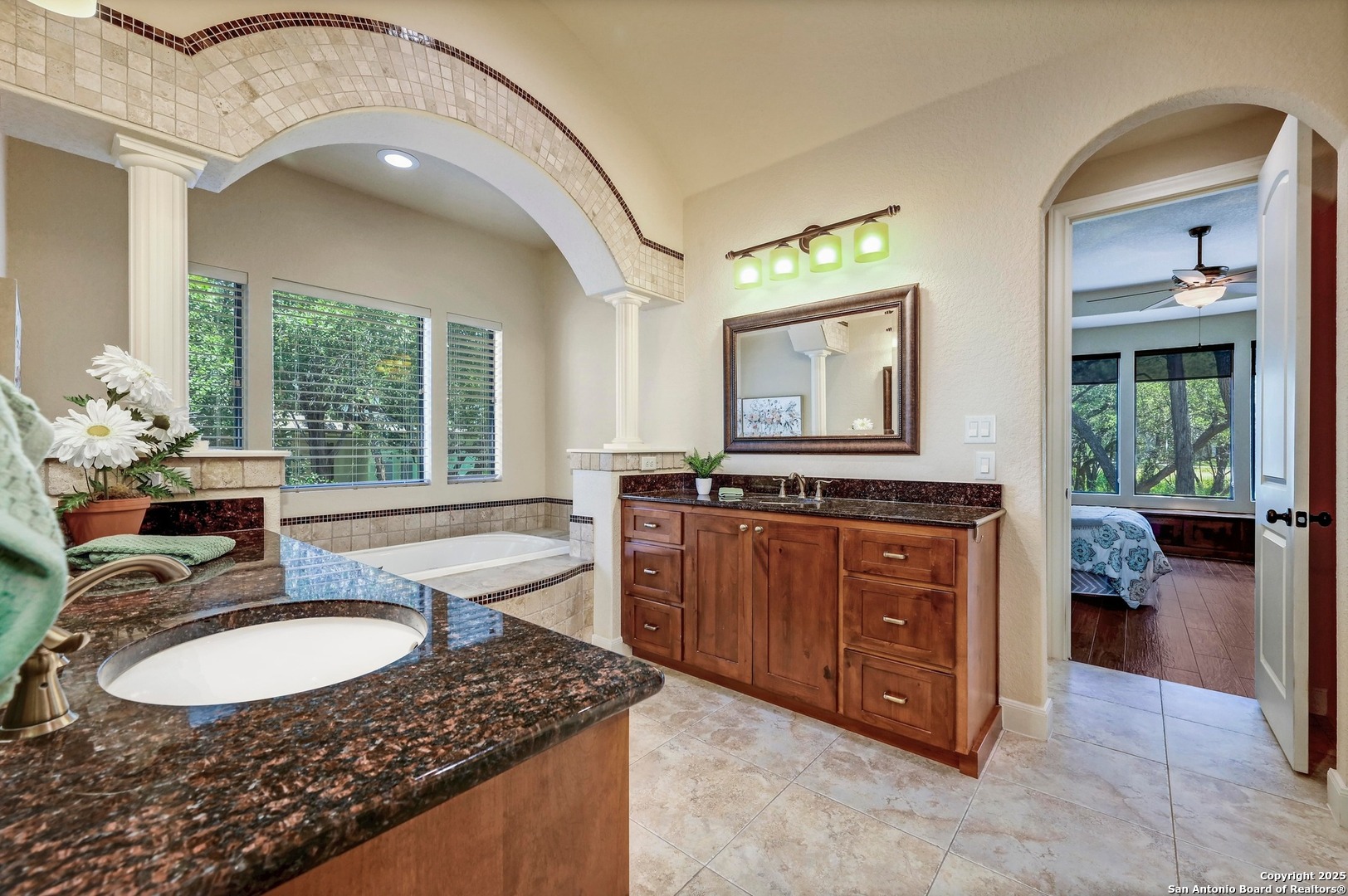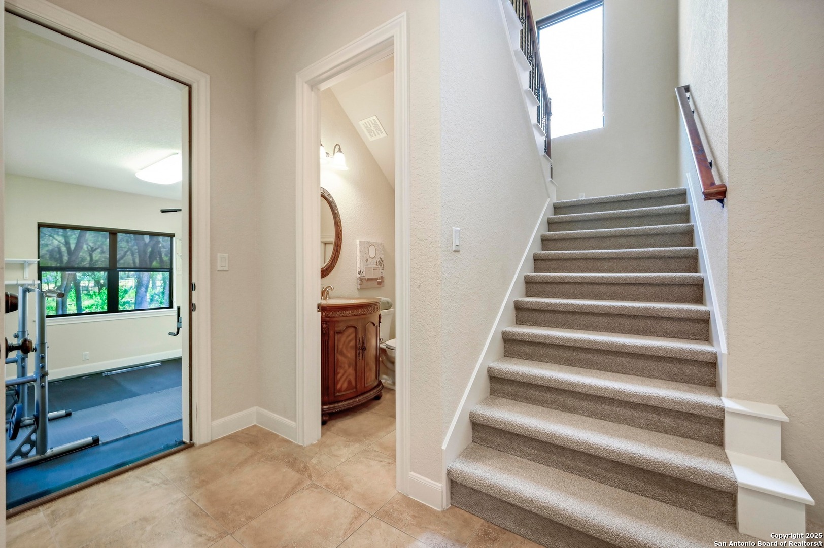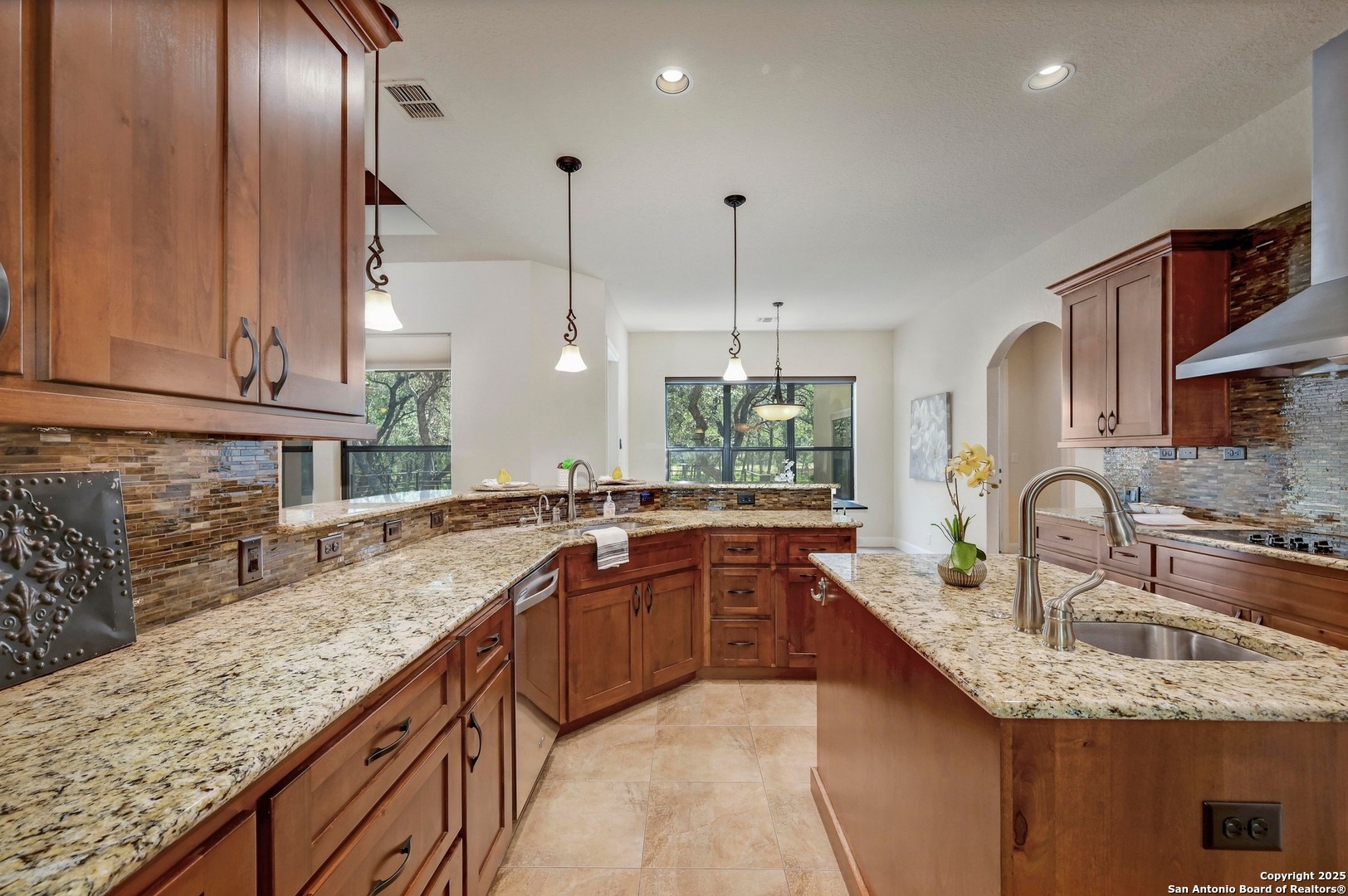 Nestled on a full acre of private, tree-studded land in a premier Hill Country community, this exceptional custom home offers the perfect balance of upscale comfort, scenic beauty, and proximity to some of Central Texas' most sought-after destinations-including New Braunfels, Canyon Lake, Spring Branch, and Bulverde. Step inside to discover a thoughtfully designed layout featuring 4 spacious bedrooms, 3.5 baths, a dedicated home office, formal dining room, versatile media room upstairs, and an additional flex space that can serve as a guest suite, second office, or hobby room. A generously sized workshop or fitness room-complete with storage, utility sink, and its own air conditioning-adds even more functionality to this well-appointed home. The heart of the home is a striking great room anchored by vaulted wood-beamed ceilings and a floor-to-ceiling stone fireplace (which is connected to a 500 gallon proprane gas tank which can also be connected to the outdoor patio grill so you never have to worry about an ice storm again) seamlessly flowing into a gourmet kitchen with an oversized center island, vegetable sink, bar seating, and abundant prep and storage space. Whether entertaining guests or enjoying a quiet evening, this open-concept layout offers comfort and elegance at every turn. Retreat to the primary suite and wake up to tranquil views of the surrounding natural landscape-a private oasis that feels like a luxury getaway. The ensuite bath and walk-in closet complete the space with spa-like ease. And talk about the serenity of the backyard! Fully fenced and surrounded by mature trees enjoy the sounds and scenery of nature. Located within a prestigious John Newcombe Country Club tennis resort and club community, recreational amenities and social opportunities are always within your reach. Yet, with an acre of space and Hill Country views surrounding you, peace and privacy remain the essence of everyday living. This is more than a home-it's a lifestyle. Embrace Hill Country living without compromise. Schedule your private showing today.