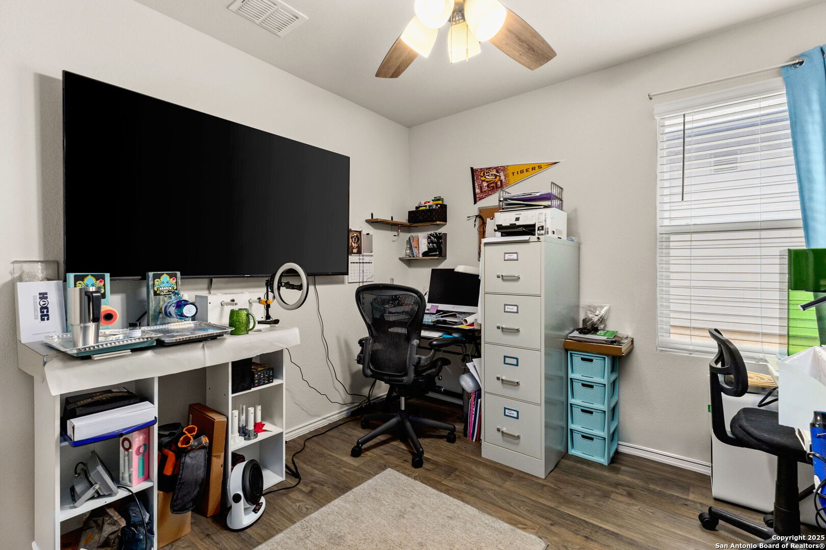 Loaded with Upgrades + Ready to Go! Brand-new 20x20 covered patio, 10x16 workshop/storage shed, TWO garage TVs + fridge stay, and pegboard walls already installed - this home is move-in ready and better than new! Built in 2022, this 4-bedroom, 2-bath beauty features an open, modern layout with stylish finishes and added ceiling fans throughout. The backyard is made for relaxing or entertaining, and everything's already done - no waiting on builders or upgrades. Located in a great community with a pool and park, this one offers comfort, convenience, and lifestyle in one package. Sellers are ready to move, and time is short - bring your offer!