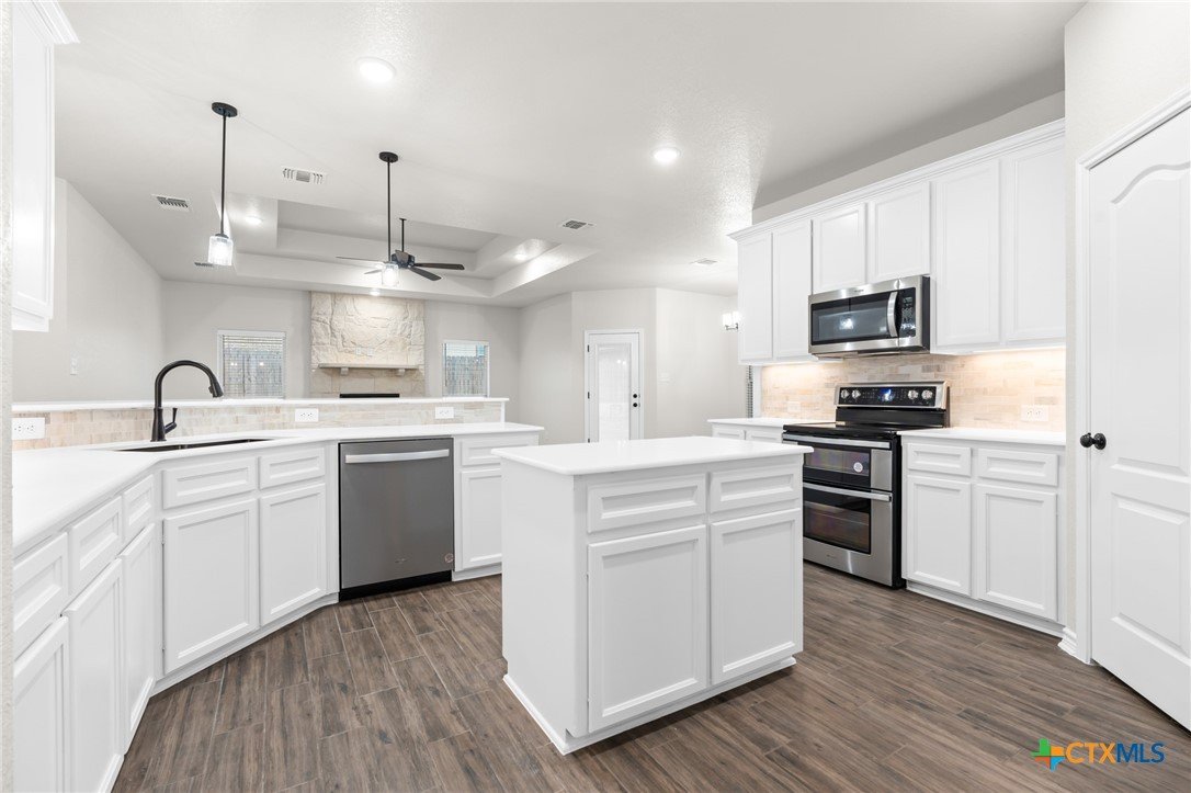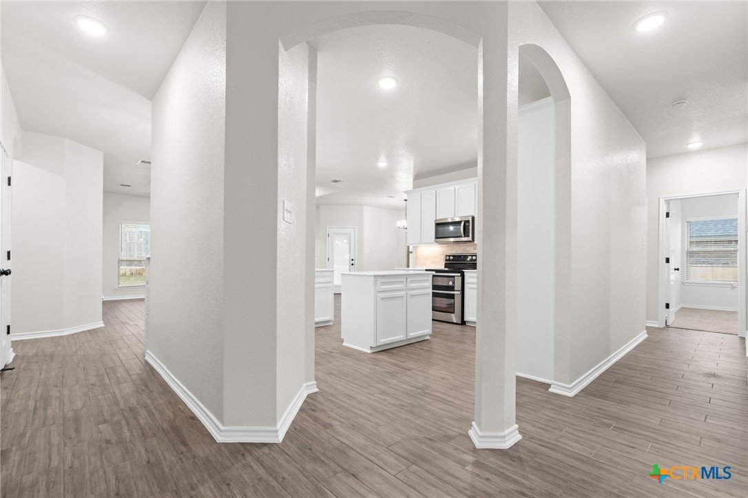 Experience unparalleled living and versatility with the Rio floorplan. This home boasts an array of premium features, including a gourmet kitchen equipped with granite countertops, tiled backsplash and upgraded appliances. The formal dining room is enhanced by French doors, creating an inviting atmosphere for an elevated dining experience, while the living room offers an ideal space for entertaining, featuring a beautiful fireplace, adding warmth and charm. The primary bedroom features a private bath with double vanities, a spacious walk-in shower, a garden tub, and a generous walk-in closet, creating a true retreat. An in-law suite with an adjacent bath complete with a walk-in shower, makes a wonderful retreat for guests. The additional two bedrooms are designed to provide comfort for everyone in your family. Additional features of this home, including a covered patio, privacy fence, front and back sod, and a sprinkler system, are standard with every Carothers Home.