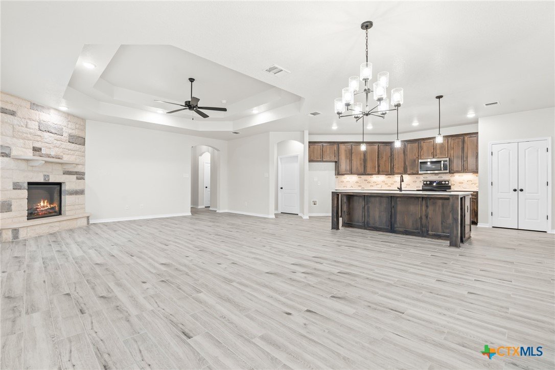 The Luxor plan by Carothers Homes offers spacious living at its best, with an open layout designed for both comfort and functionality. This floorplan flows seamlessly to connect the living, kitchen, and dining areas, creating the perfect space for entertaining and everyday living. The living room features a cozy corner fireplace, adding warmth and charm to the space. The kitchen is equipped with a large island featuring granite countertops. The tiled backsplash and stainless appliances complete the space. The primary bedroom is complemented by a generously sized private bathroom, featuring a walk-in closet, garden tub, walk-in shower, and dual vanities. The spacious in-law suite offers a private bath with a walk-in shower and closet. Two additional bedrooms provide ample space for the rest of the family. Additional features of this home, including a covered patio, privacy fence, front and back sod, and a sprinkler system, are standard with every Carothers Home