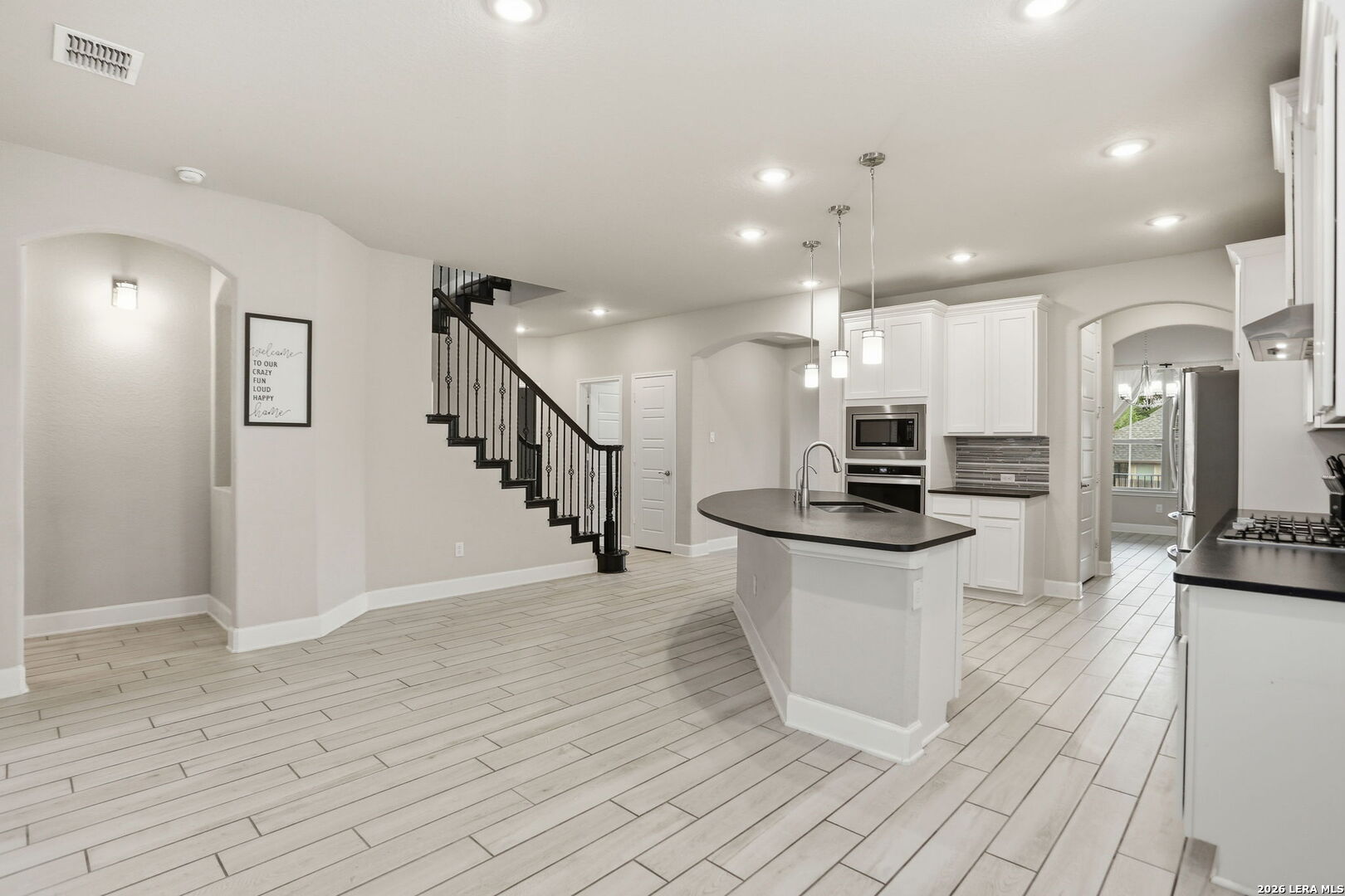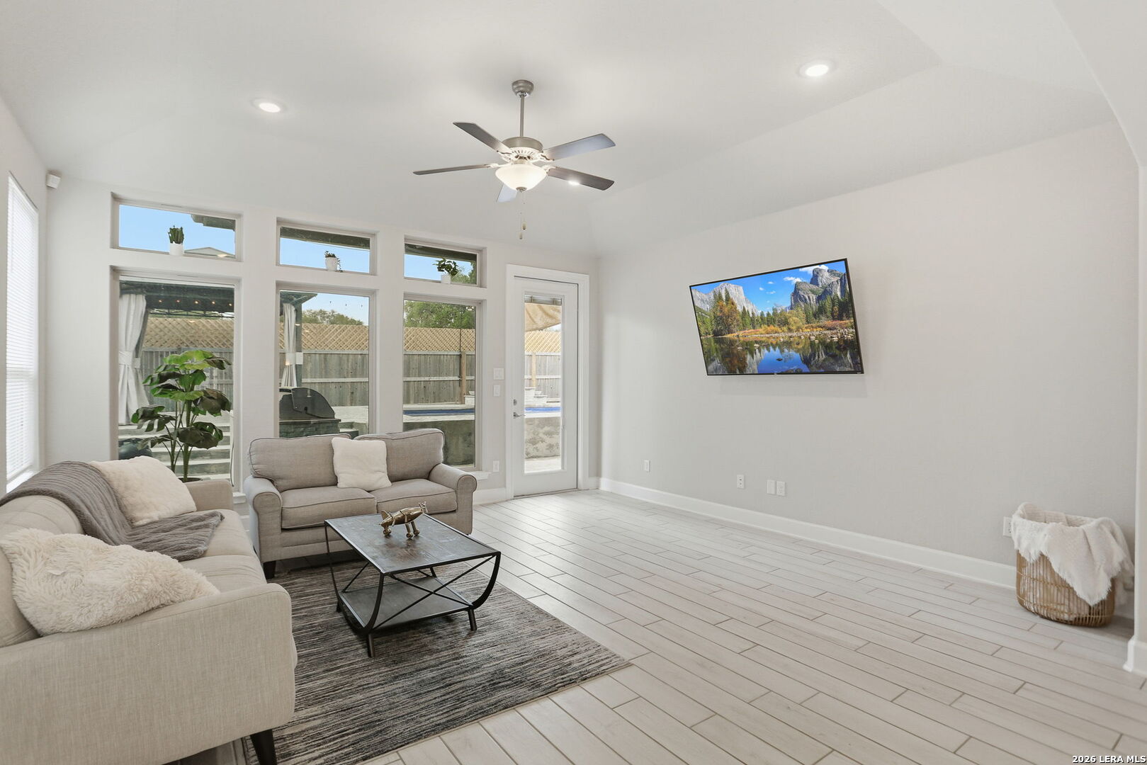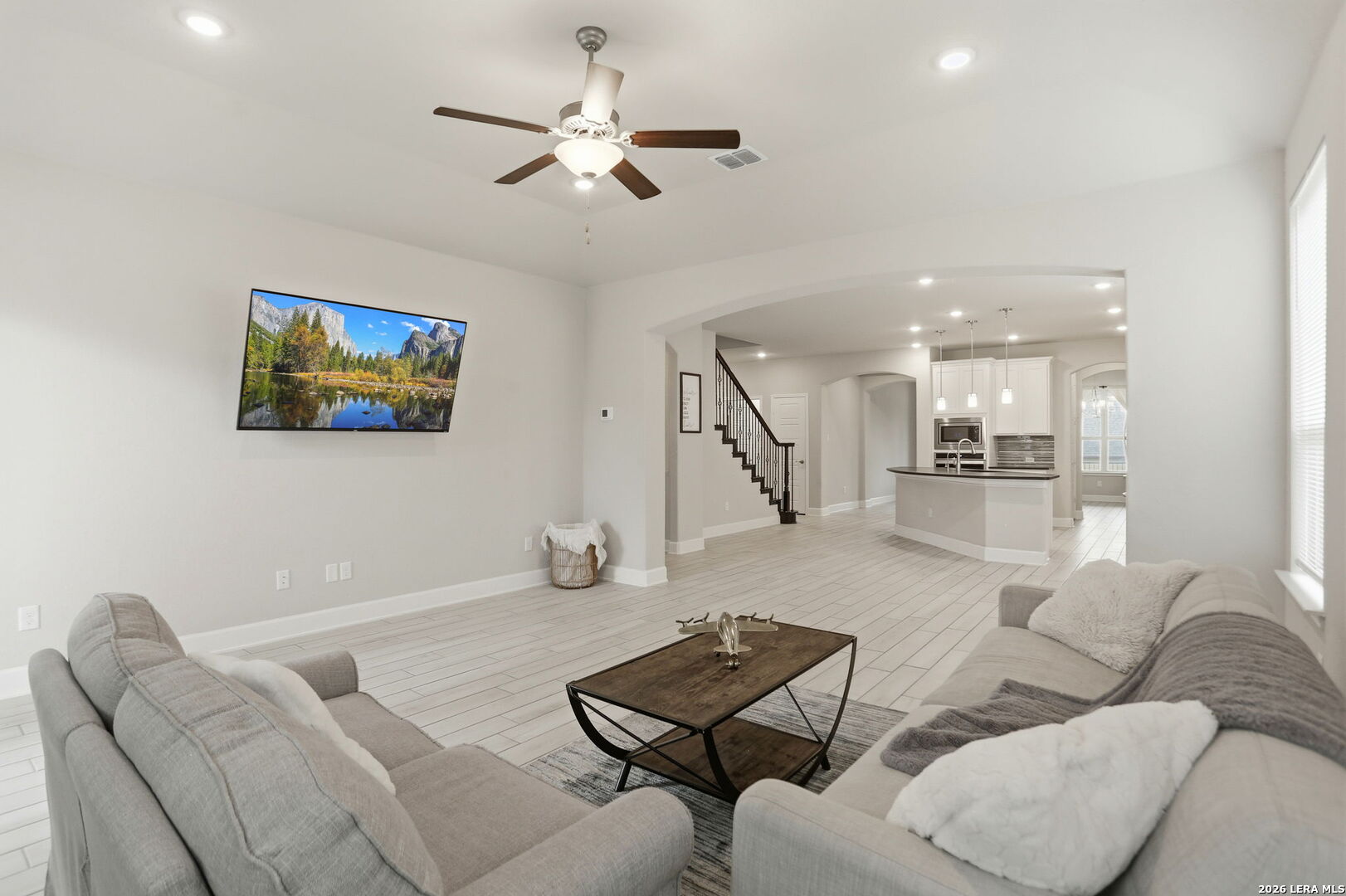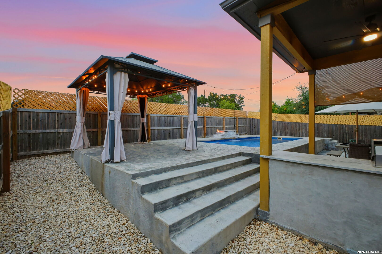 This stunning Texas Homes-built residence in the highly desirable Agave Trace neighborhood, offering an ideal blend of style, comfort, and functionality. This spacious 4-bedroom, 3-full-bath home features an open floor plan that accommodates modern living and entertaining, with a chef's kitchen equipped with stainless steel appliances, custom cabinetry, and designer finishes throughout. The thoughtful layout includes a convenient walkthrough butler's pantry, recessed lighting, and ceiling fans for added comfort. Outdoor living is exceptional with a beautifully landscaped backyard retreat complete with a pool highlighted by lighting and waterfalls, a gazebo, and a built-in outdoor kitchen - perfect for relaxation or hosting guests. With its welcoming front porch, extended driveway, and proximity to schools and amenities, this home offers both elegant living and everyday convenience in one perfect package.