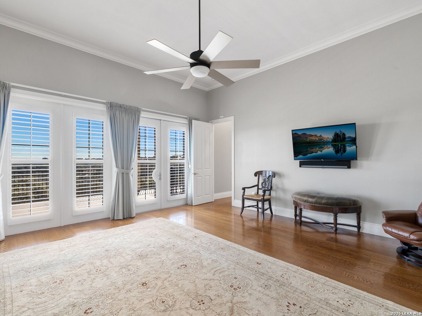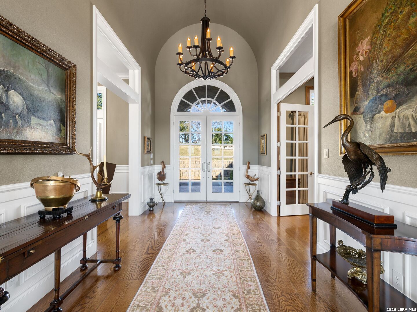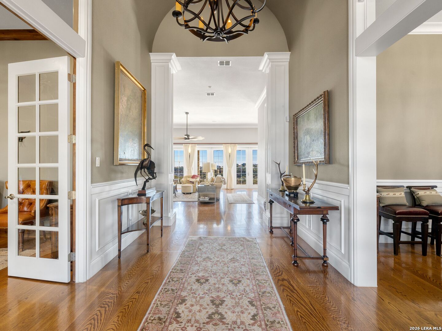 Set on .71 acres overlooking protected greenbelt and natural preserve, this Robare Custom Home offers elevated Hill Country living with a layout designed for both daily comfort and long-term flexibility. Walls of glass line the rear of the home, drawing natural light into the main living areas and framing expansive views across the surrounding landscape. Two covered balconies extend the interior outward, creating seamless indoor-outdoor flow and providing multiple vantage points to enjoy the setting. The main level is anchored by the primary suite and a secondary guest bedroom, allowing for true single-level living without interior steps. Below, the home unfolds into a well-designed Texas basement featuring a spacious game room, dedicated media or theatre room, two additional guest suites, a full bath, and laundry. This level opens directly to a covered patio finished with a wood-paneled ceiling, while a sculptural spiral staircase connects both outdoor living levels. Thoughtful architectural details include gas cooking, crown molding accents, audio, and a floor plan that balances openness with separation. The home's elevated positioning creates privacy while maintaining wide-open sightlines across the preserve beyond. Recent improvements enhance functionality and accessibility while preserving the integrity of the original design, offering a residence that is equally suited for full-time living or refined entertaining in a private Hill Country setting.