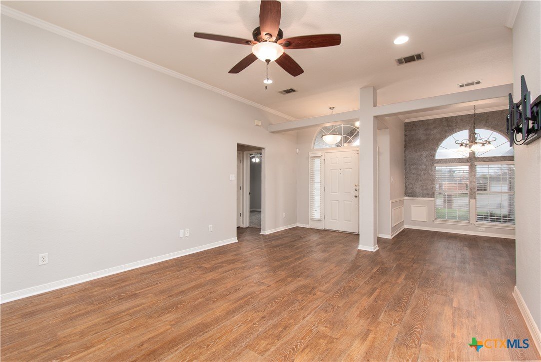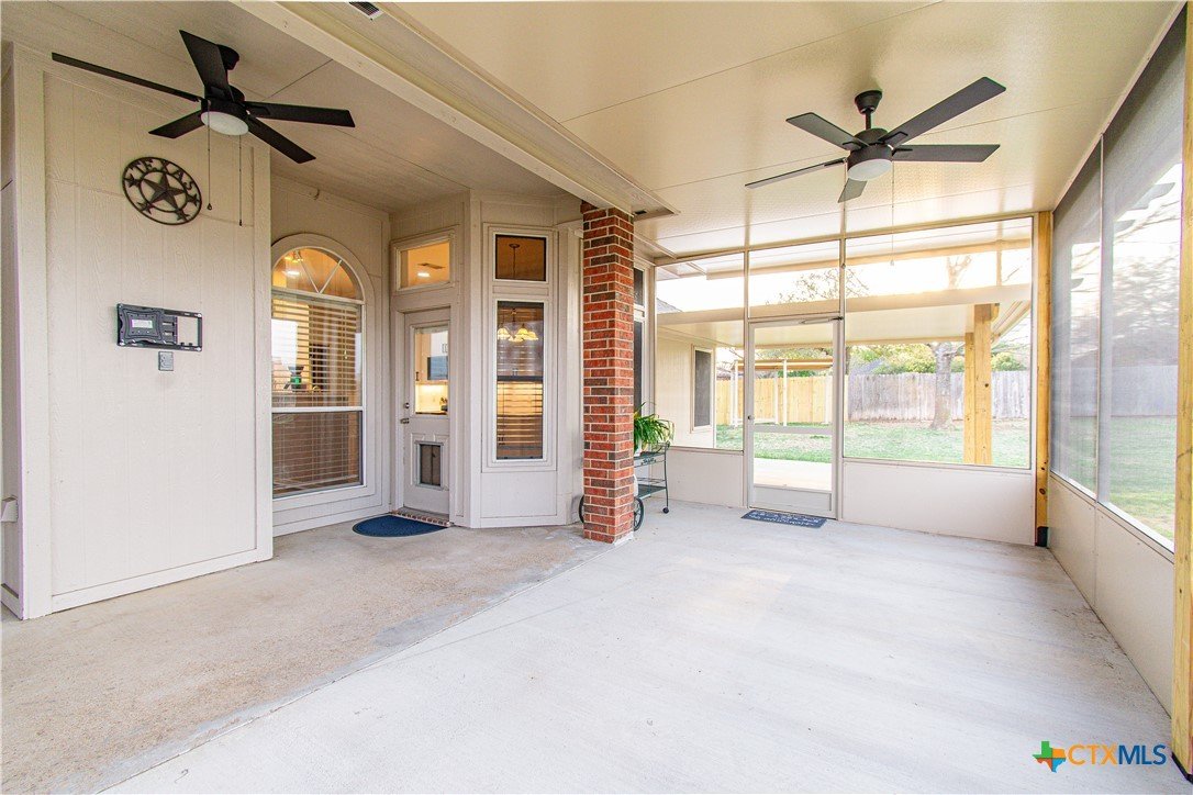 Tucked at the end of a quiet cul-de-sac, this beautifully updated home blends comfort with standout upgrades. Inside you’ll find fresh paint, accent walls, crown molding, new carpet, and commercial-grade luxury vinyl flooring throughout the main areas. The spacious living room features high ceilings and an electric fireplace, while the updated kitchen shines with quartz countertops, tiled backsplash, refreshed cabinetry, and newer appliances including a microwave (2023) and electric range (2025). A formal dining room adds the perfect space for gatherings. Outdoor living is a highlight with a large screened porch (approx. 380 sq ft) and a total covered back patio space of roughly 650 sq ft, plus a pergola overlooking the private backyard enclosed by brick and wood fencing. Additional improvements include a new A/C in 2023 and a third driveway for extra parking.