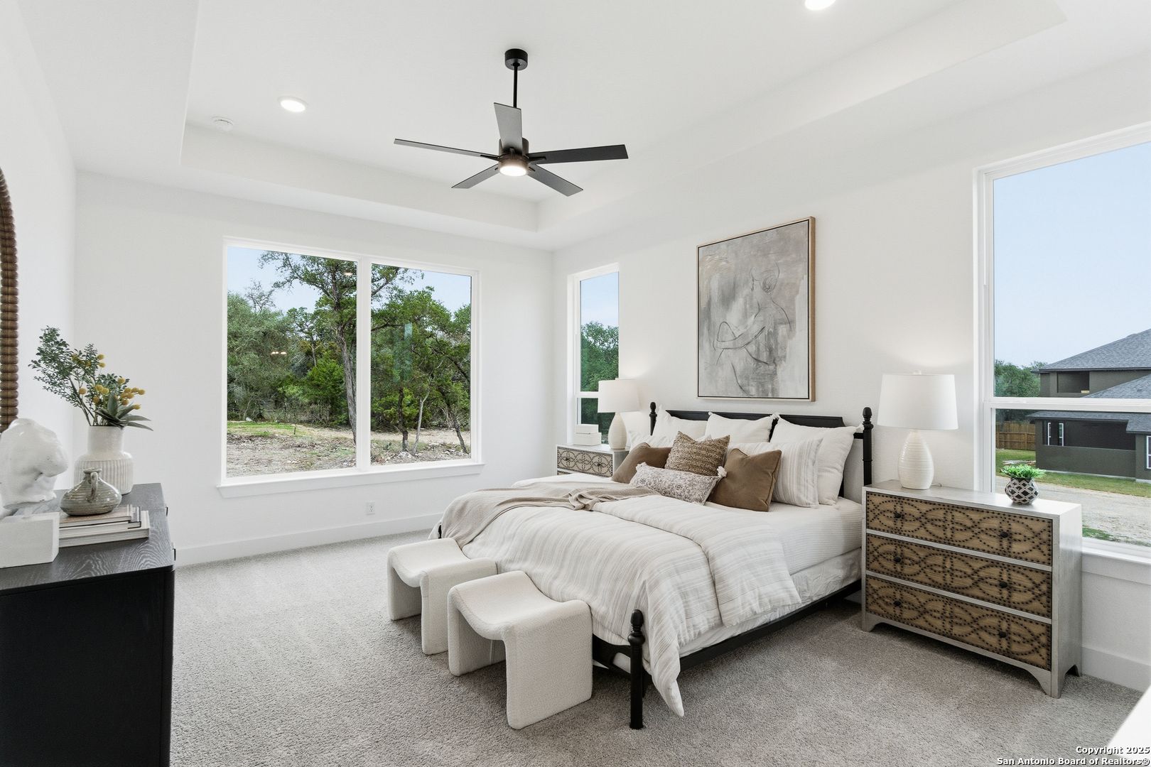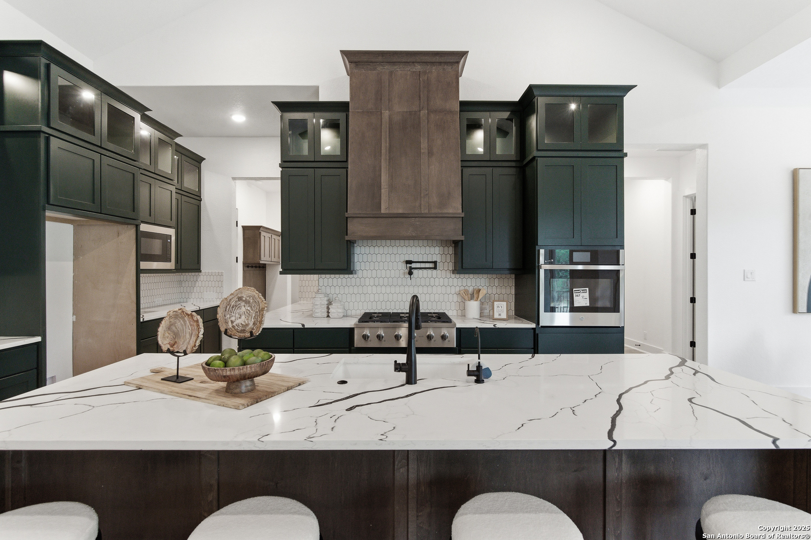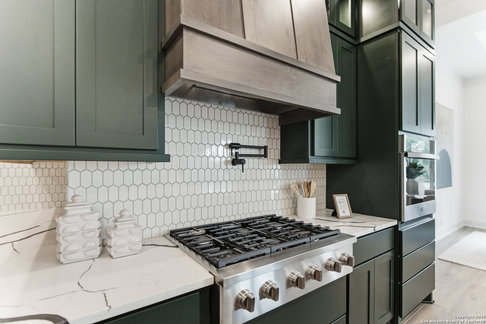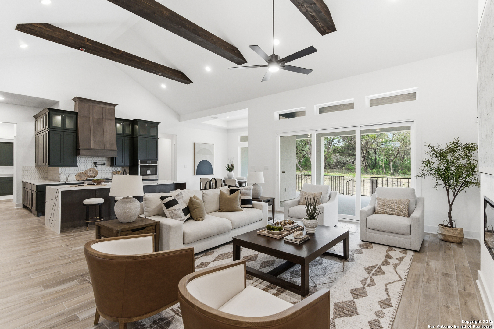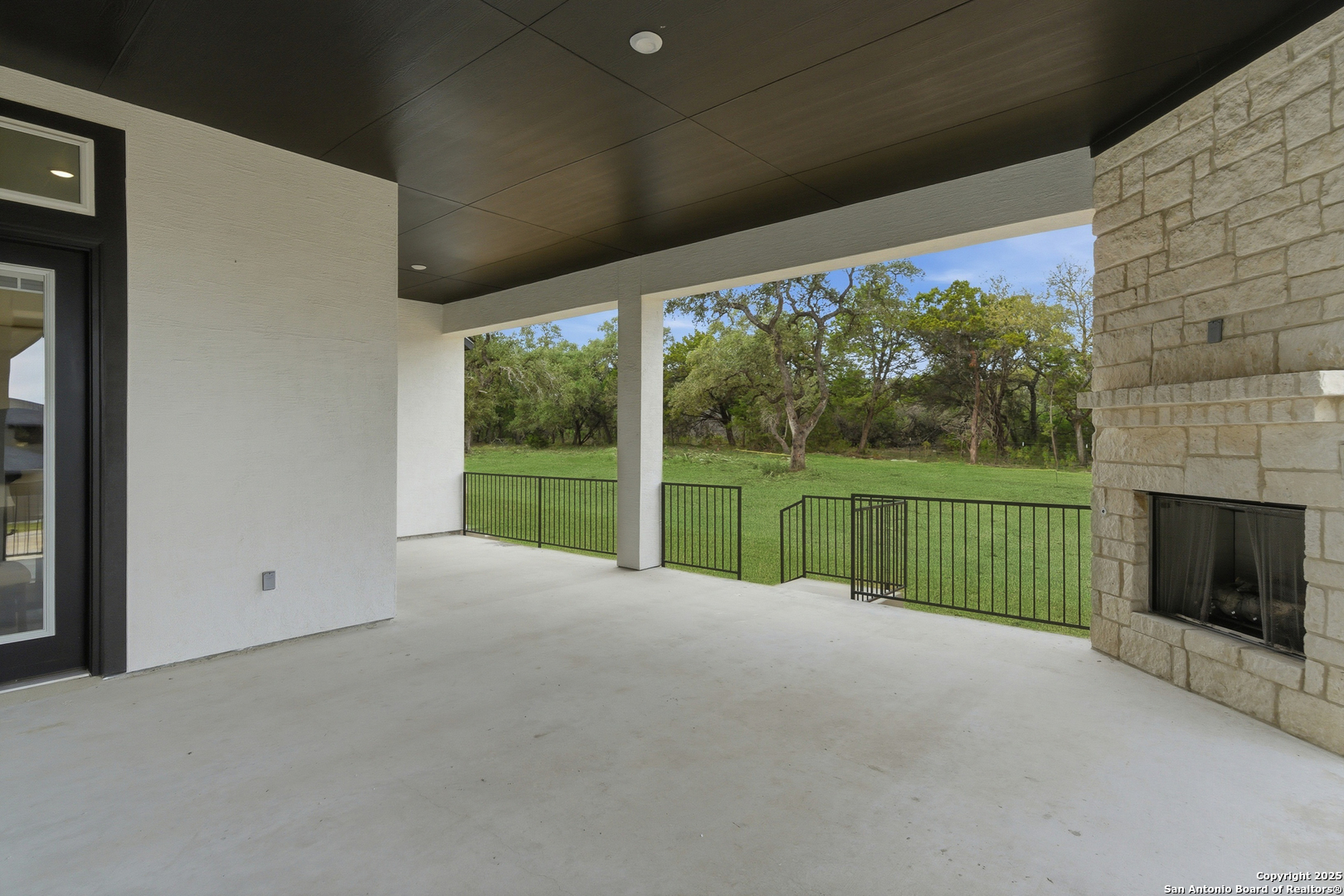 Move in Ready! Beautiful one story 3239 sq. ft. home with 4 bedrooms, 3 1/2 baths, study, game room and a 3-car garage on a 1/2-acre lot all nestled in a beautiful, wooded neighborhood right outside of Garden Ridge, TX. Walk in through the beautiful double front doors into this open floor plan with a fabulous kitchen with an oversized kitchen island with omega stone countertops with apron sides and Silgranit Diamond super single white bowl sink. The kitchen also features stacked cabinets with glass inserts and puck lighting. Enjoy cooking on your cafe 6 burner cooktop and an added pot filler. This home stands out with wooden shutters across the front featuring 4.5" louvers and clear line hidden tilt function. The large family room features suspended cedar beams, oversized sliding glass doors and a 60" Allusion Platinum fireplace. Enjoy your spacious outdoor living with 42" gas fireplace.