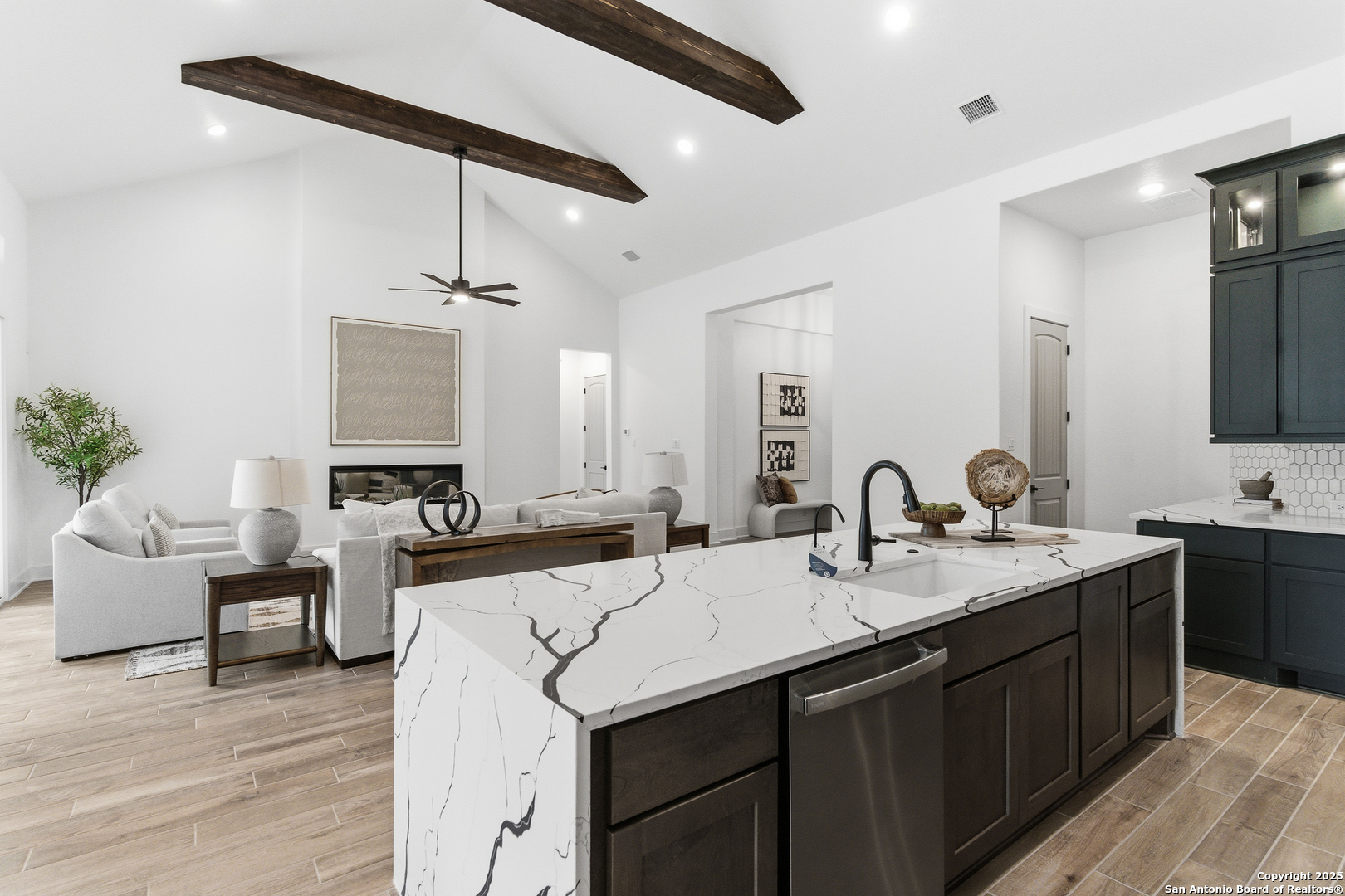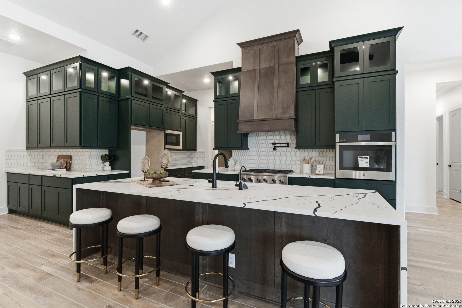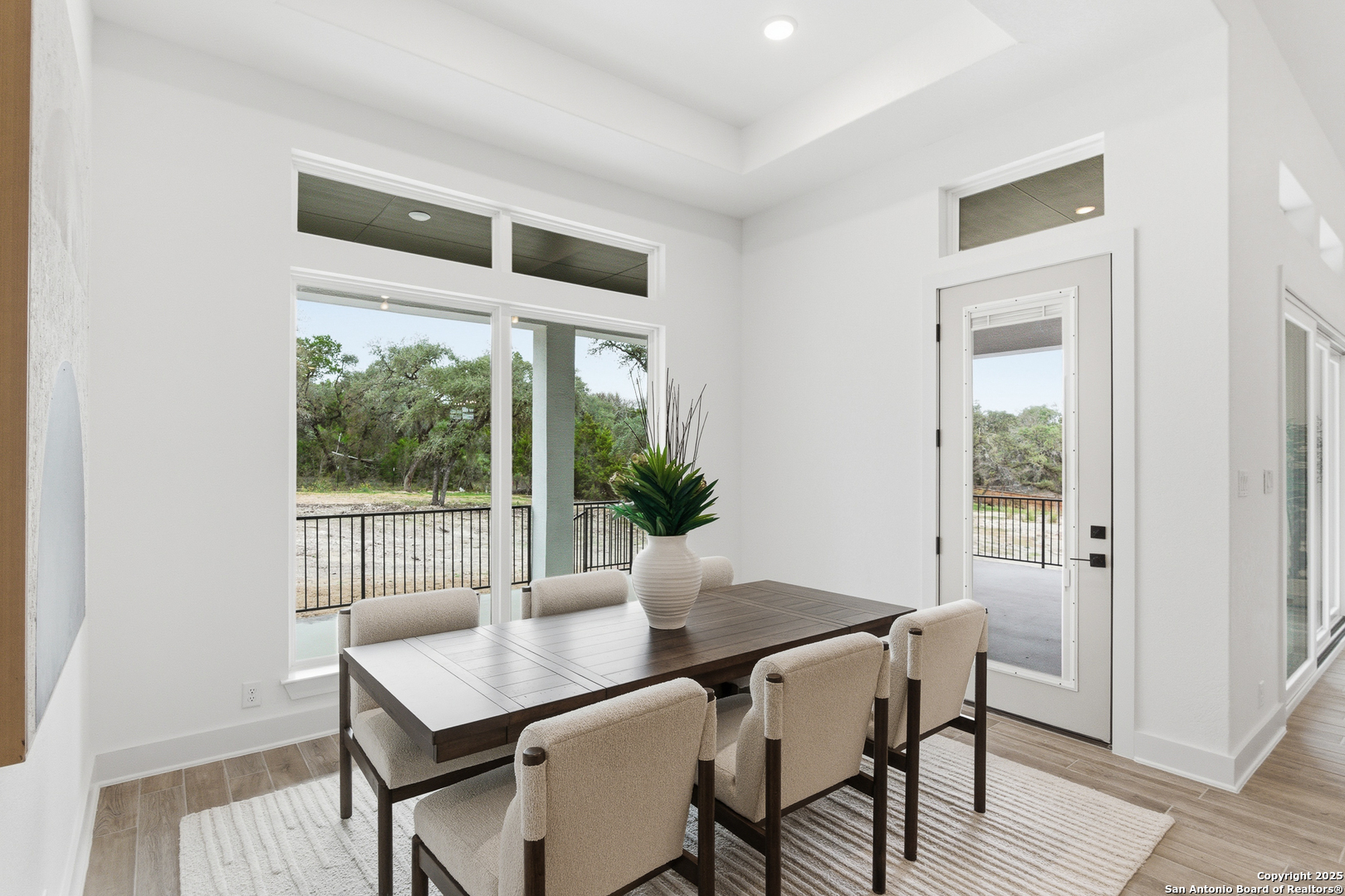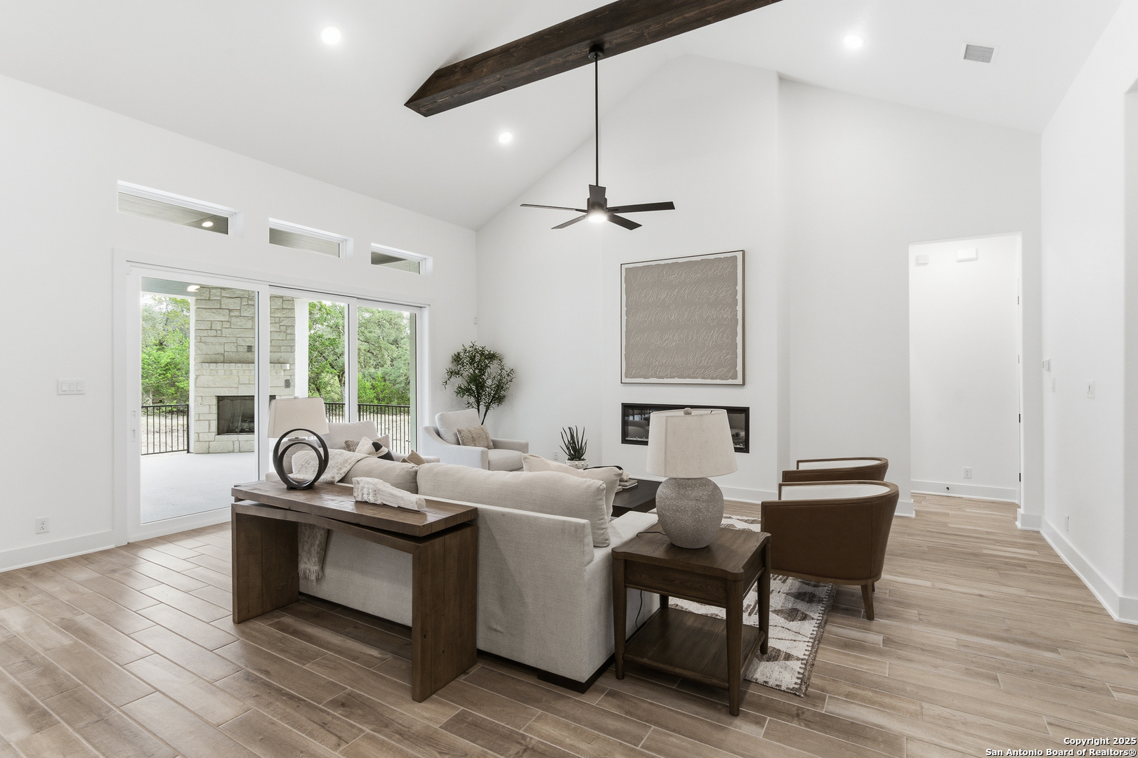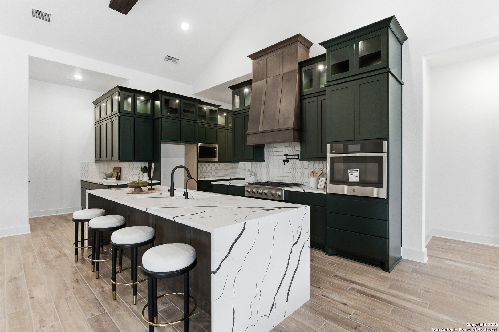Move in Ready! Beautiful one story 3239 sq. ft. home with 4 bedrooms, 3 1/2 baths, study, game room and a 3-car garage on a 1/2-acre lot all nestled in a beautiful, wooded neighborhood right outside of Garden Ridge, TX. Walk in through the beautiful double front doors into this open floor plan with a fabulous kitchen with an oversized kitchen island with omega stone countertops with apron sides and Silgranit Diamond super single white bowl sink. The kitchen also features stacked cabinets with glass inserts and puck lighting. Enjoy cooking on your cafe 6 burner cooktop and an added pot filler. This home stands out with wooden shutters across the front featuring 4.5" louvers and clear line hidden tilt function. The large family room features suspended cedar beams, oversized sliding glass doors and a 60" Allusion Platinum fireplace. Enjoy your spacious outdoor living with 42" gas fireplace.