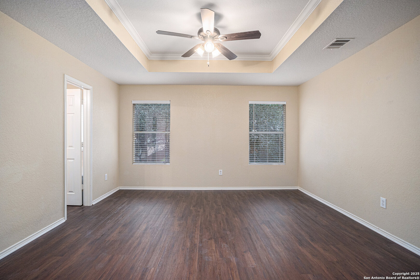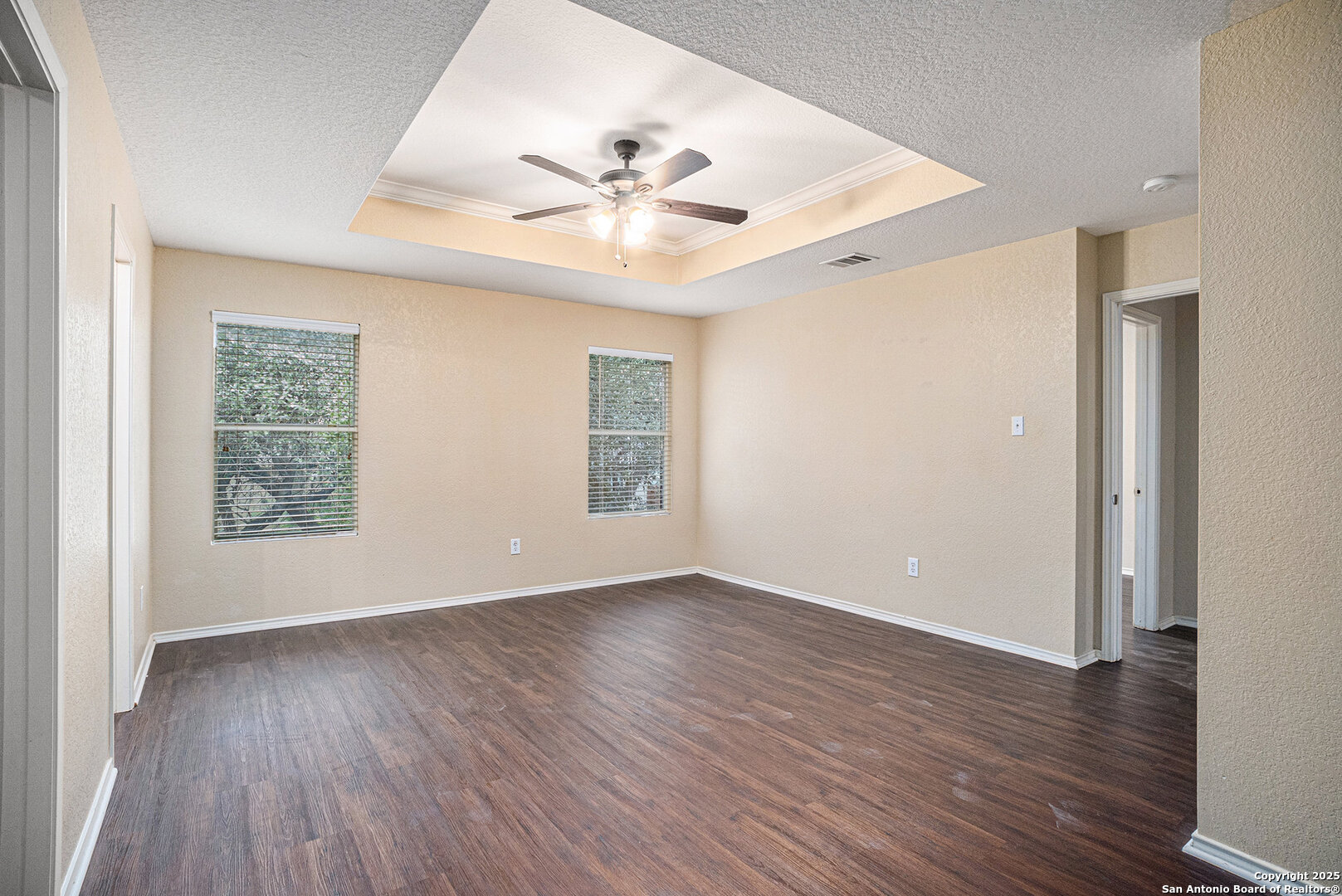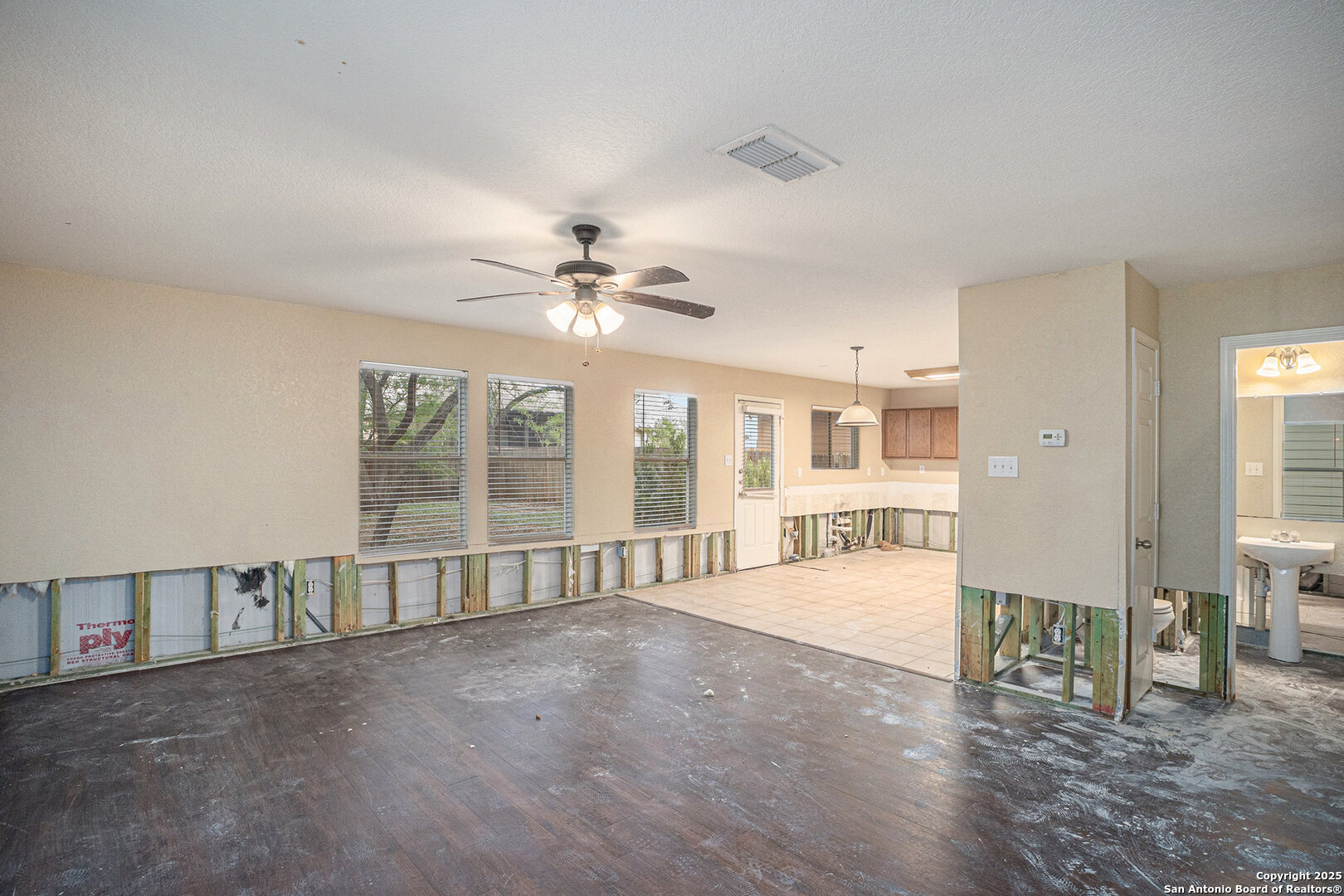 Great opportunity in the Silver Oaks community. This 3-bedroom, 2.5-bath home is being sold as-is and is well-suited for investors or cash buyers. Some flooring and lower drywall are missing, offering a chance to add value through repairs and updates. The first floor includes an open kitchen with stainless steel appliances, laminate countertops, and generous cabinet and counter space. The living area opens to a fenced backyard with mature trees. All bedrooms are located upstairs, including the primary suite with tray ceilings, a garden tub, and separate shower. A versatile flex space and an additional office area provide options for media, work, or recreation. Conveniently located near Alamo Ranch with nearby schools and easy access to FM 1560 and Shaenfield. Cash or as-is offers encouraged. Schedule a showing today.