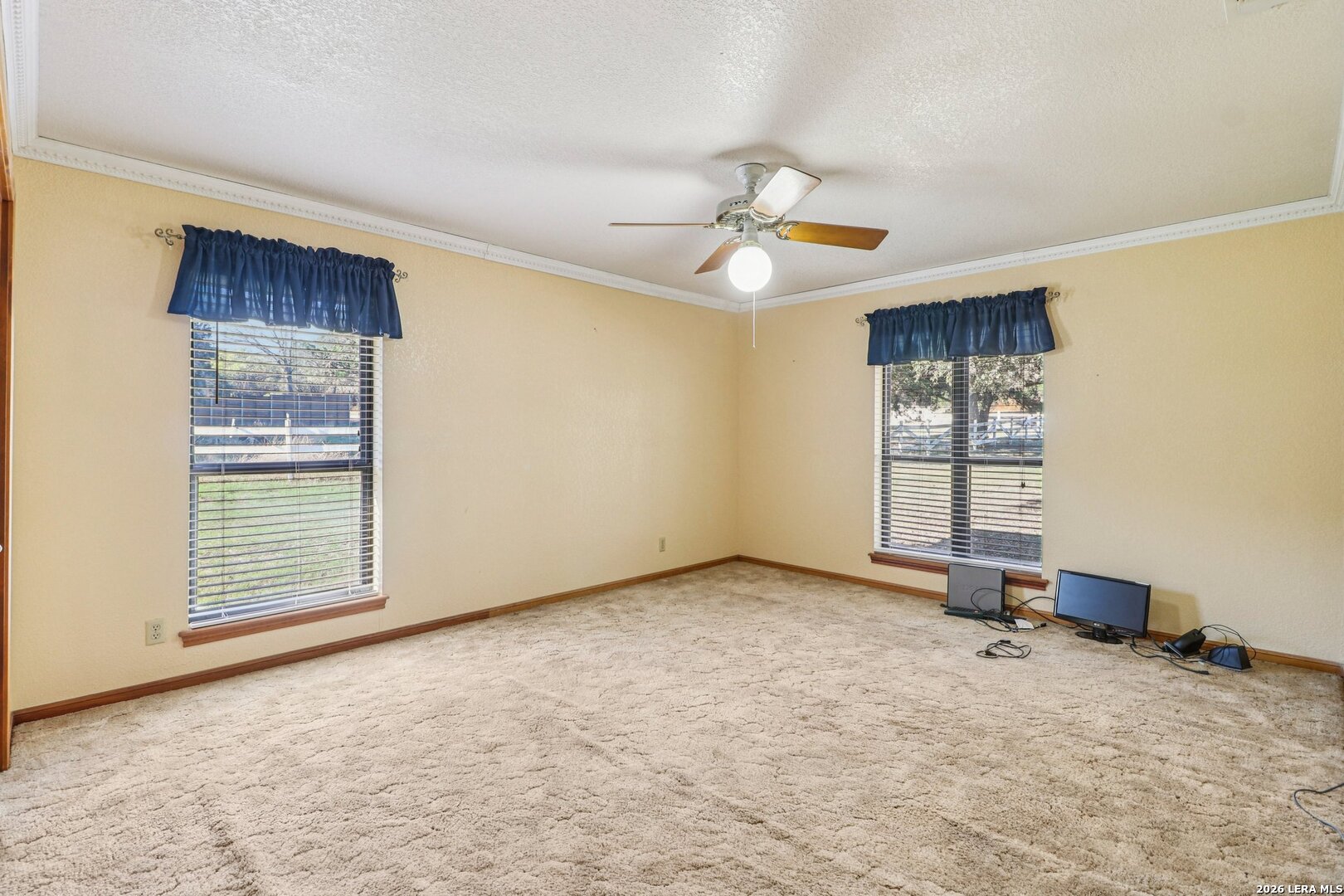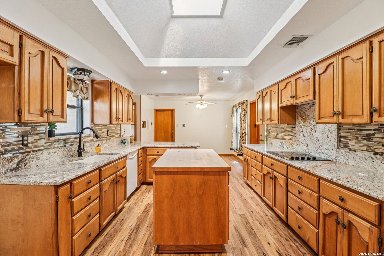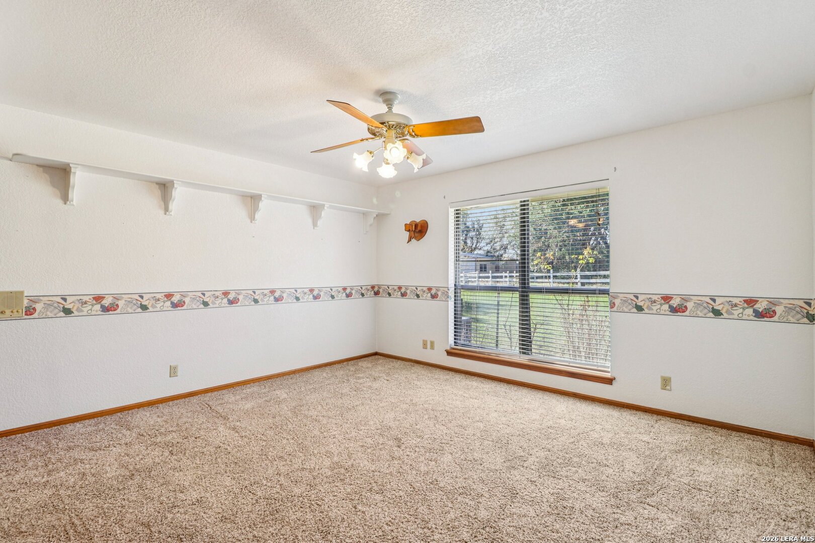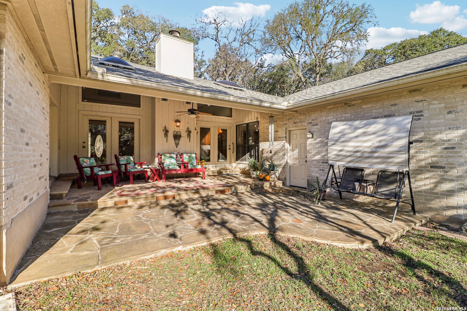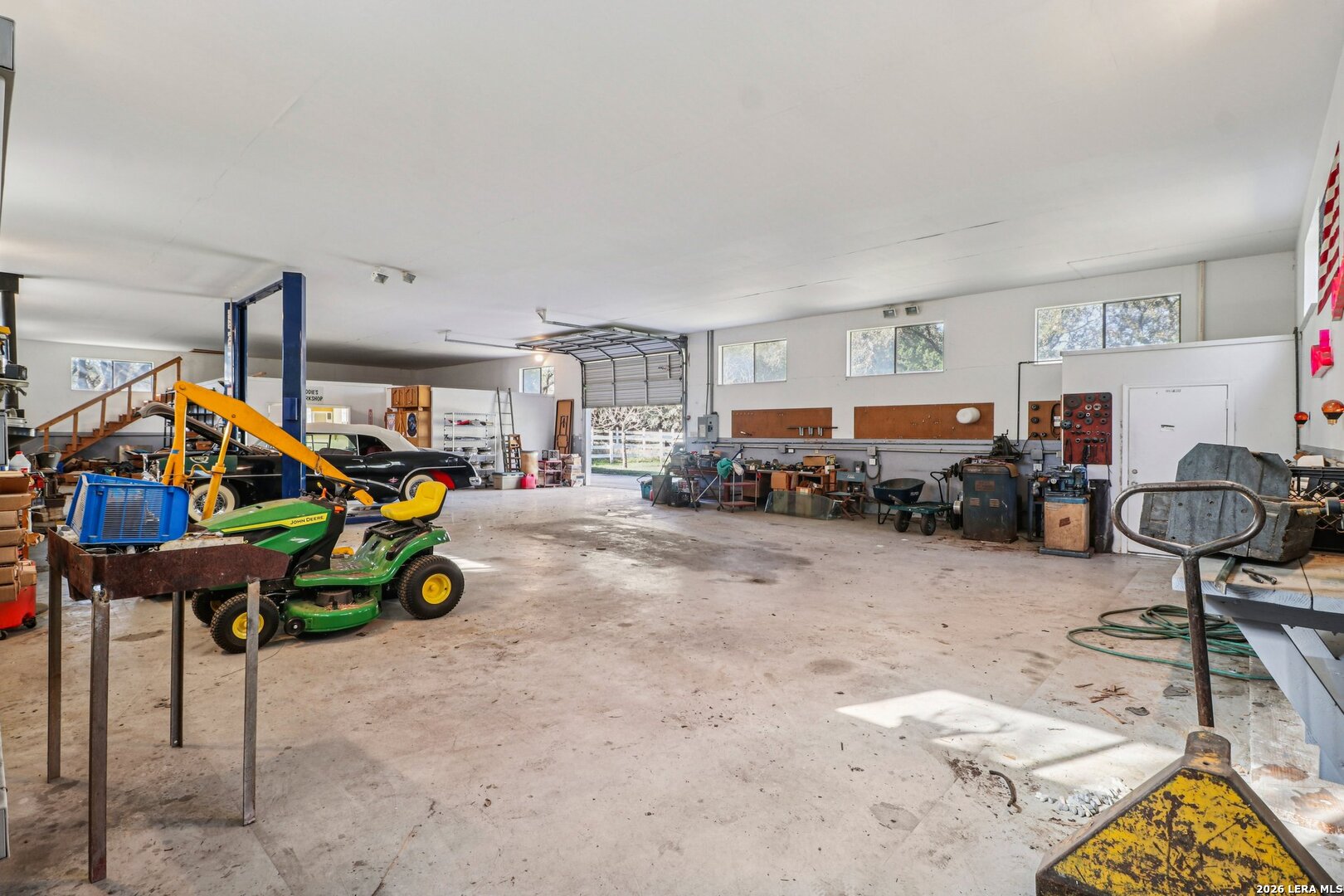 A rare opportunity in Scenic Oaks: 2.2 acres, horses allowed, and a massive 5,000 sq ft garage with vehicle lift all within a guarded and gated community in San Antonio with no city taxes. Tucked beneath a canopy of mature oak trees, this one story estate sits on two combined lots and offers the space, privacy, and flexibility that are becoming increasingly difficult to find. The property is one of the few in Scenic Oaks that allows horses and includes a three stall barn with fenced corral, making it ideal for equestrian enthusiasts who want room to ride and roam right from home. Car collectors and hobbyists will immediately appreciate the impressive detached garage and workshop spanning approximately 5,000 square feet complete with a vehicle lift, office or workshop space, half bath, and second story storage. The main home features four bedrooms and three full bathrooms and has been well cared for over the years, offering a solid foundation for a buyer ready to update and personalize the space. Large windows frame views of the surrounding oaks while the covered back porch provides a peaceful place to enjoy morning coffee or unwind while watching the Hill Country wildlife. Scenic Oaks offers the privacy of a gated community with a 24 hour guard station while still providing convenient access to major routes including IH 10 and Loop 1604. From the property, you are approximately 15 minutes to the charming shops and restaurants of downtown Boerne, about 20 minutes to The Rim and La Cantera shopping and dining, roughly 30 minutes to downtown San Antonio and the River Walk, around 20 minutes to Camp Bullis, and about 35 minutes to Lackland Air Force Base and Joint Base San Antonio Fort Sam Houston. Properties with acreage, equestrian allowances, and a large workshop like this rarely come available in Scenic Oaks, making this a truly special opportunity to create your own Hill Country estate.