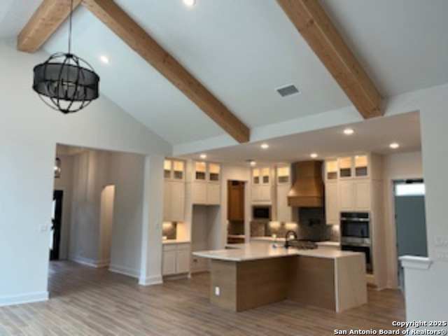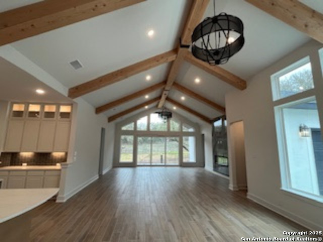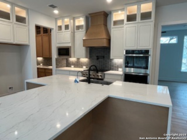 Spectacular 1 story home with extensive luxury upgrades on 1/2 acre treed lot with greenbelt! Step into luxury through an oversized iron with glass single pivot door. Enjoy a spacious family room with soaring vaulted ceilings, a modern linear fireplace and extensive windows overlooking a peaceful greenbelt lot! Kitchen features GE Cafe gas cooktop, double ovens, oversized island with lots of counter space and cabinetry. Oversized master with ceiling beams and large picture windows. Master shower includes rain showerhead and seperate freestanding tub. Master closet wraps around and connects with utility room. All 4 bedrooms have their own private bathrooms with walk in showers. 4 car garage with port-cochere. Zip system wall construction, energy efficient home with 16 SEER Carrier AC System. Comal ISD, 1.44 tax rate.
