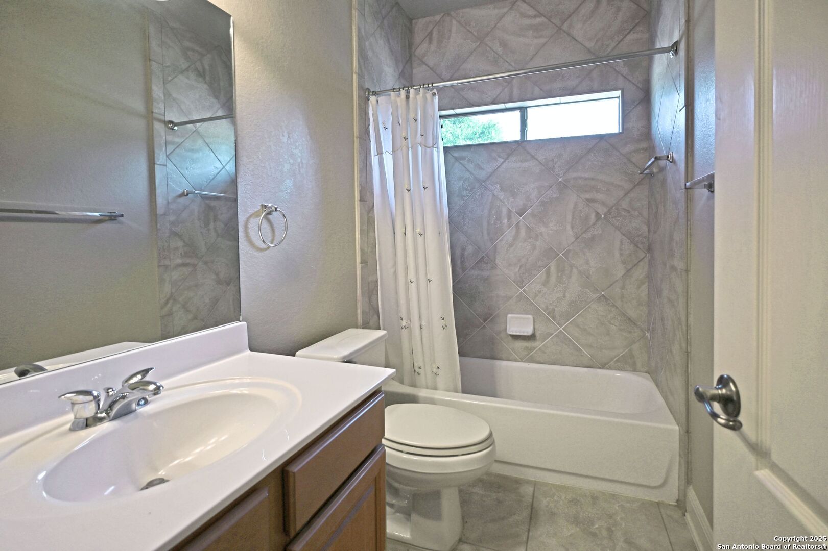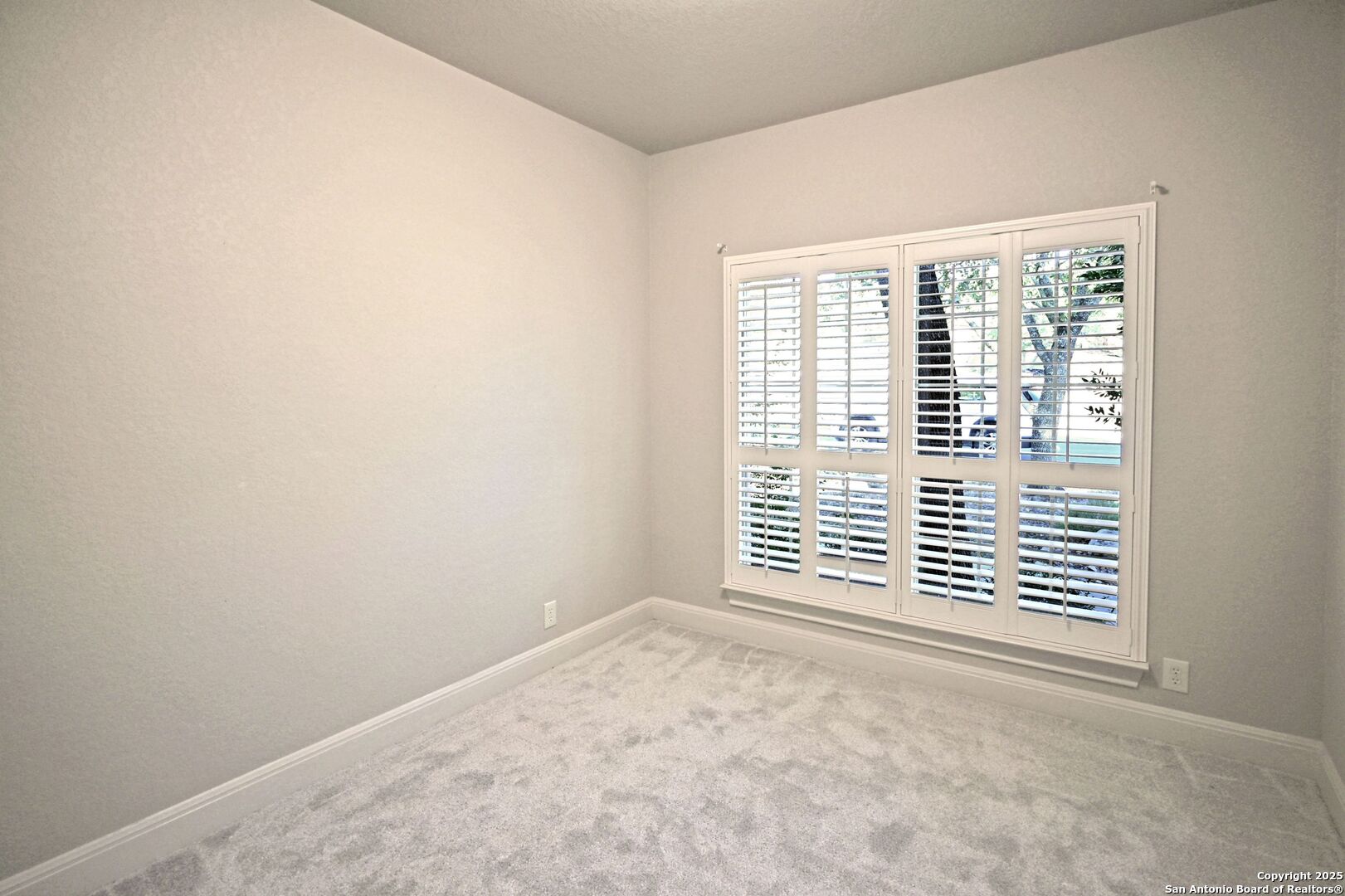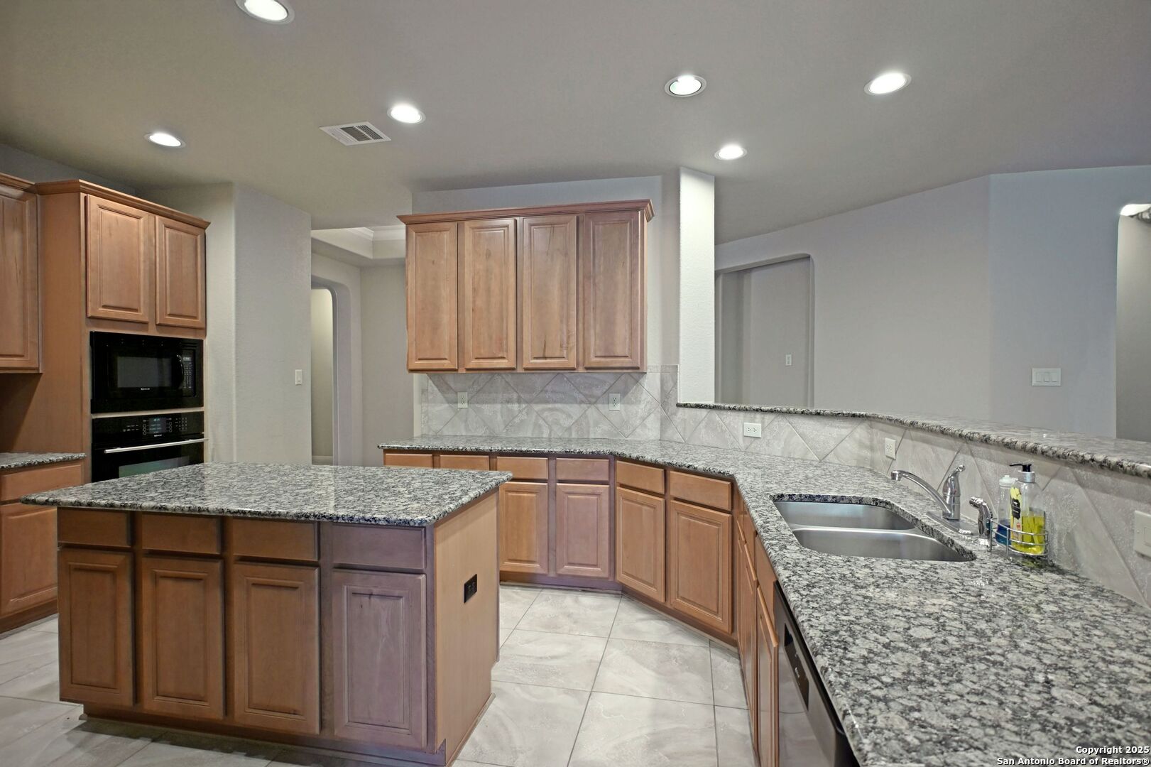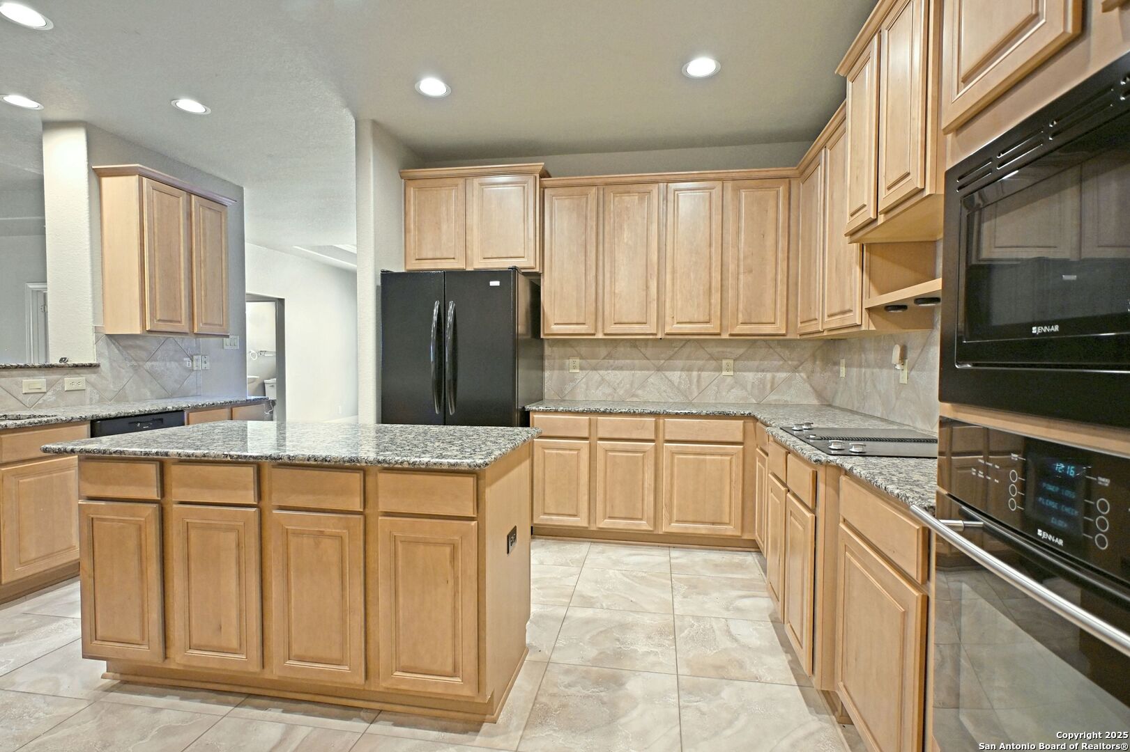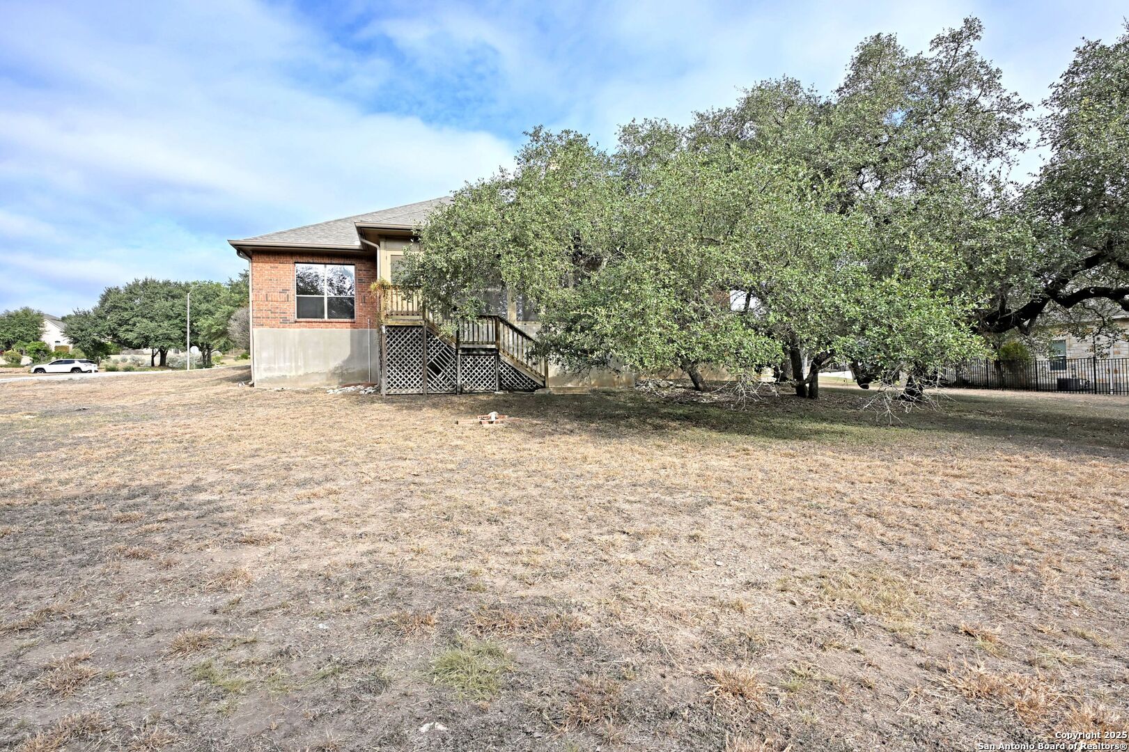 Marvel at the magnificence of this beautiful 4-bedroom, 2.5-bathroom home with a flex room, perfectly situated in the heart of The Enclave community in New Braunfels. A well-shaded path leads you to a welcoming entry, where a striking tray ceiling guides you towards the formal dining area. Right in the heart of the home is the inviting island kitchen, designed with elegant granite countertops, walk-in pantry, and a ceramic tile backsplash. Enjoy your meals and gatherings in the brightly lit breakfast dining area, conveniently located near the half bath. After a long day, cozy up to the warm masonry fireplace in the spacious living room. The luxurious primary bedroom suite is a true retreat, boasting two generous walk-in closets, a garden tub, dual sinks, and a tiled walk-in shower with spa-like features. Step outside to unwind in the enclosed patio, offering tranquil views of the serene backyard. This exceptional property also features an attached three-car garage and a paved driveway with ample space for parking your RV or other recreational vehicles.