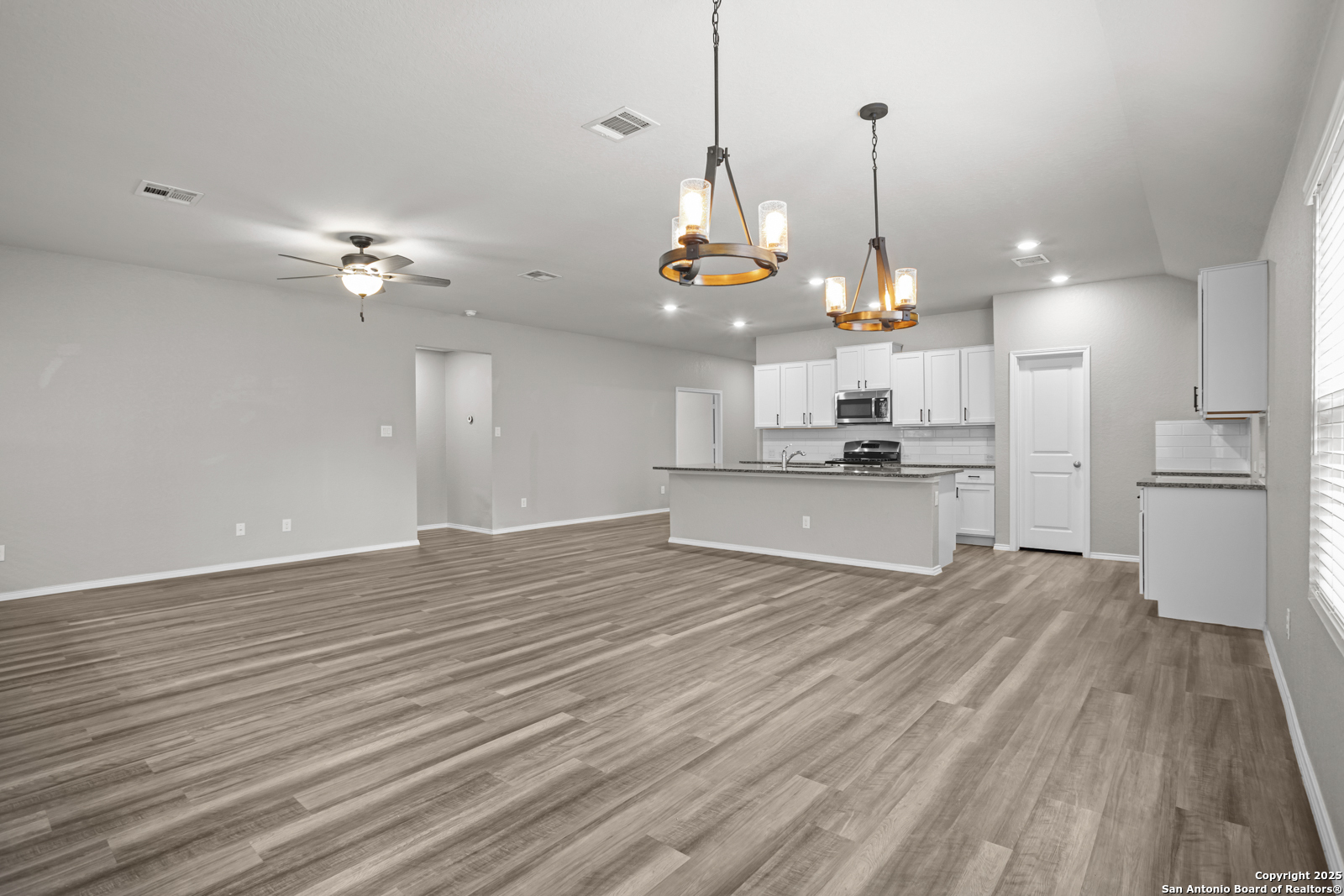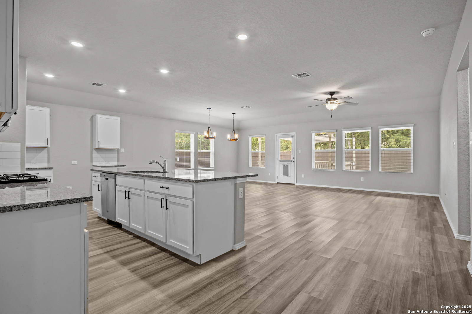 Built-In Equity! Listed Below Appraised Value. This beautiful home offers spacious living with 4 bedrooms and 3 bathrooms, perfect for both relaxation and entertaining. The open-concept living room seamlessly connects to the kitchen, which boasts granite countertops, stainless steel appliances, and ample cabinet and countertop space for all your culinary needs. A dedicated office space off the living room provides an ideal environment for work or study. The master bedroom is generously sized and features an ensuite bath with a double vanity and a luxurious walk-in shower. Enjoy outdoor living on the covered patio, which includes a ceiling fan for added comfort, and an extended deck perfect for gatherings or quiet evenings. Located in a desirable neighborhood, this home combines modern amenities with plenty of space for everyday living.