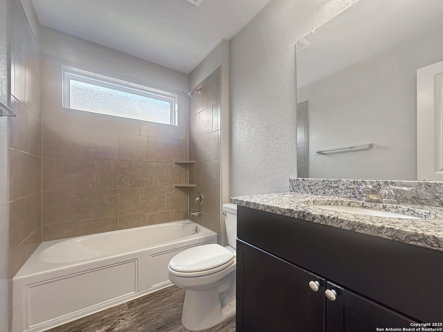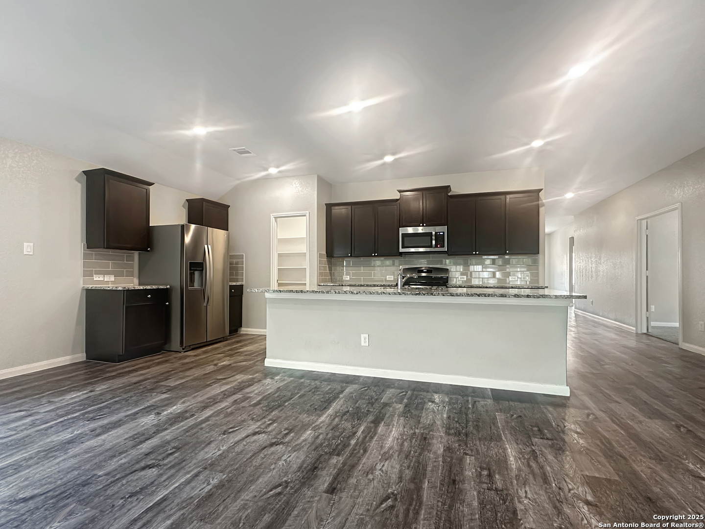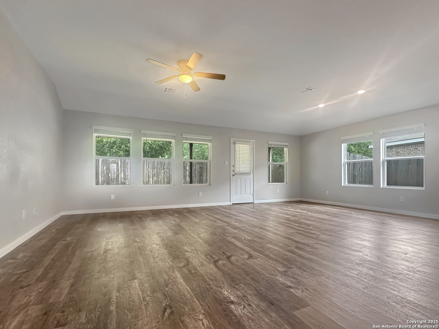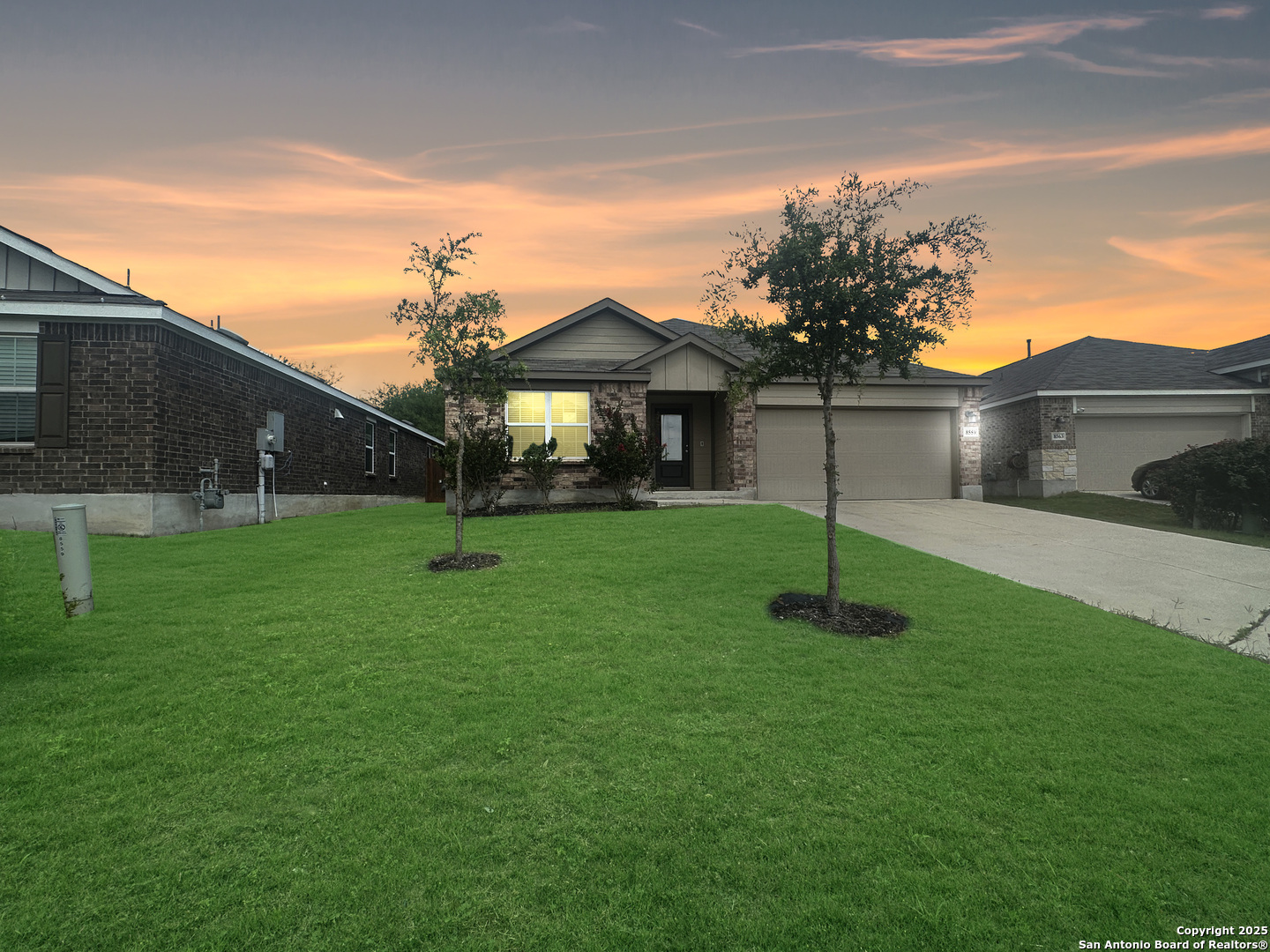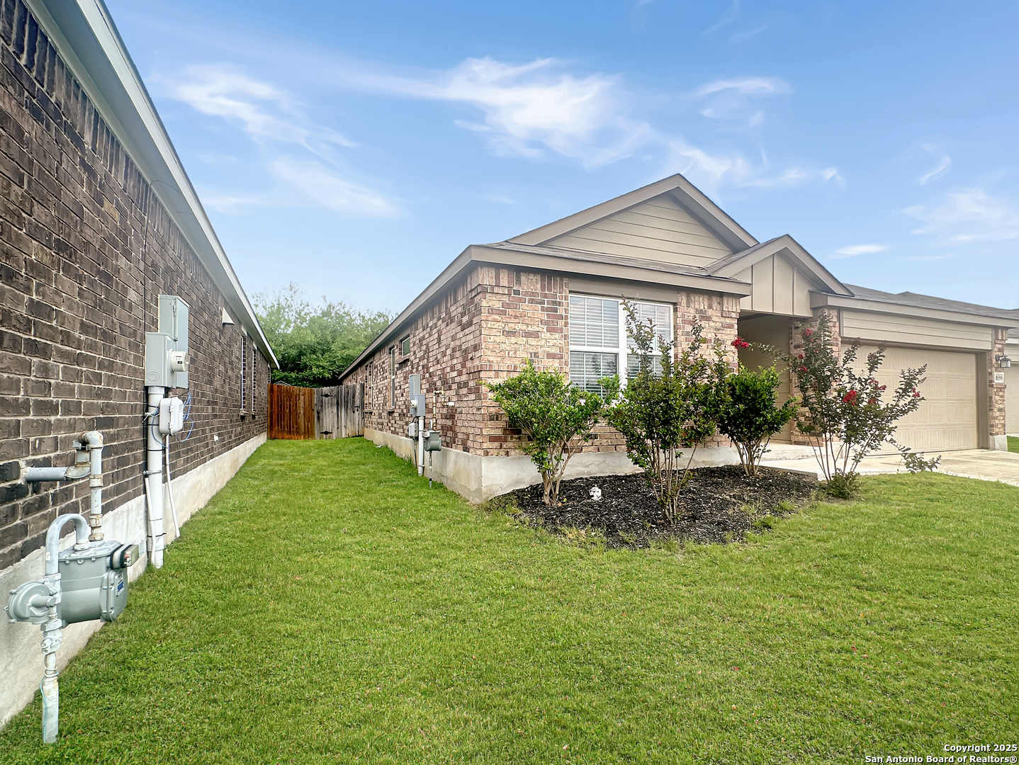 This exceptional home borders serene green belt constructed with three-quarters brick, features a covered patio ideal for outdoor entertaining., the residence boasts an open concept living area that seamlessly connects to a spacious kitchen, complete with a breakfast bar and abundant cabinet and countertop space. There is a bedroom conveniently located near a full bathroom, making it perfect for guests. Additionally, there is a versatile room that can serve as an office, dining room, or TV room. This home truly offers great quality at a great price.