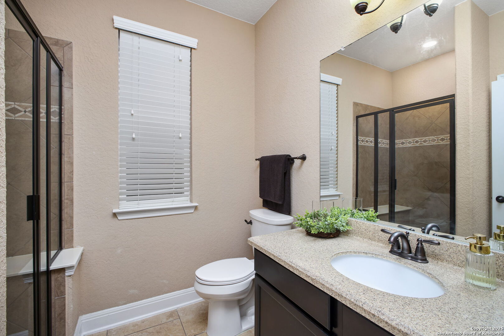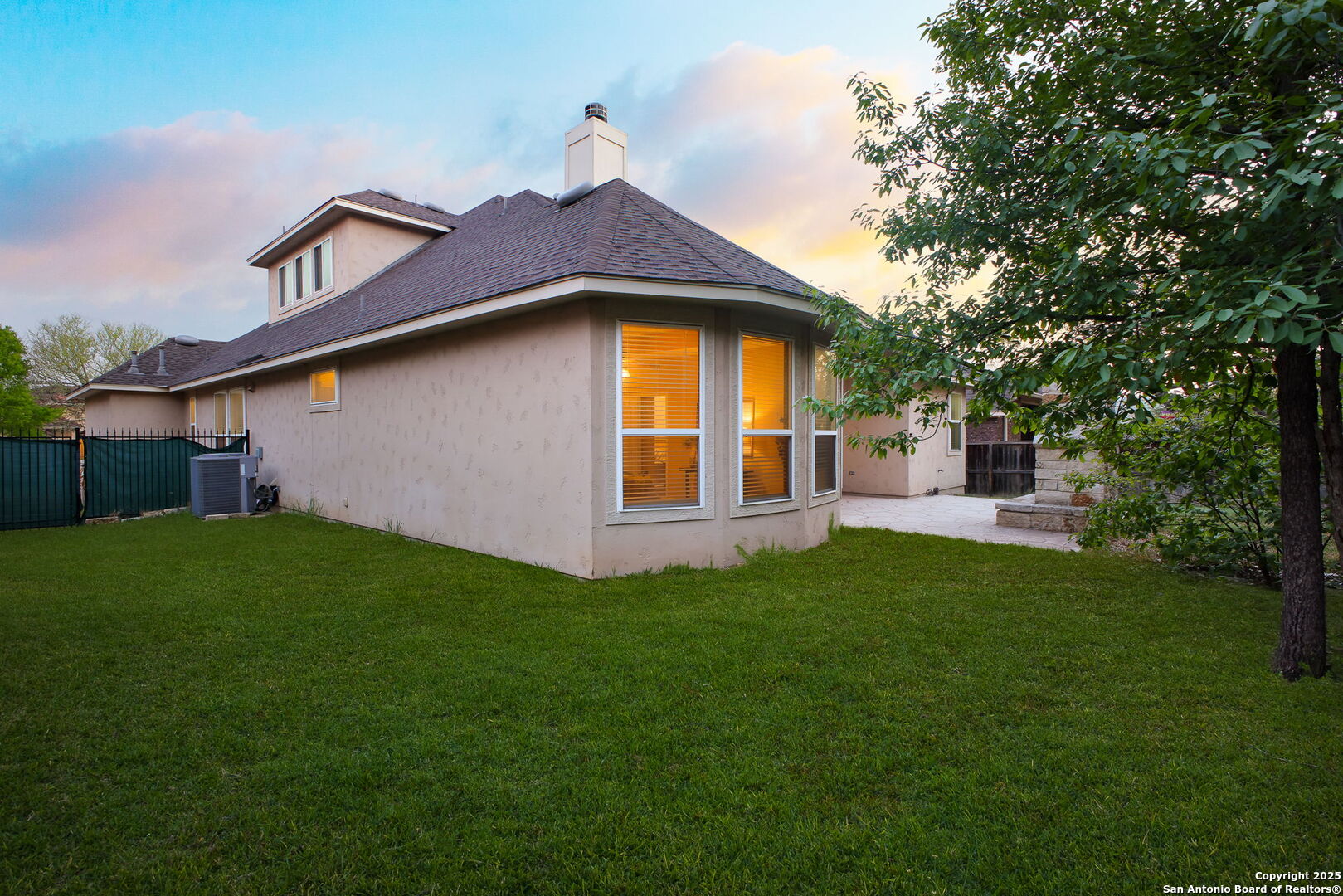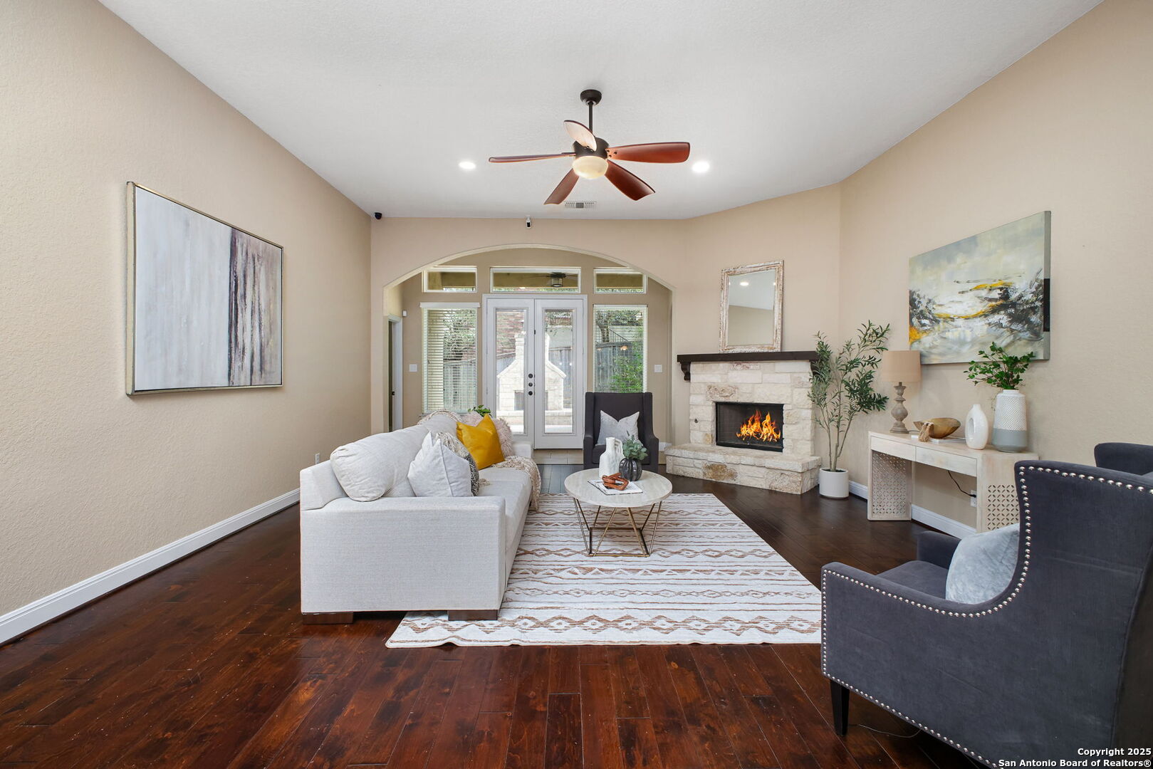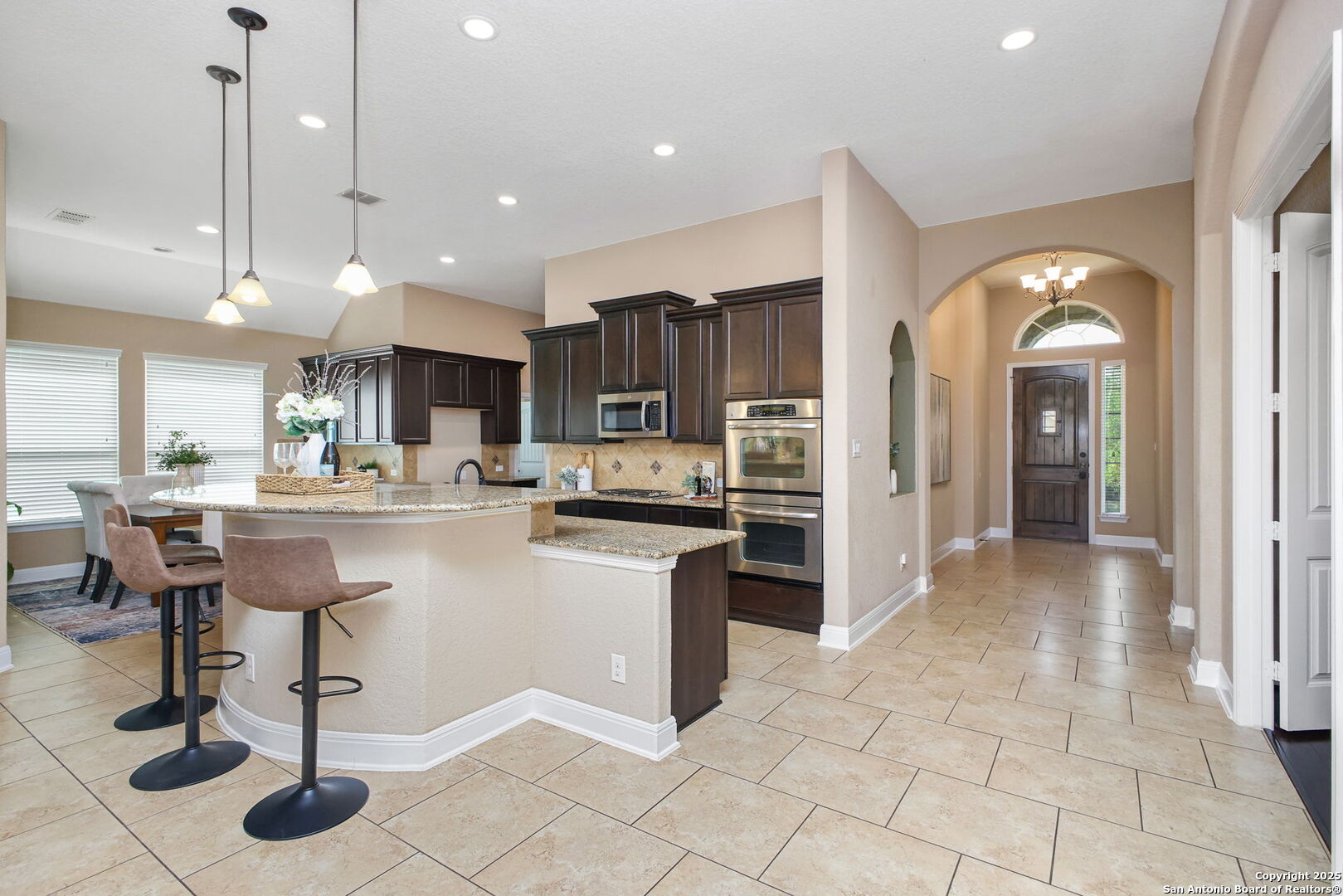 Welcome to this exquisite home, perfectly situated in the picturesque city of Boerne, Texas. Spanning 3,182 square feet of elegant living space, this property offers 5 bedrooms and 4 full bathrooms. It features two generously sized master suite bedrooms, one could serve as a guest room, student suite, or even a game/media room, perfect for a variety of lifestyles. The home is also complemented by high ceilings throughout including the garage. The open-concept design seamlessly connects the spacious living room, which is flooded with abundant natural light, with it's cozy fireplace, to the chef-inspired kitchen, complete with a large island, breakfast bar, double ovens, spacious walk-in pantry, and plenty of cabinetry. The formal dining room, framed by French double doors, adds an element of sophistication. One of the main suites provides a serene retreat with an upgraded bathroom, a spa-like ensuite, and dual vanities. Recent upgrades include fresh interior and exterior paint. Additional highlights include a private study/office, a spacious 3-car garage, and a beautifully landscaped backyard featuring a covered patio, outdoor fireplace, and ceiling fan, perfect for year-round enjoyment. Blending modern luxury with timeless design, this home is priced to sell at $524,500-$40,400 below its CAD appraised value of $564,900. Don't miss out on this incredible opportunity!