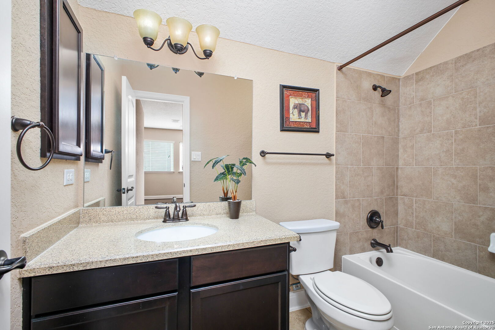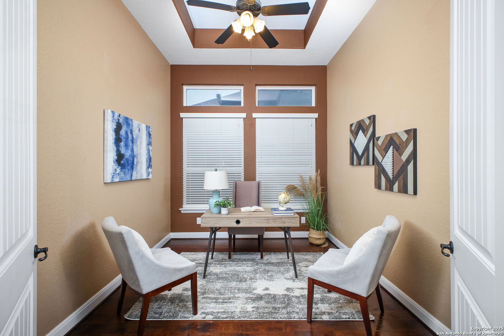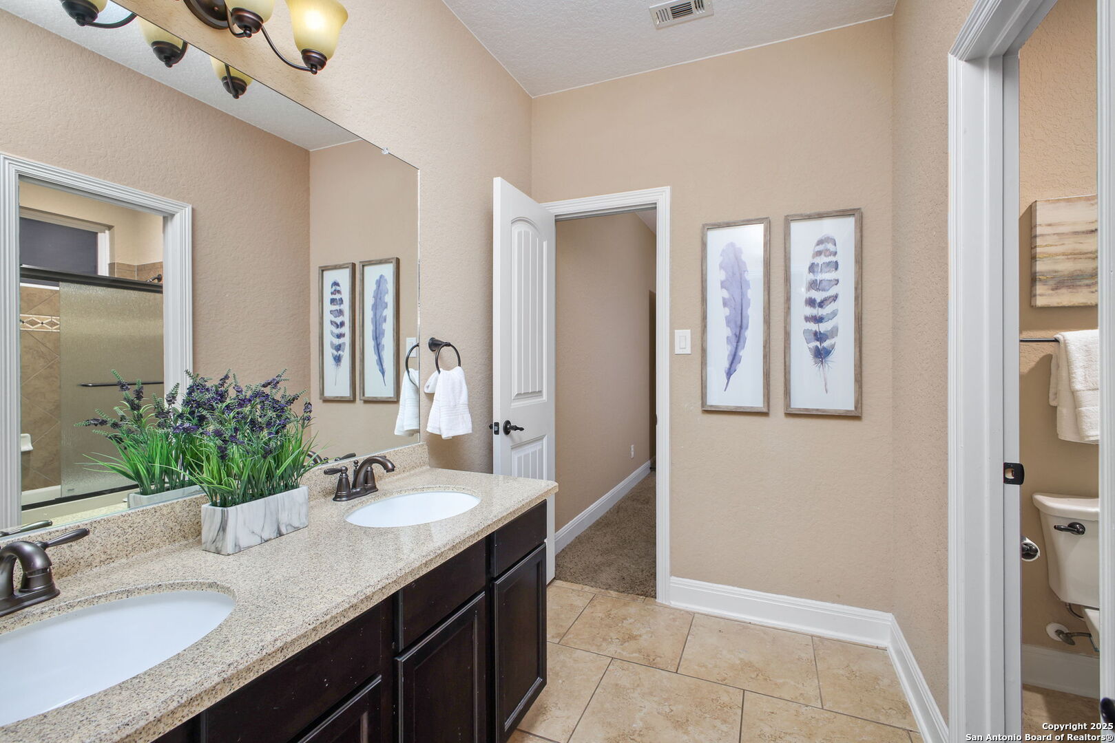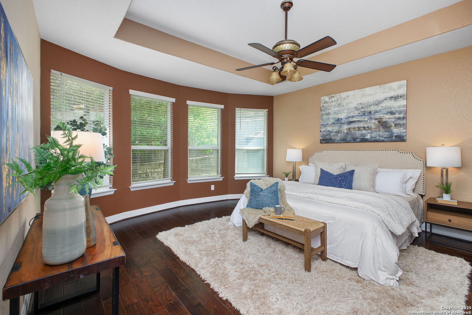 Welcome to this exquisite home, perfectly situated in the picturesque city of Boerne, Texas. Spanning 3,182 square feet of elegant living space, this property offers 5 bedrooms and 4 full bathrooms. It features two generously sized master suite bedrooms, one could serve as a guest room, student suite, or even a game/media room, perfect for a variety of lifestyles. The home is also complemented by high ceilings throughout including the garage. The open-concept design seamlessly connects the spacious living room, which is flooded with abundant natural light, with it's cozy fireplace, to the chef-inspired kitchen, complete with a large island, breakfast bar, double ovens, spacious walk-in pantry, and plenty of cabinetry. The formal dining room, framed by French double doors, adds an element of sophistication. One of the main suites provides a serene retreat with an upgraded bathroom, a spa-like ensuite, and dual vanities. Recent upgrades include fresh interior and exterior paint. Additional highlights include a private study/office, a spacious 3-car garage, and a beautifully landscaped backyard featuring a covered patio, outdoor fireplace, and ceiling fan, perfect for year-round enjoyment. Blending modern luxury with timeless design, this home is priced to sell at $524,500-$40,400 below its CAD appraised value of $564,900. Don't miss out on this incredible opportunity!