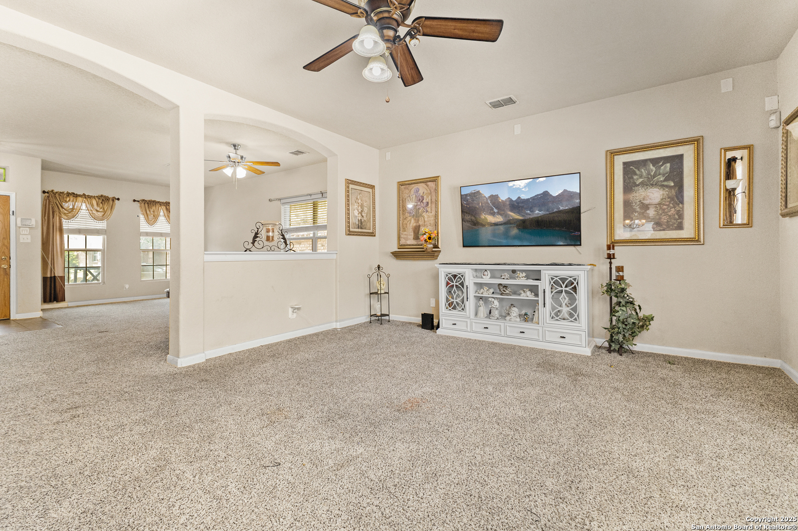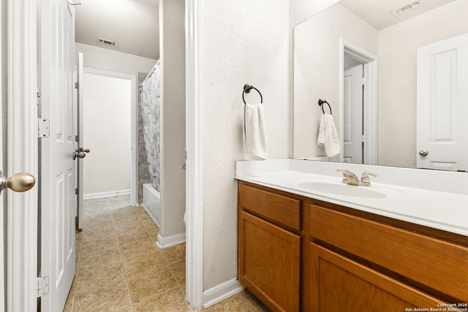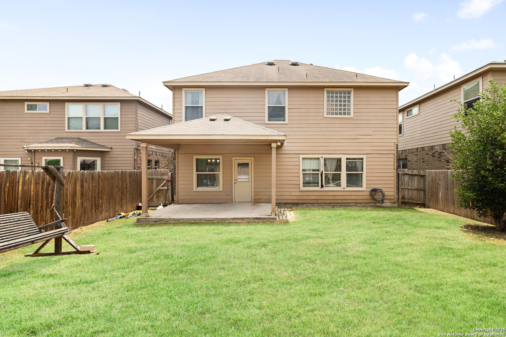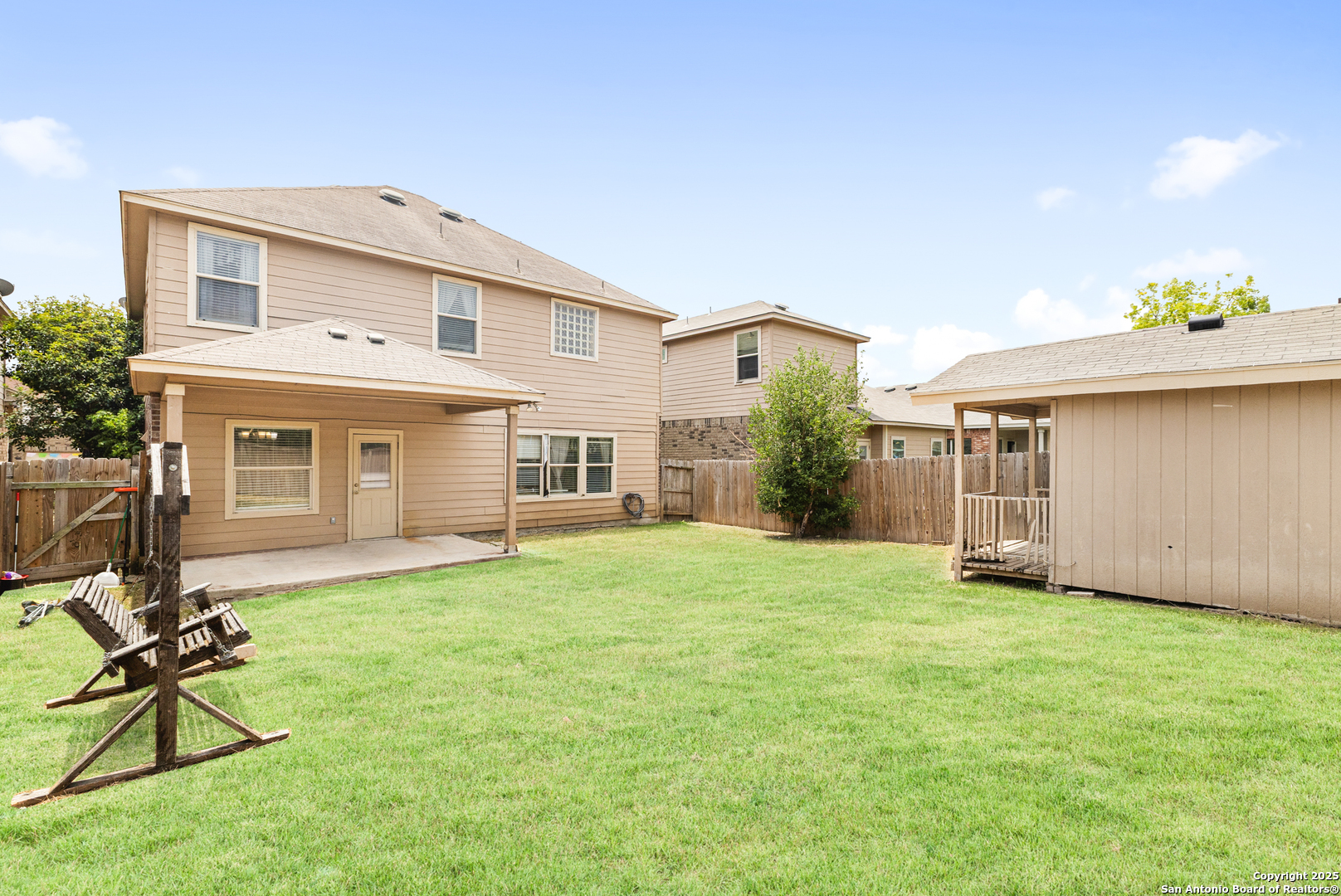 Spacious & Stylish 4-Bedroom Home with Modern Touches This beautifully designed open floor plan home features high ceilings, 4 generously sized bedrooms, 2.5 bathrooms, and a 2-car garage. Enjoy elegant arched niches, a bright eat-in kitchen with an island, gas cooking, granite countertops, and a stylish backsplash. The primary suite offers a private retreat with a walk-in closet, garden tub, separate shower, and dual vanities. Upstairs, you'll find Texas-sized secondary bedrooms and a spacious game room perfect for movie nights or playtime. Ceiling fans throughout, a covered patio ideal for entertaining, and a large storage shed. Conveniently located just minutes from Hwy 151, Loop 410, dining, and shopping.