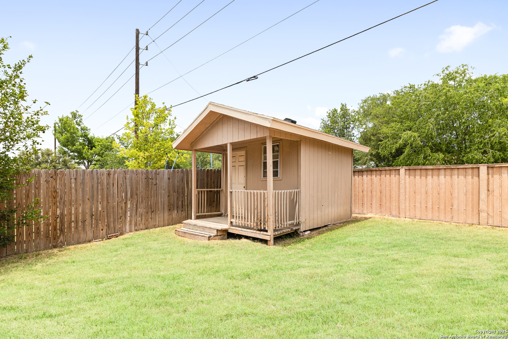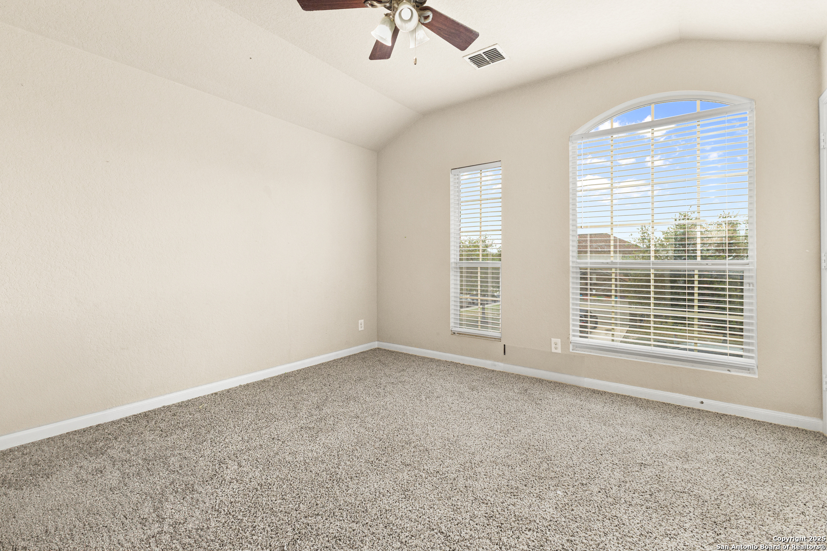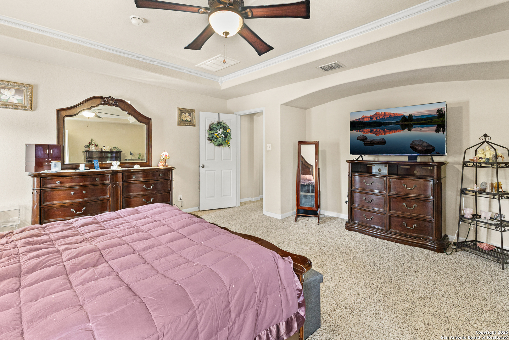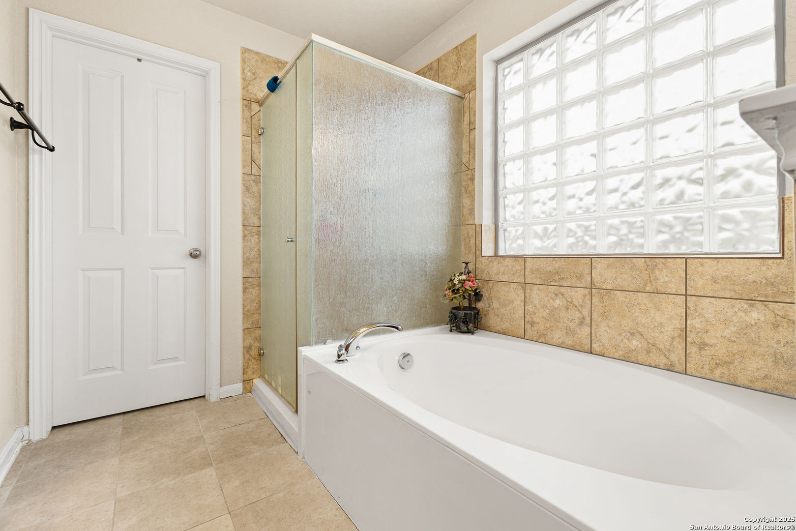 Spacious & Stylish 4-Bedroom Home with Modern Touches This beautifully designed open floor plan home features high ceilings, 4 generously sized bedrooms, 2.5 bathrooms, and a 2-car garage. Enjoy elegant arched niches, a bright eat-in kitchen with an island, gas cooking, granite countertops, and a stylish backsplash. The primary suite offers a private retreat with a walk-in closet, garden tub, separate shower, and dual vanities. Upstairs, you'll find Texas-sized secondary bedrooms and a spacious game room perfect for movie nights or playtime. Ceiling fans throughout, a covered patio ideal for entertaining, and a large storage shed. Conveniently located just minutes from Hwy 151, Loop 410, dining, and shopping.
