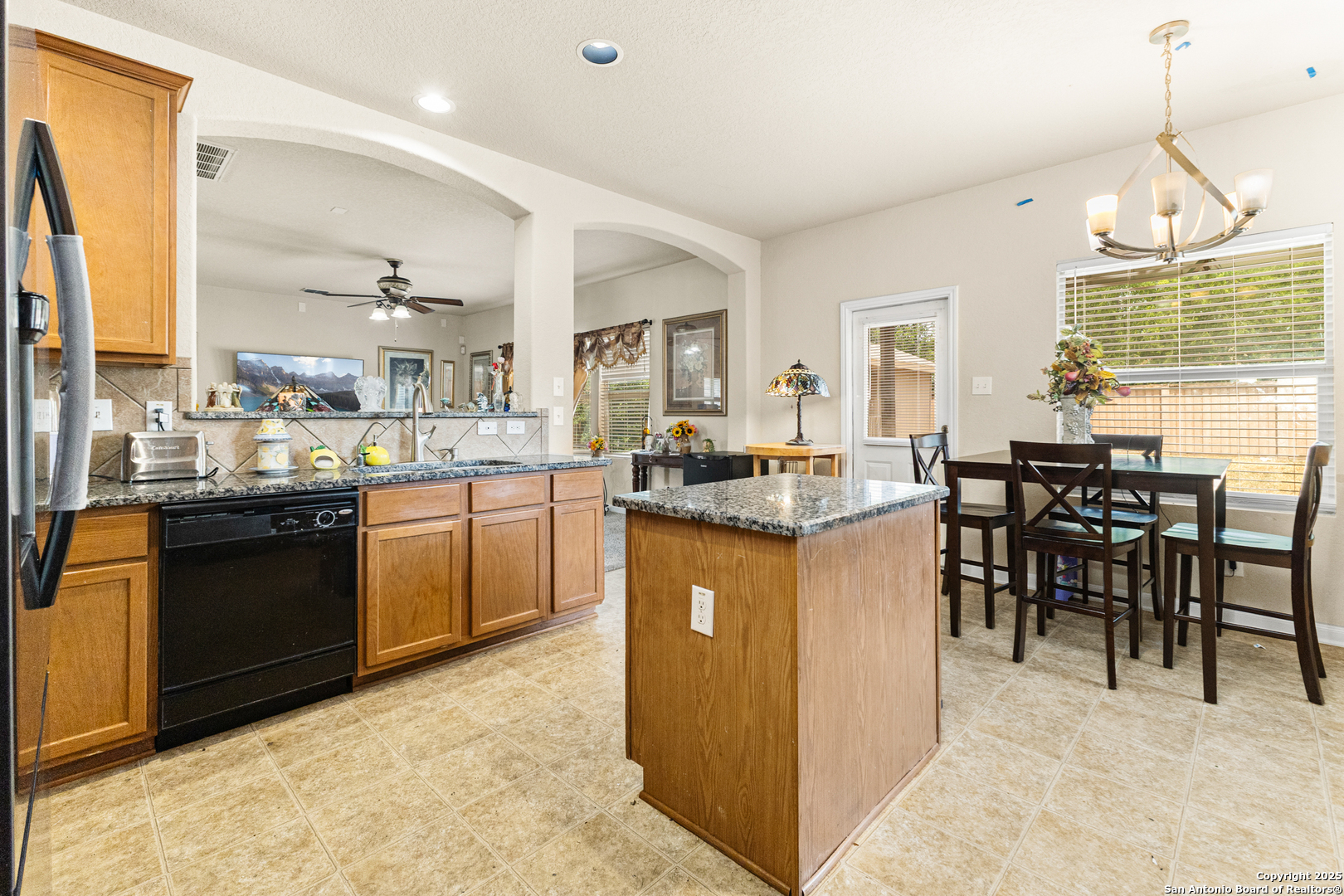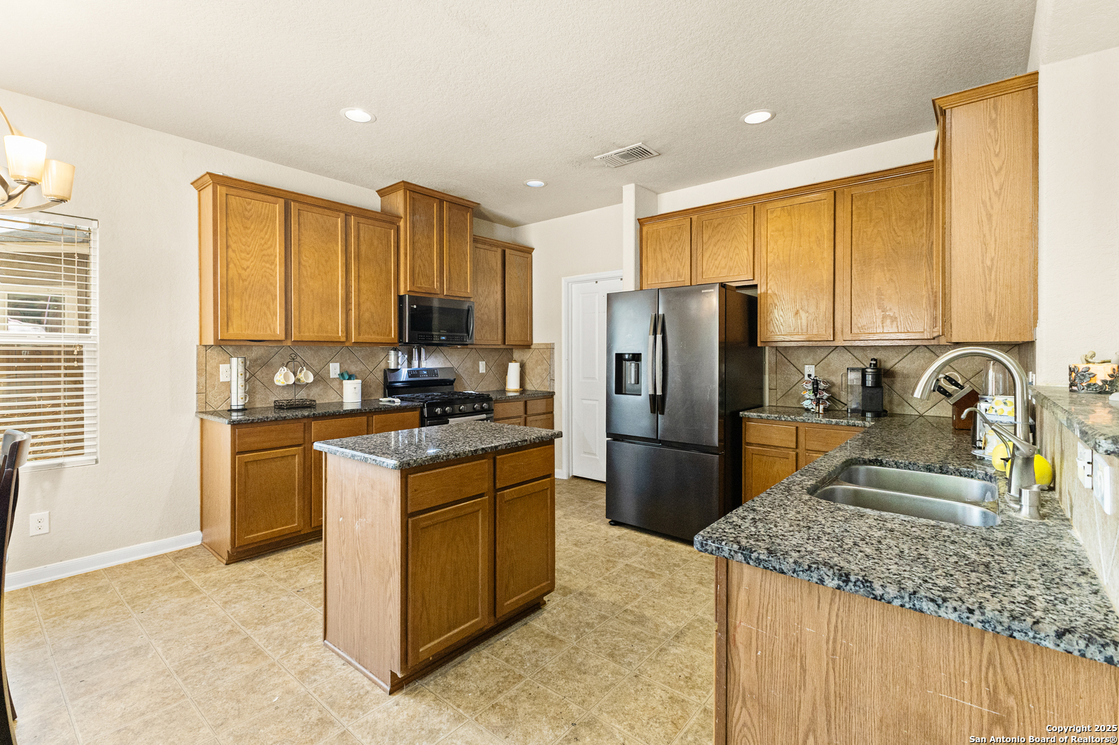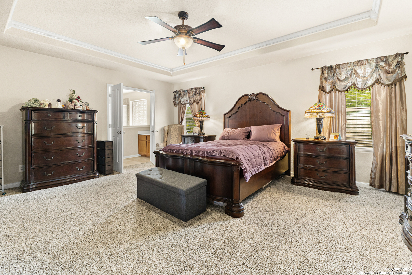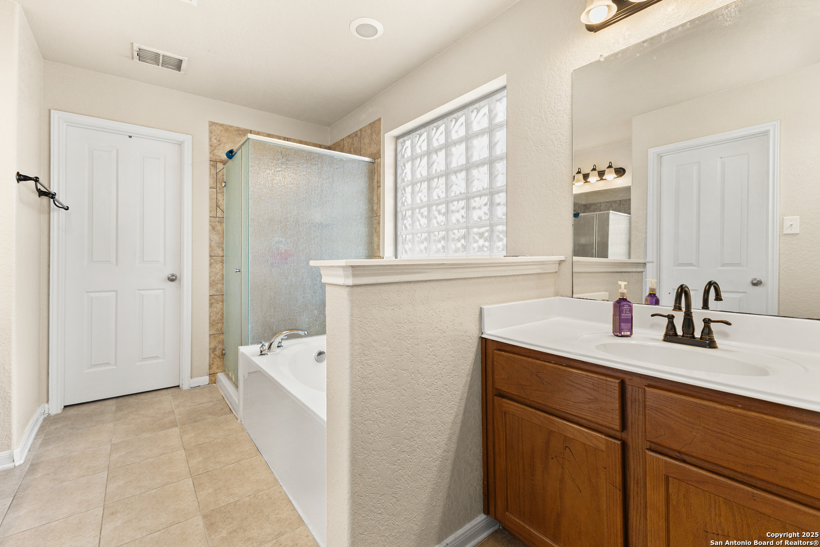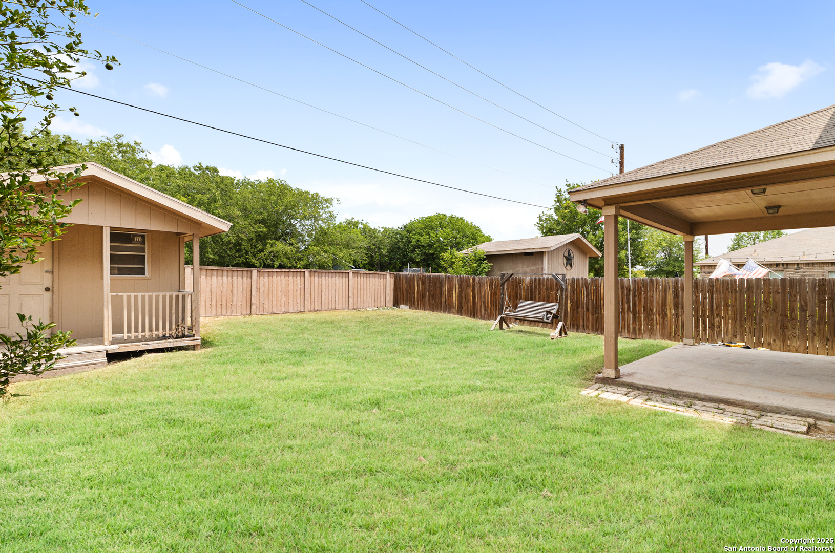 Spacious & Stylish 4-Bedroom Home with Modern Touches This beautifully designed open floor plan home features high ceilings, 4 generously sized bedrooms, 2.5 bathrooms, and a 2-car garage. Enjoy elegant arched niches, a bright eat-in kitchen with an island, gas cooking, granite countertops, and a stylish backsplash. The primary suite offers a private retreat with a walk-in closet, garden tub, separate shower, and dual vanities. Upstairs, you'll find Texas-sized secondary bedrooms and a spacious game room perfect for movie nights or playtime. Ceiling fans throughout, a covered patio ideal for entertaining, and a large storage shed. Conveniently located just minutes from Hwy 151, Loop 410, dining, and shopping.