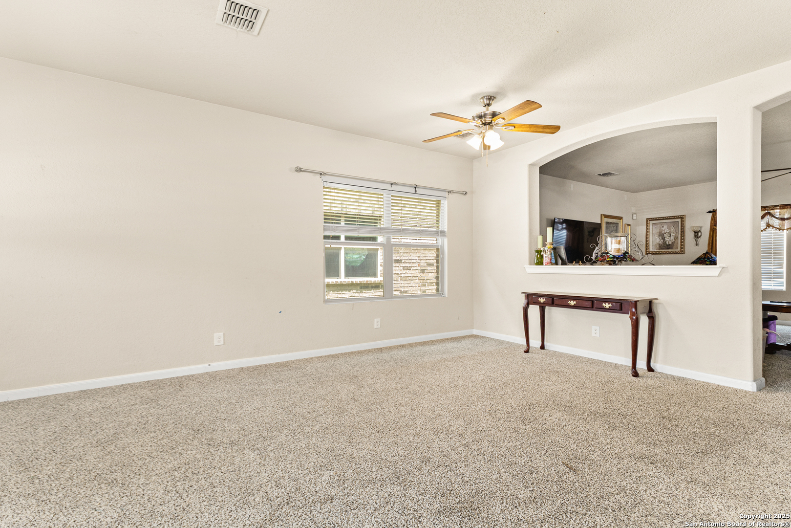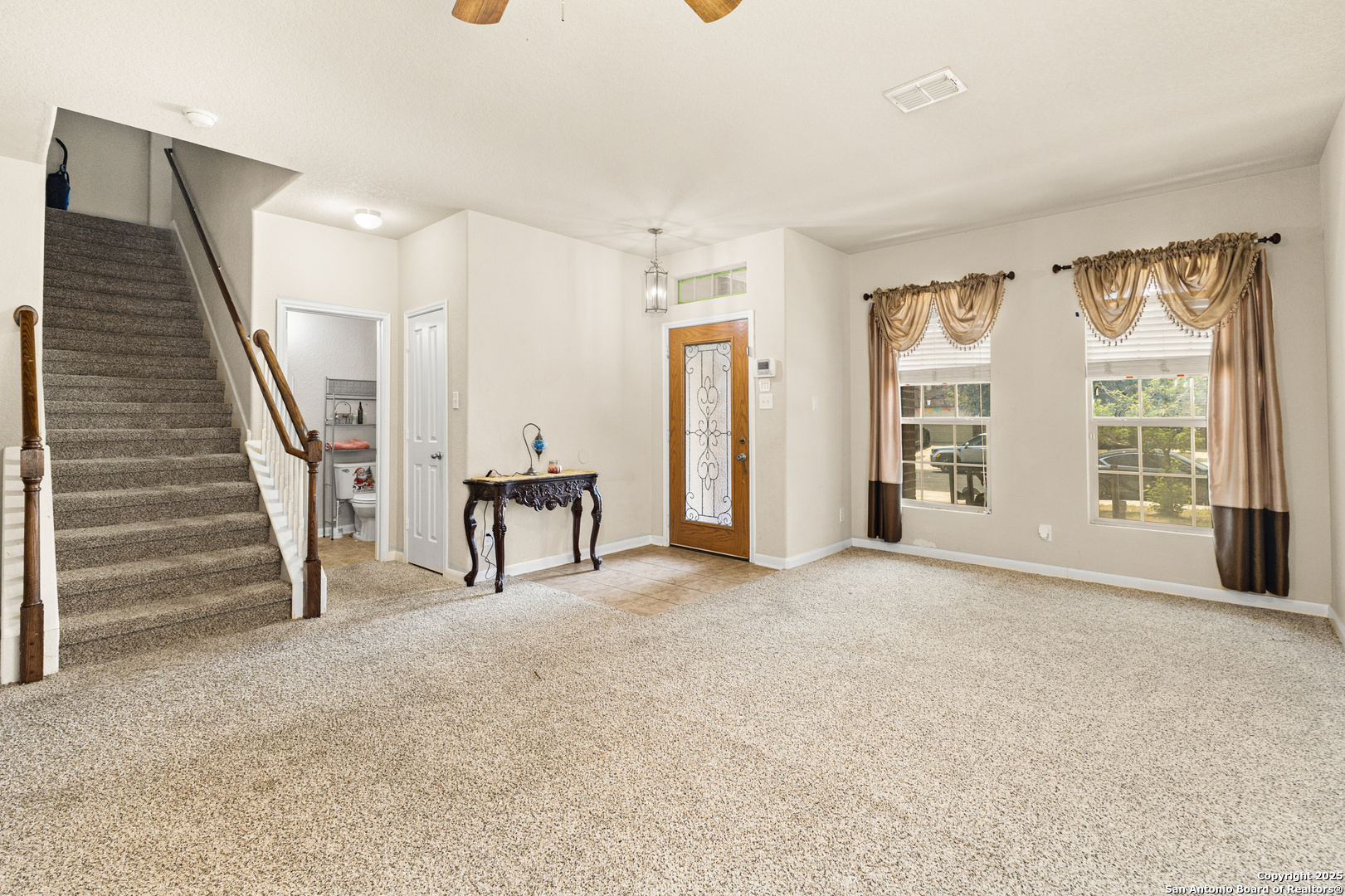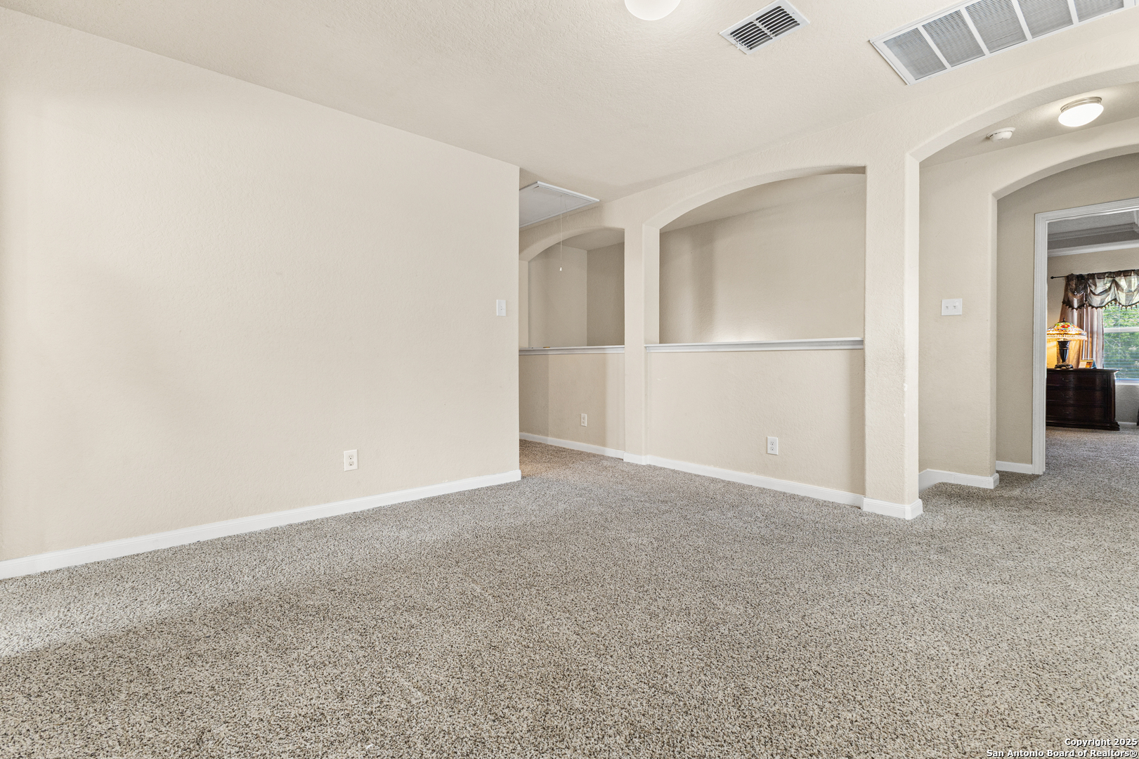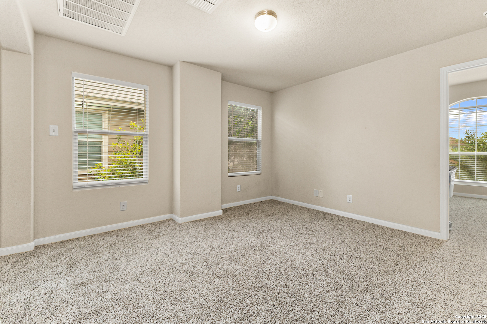 Spacious & Stylish 4-Bedroom Home with Modern Touches This beautifully designed open floor plan home features high ceilings, 4 generously sized bedrooms, 2.5 bathrooms, and a 2-car garage. Enjoy elegant arched niches, a bright eat-in kitchen with an island, gas cooking, granite countertops, and a stylish backsplash. The primary suite offers a private retreat with a walk-in closet, garden tub, separate shower, and dual vanities. Upstairs, you'll find Texas-sized secondary bedrooms and a spacious game room perfect for movie nights or playtime. Ceiling fans throughout, a covered patio ideal for entertaining, and a large storage shed. Conveniently located just minutes from Hwy 151, Loop 410, dining, and shopping.