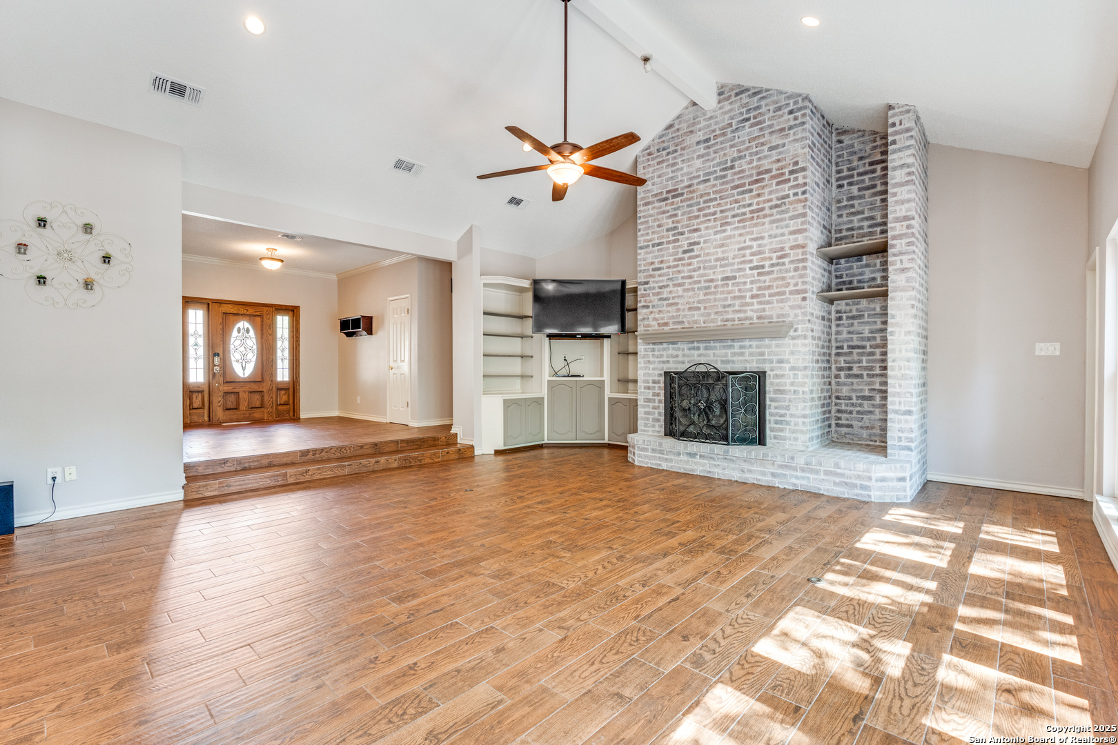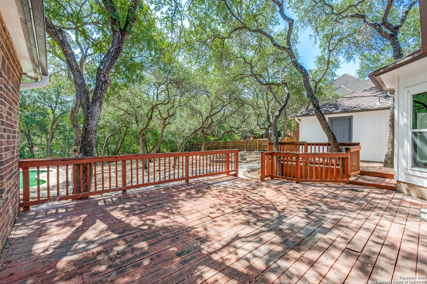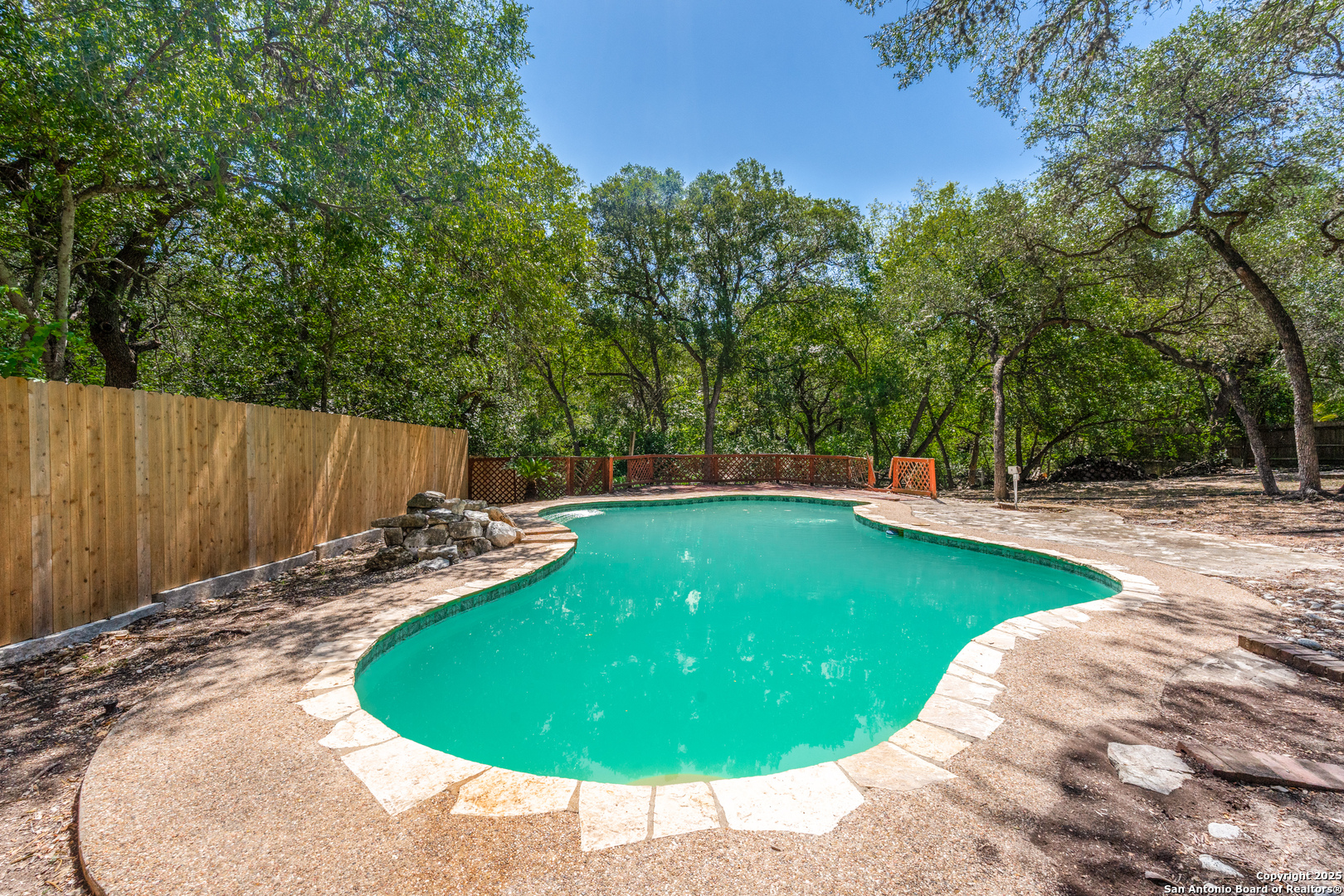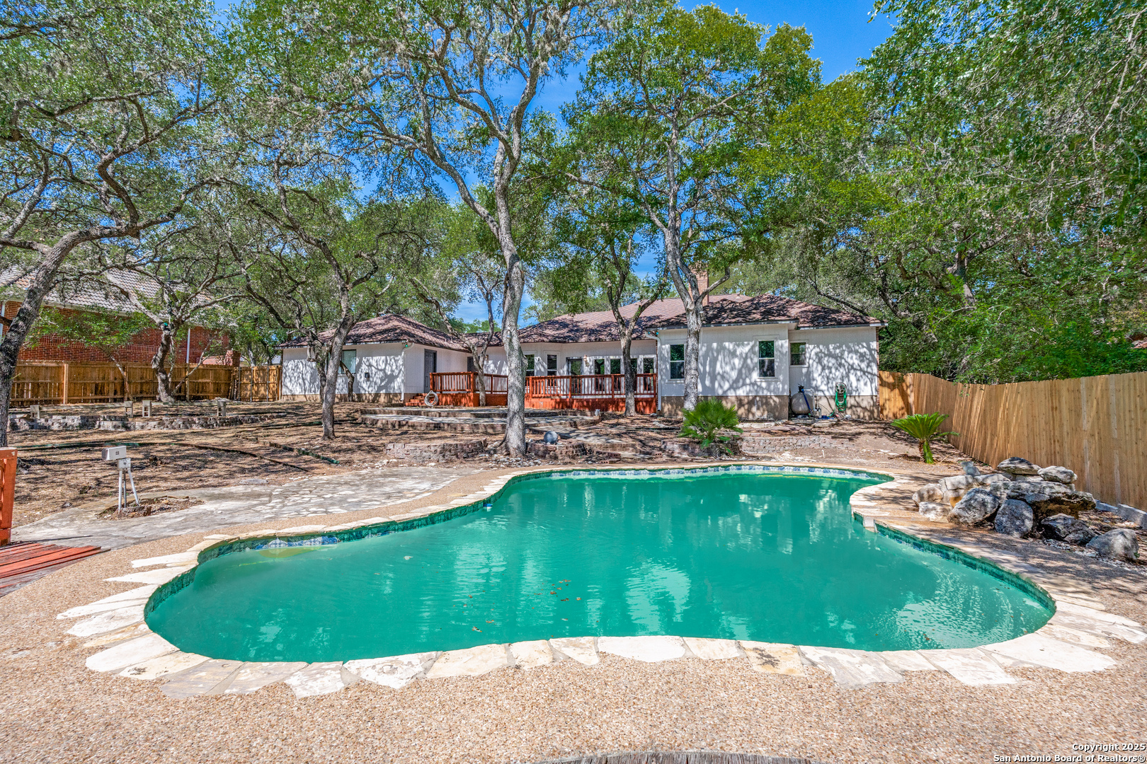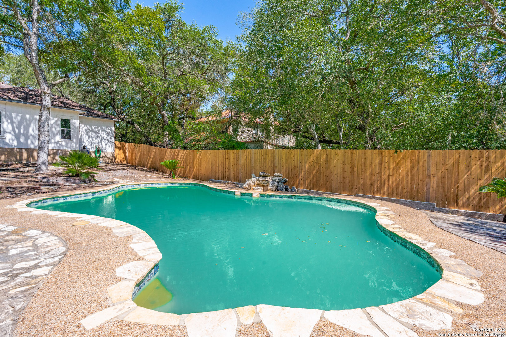 Single story custom home in Olympia Hills is ready for a new owner. The 2600+ sq.ft. home has 4 bedrooms, 2.5 baths, and oversized two car garage allowing workshop space/abundant storage. Large backyard for entertaining with an in ground pool and multi level decks. Mature trees. Wood look tile floors throughout. Brick fireplace in living room with high ceilings and multiple windows with lots of natural lighting. Laundry room has sink. Beautiful, quiet neighborhood conveniently located close to a golf course and easy access to IH 35 and Randolph Air Force Base. Priced to sell. Come take a look.