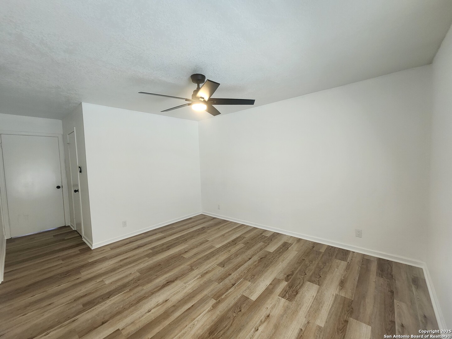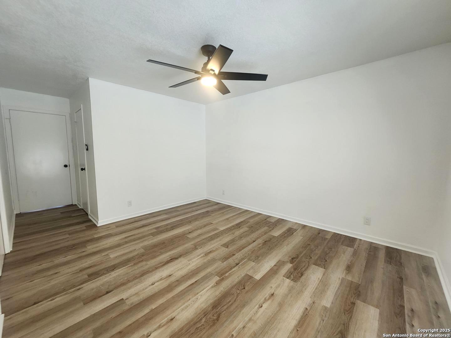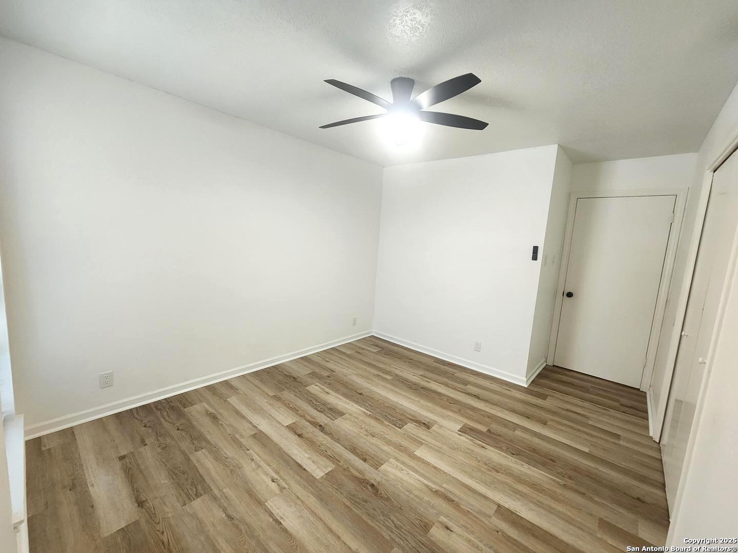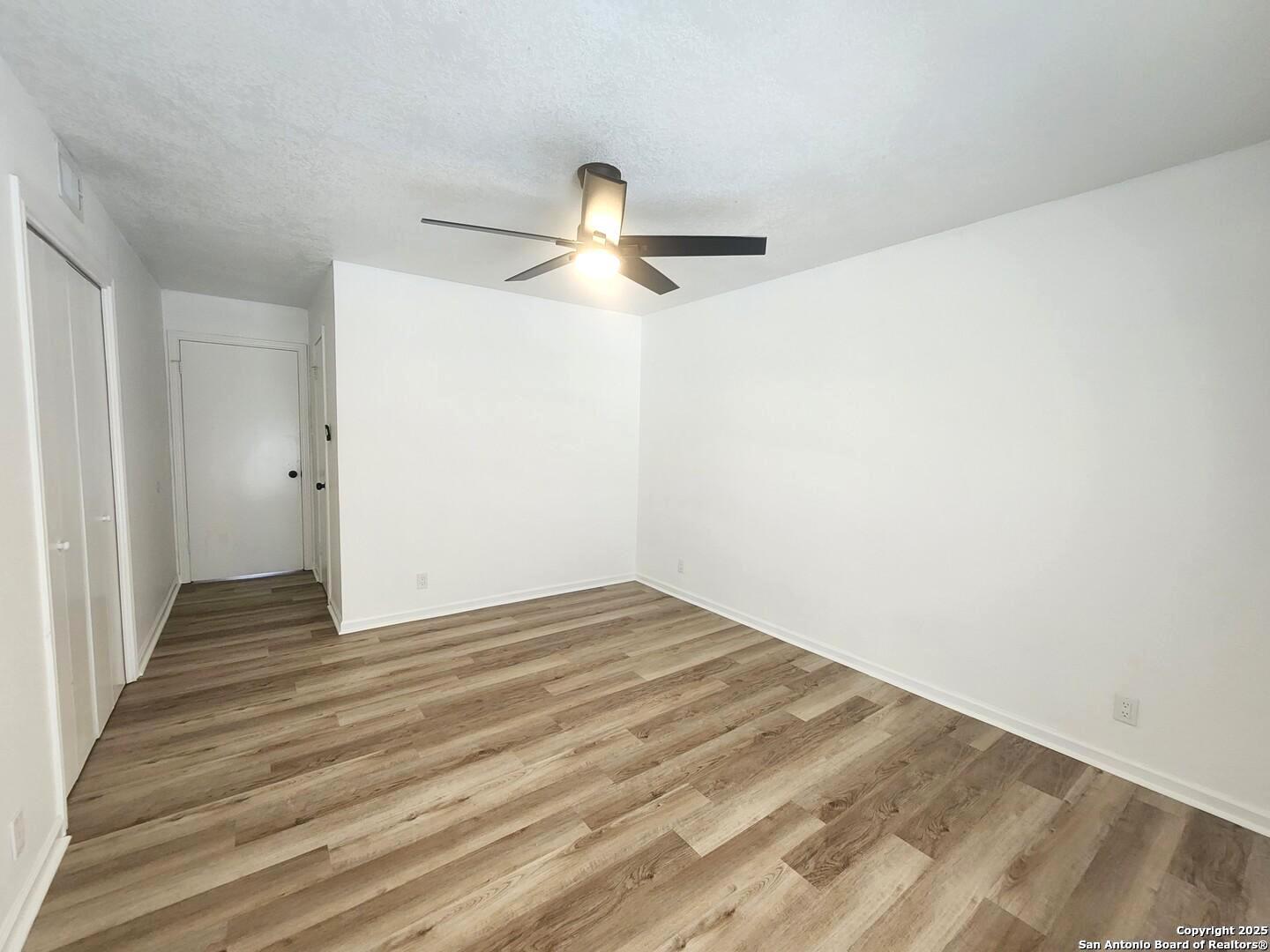 A Must-See Home in the Heart of the Medical Center! Beautifully updated property located near major hospitals, The University Health System, USAA, and UTSA. This home features an open floor plan with thoughtful upgrades throughout, including: Primary suite with spacious walk-in closet. Extra storage room on patio. New updates: Quartz counter top: Open Kitchen with breakfast bar, primary double sink bathroom, guest bathroom and living room bar~ Laminate flooring through out~ New walk-in tile shower with updated shower-head~ Stove and dishwasher~ Ceiling fans~ Light Fixtures~ Fresh Paint throughout~~ Enjoy a low-maintenance lifestyle with HOA benefits that include water, trash removal, and exterior cameras (Phase I), Two parking spaces (one covered). Outdoor highlights include a covered patio with additional storage room. Pet friendly This home offers comfort, convenience, and unbeatable location-ready for its next owner! Listed below BCAD value 165,500. Seller motivated. Fiber Optic Cable available.