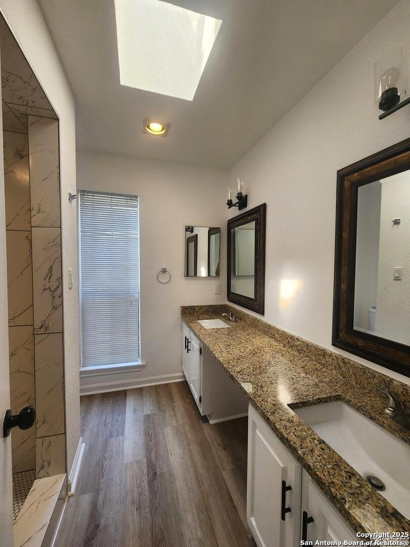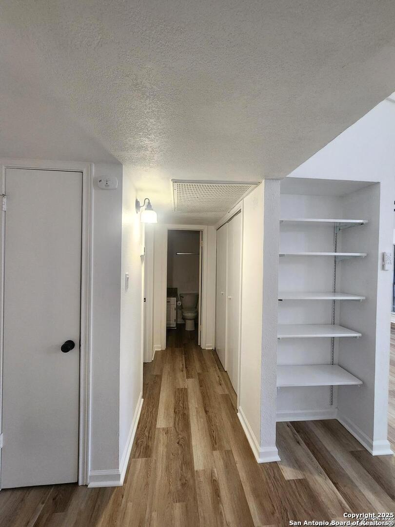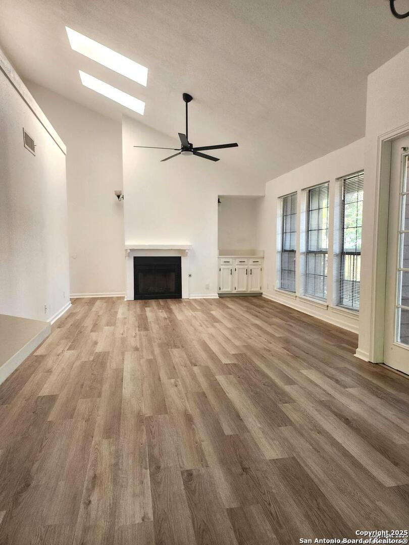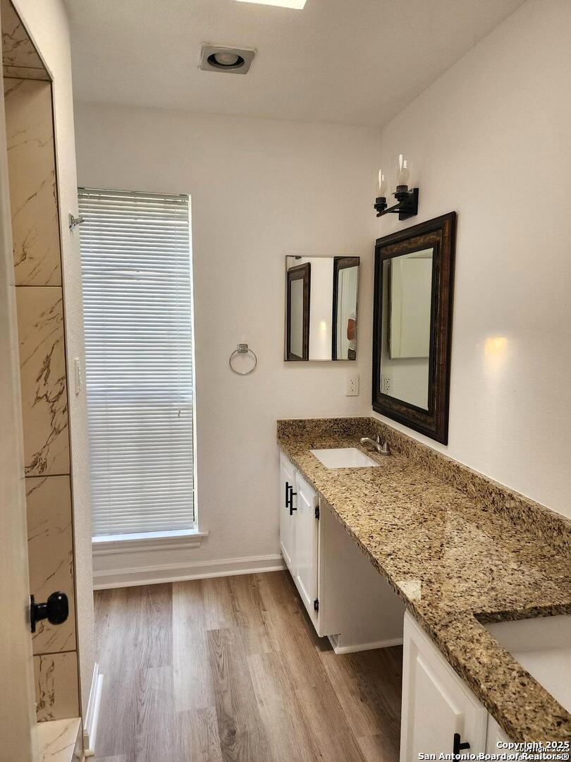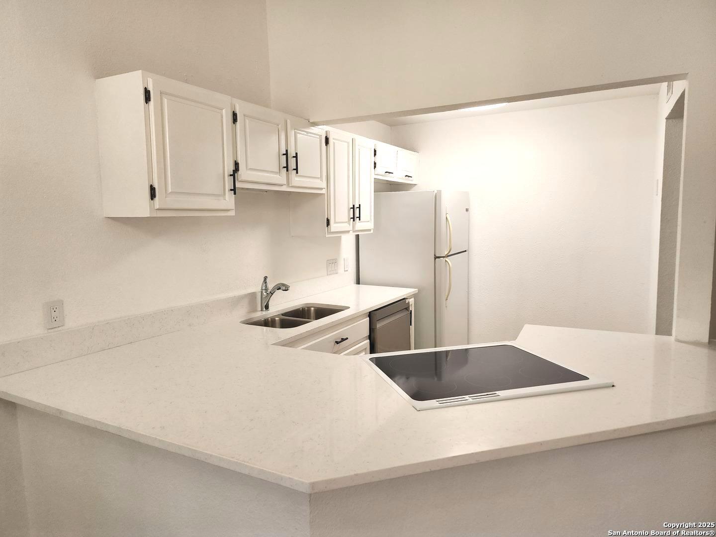 A Must-See Home in the Heart of the Medical Center! Beautifully updated property located near major hospitals, The University Health System, USAA, and UTSA. This home features an open floor plan with thoughtful upgrades throughout, including: Primary suite with spacious walk-in closet. Extra storage room on patio. New updates: Quartz counter top: Open Kitchen with breakfast bar, primary double sink bathroom, guest bathroom and living room bar~ Laminate flooring through out~ New walk-in tile shower with updated shower-head~ Stove and dishwasher~ Ceiling fans~ Light Fixtures~ Fresh Paint throughout~~ Enjoy a low-maintenance lifestyle with HOA benefits that include water, trash removal, and exterior cameras (Phase I), Two parking spaces (one covered). Outdoor highlights include a covered patio with additional storage room. Pet friendly This home offers comfort, convenience, and unbeatable location-ready for its next owner! Listed below BCAD value 165,500. Seller motivated. Fiber Optic Cable available.