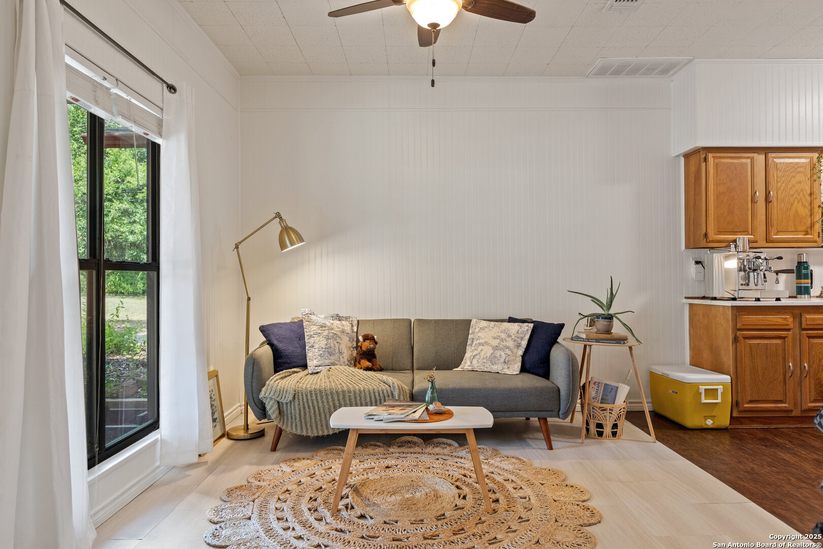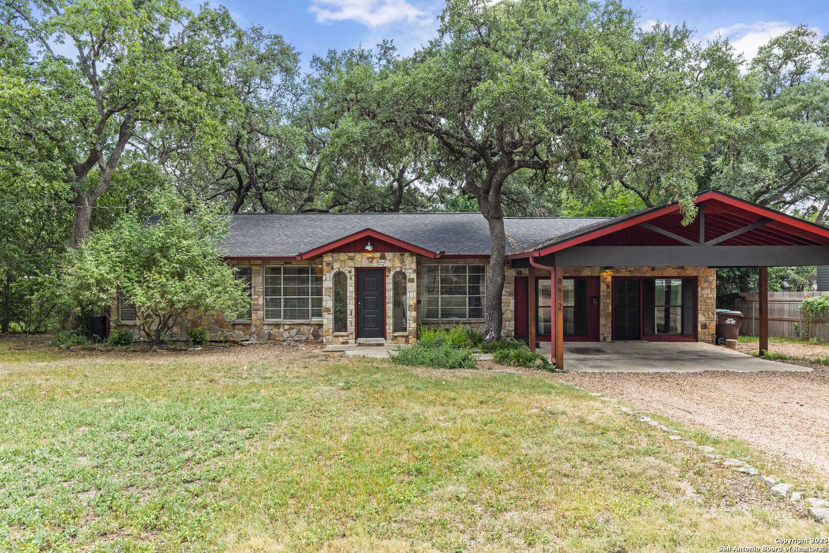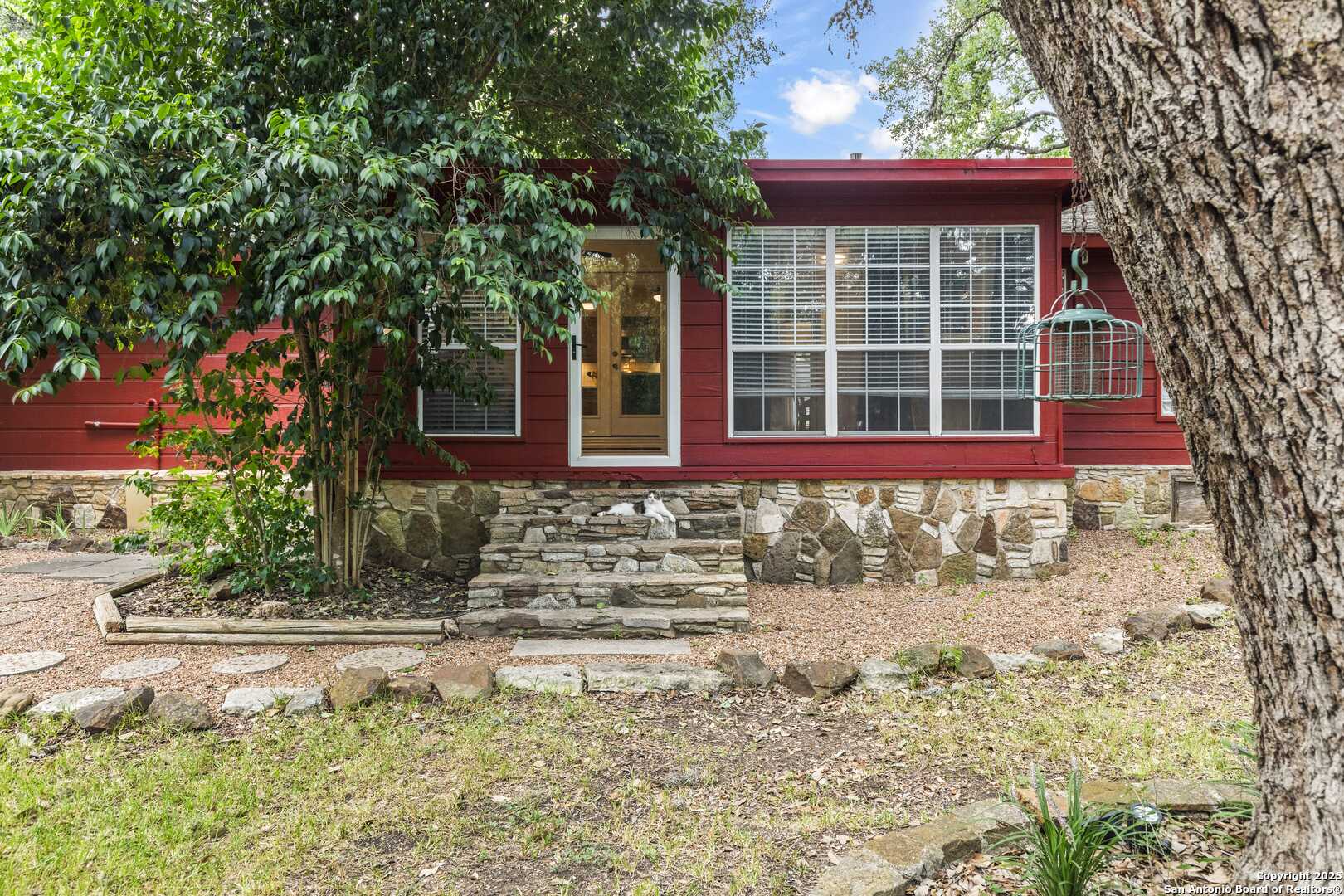 Charming and beautifully updated home with income-producing apartment on nearly half an acre, with no HOA! Rare opportunity!! This one-of-a-kind property is conveniently located just minutes to Boerne and San Antonio and offers 3 bedrooms, 2 baths, and two separate offices. The main house is warm and inviting with original charm and intentional updates, featuring a timeless terrazzo flooring in the entry, beautiful wood accent wall in the living area, a large island kitchen, and plenty of natural light. The thoughtfully designed layout is perfect for multi-generational living, guests, or rental income. The recently renovated first floor apartment includes 1 bedroom, 1 bath, and a full kitchen with its own private living and dining spaces. All set beneath the shade of mature oak trees with ample room to relax, garden, or entertain.