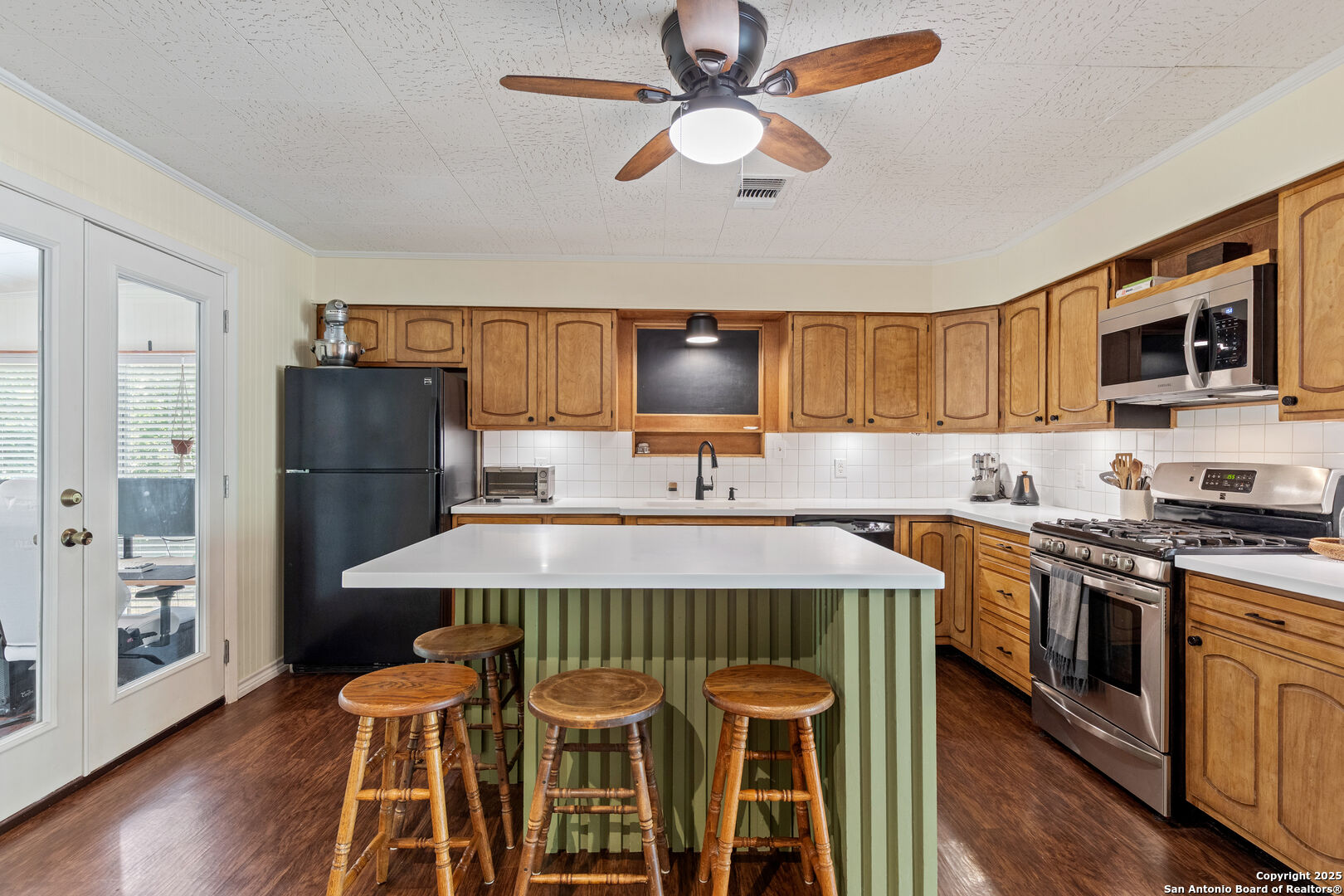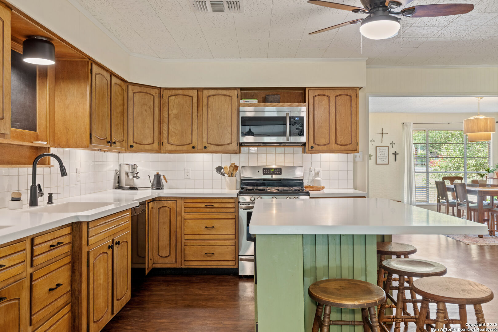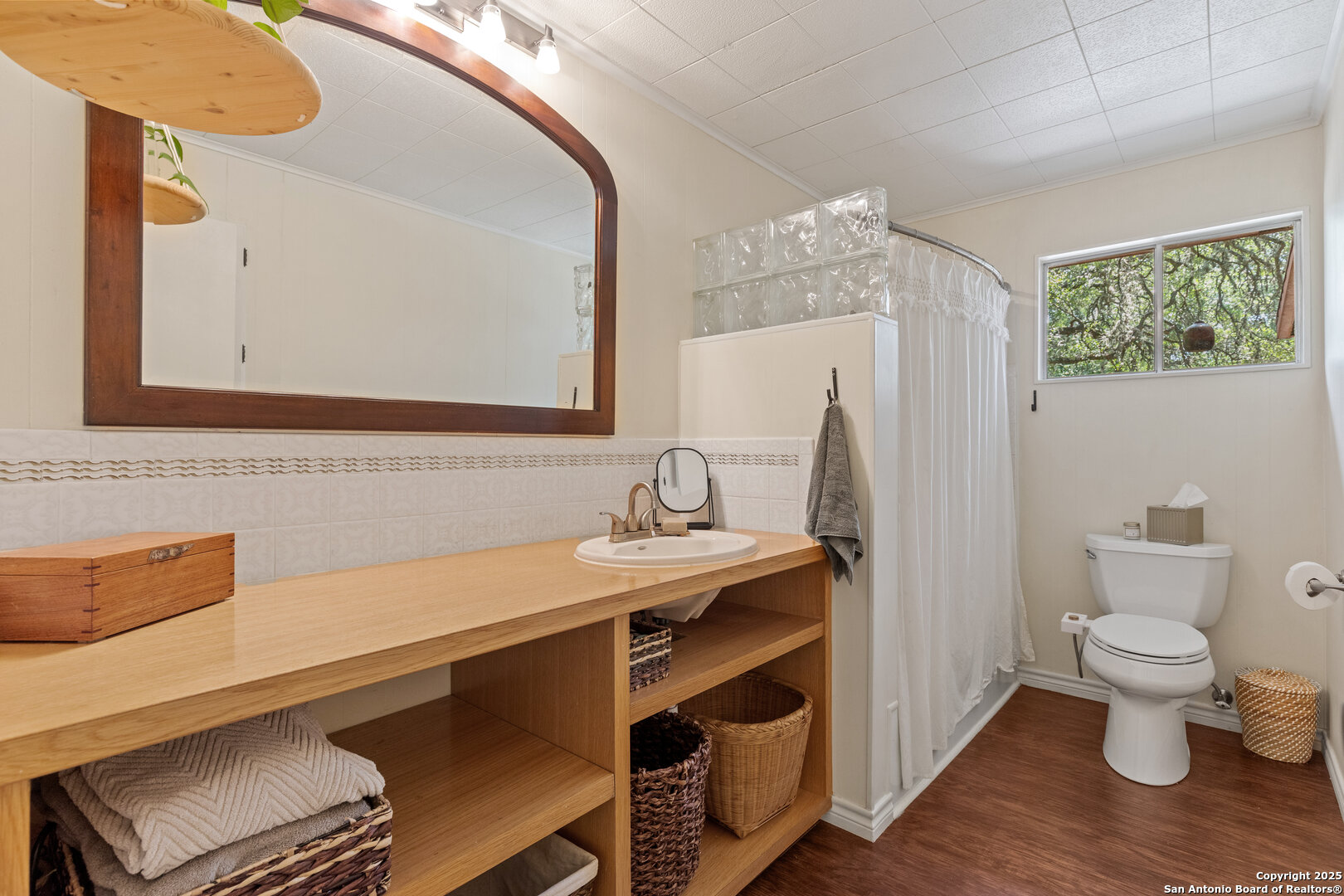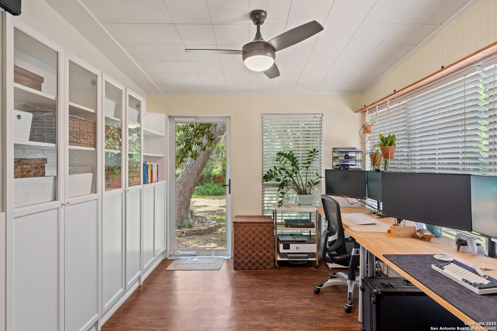 Charming and beautifully updated home with income-producing apartment on nearly half an acre, with no HOA! Rare opportunity!! This one-of-a-kind property is conveniently located just minutes to Boerne and San Antonio and offers 3 bedrooms, 2 baths, and two separate offices. The main house is warm and inviting with original charm and intentional updates, featuring a timeless terrazzo flooring in the entry, beautiful wood accent wall in the living area, a large island kitchen, and plenty of natural light. The thoughtfully designed layout is perfect for multi-generational living, guests, or rental income. The recently renovated first floor apartment includes 1 bedroom, 1 bath, and a full kitchen with its own private living and dining spaces. All set beneath the shade of mature oak trees with ample room to relax, garden, or entertain.