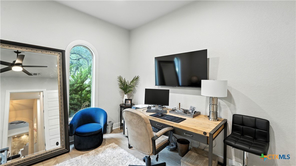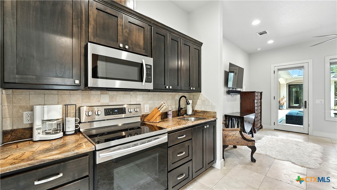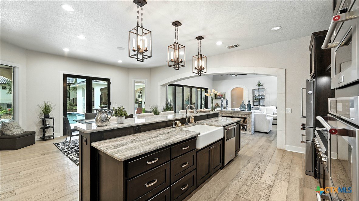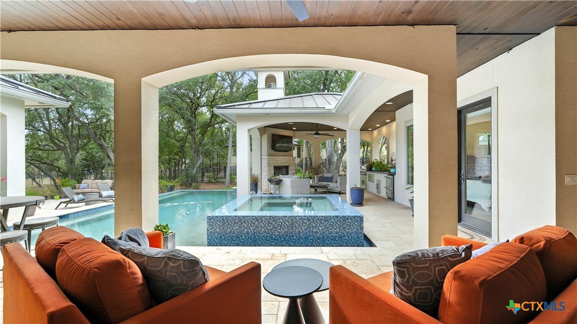 Modern living reimagined for effortless indoor–outdoor connection. Wide glass walls glide open to meet continuous wood flooring, leading gracefully to a stone-paved terrace with a peaceful pool and spa, chef-worthy outdoor kitchen, and a welcoming fireplace. With a total of three bedrooms and three bathrooms, guests will find resort-style comfort and luxury. The detached casita offers flexibility as a guest suite, home office, or creative space. Inside, the chef’s kitchen boasts high-end appliances, custom cabinetry, and an oversized walk-in pantry concealed by the hinged cabinetry. A spacious laundry room enhances daily convenience, while dual garages (single and two-car) provide ample storage. This home seamlessly blends luxury, practicality, and modern design, offering a lifestyle that celebrates both comfort and style. 2 Bedrooms in the main house. One bedroom in the casita. Main House - 2847 sq. feet. Casita - 416 sq. feet. Breezeway - 735 sq. feet. Covered Porches - 453 sq. feet. Garages - 1200 sq feet. --